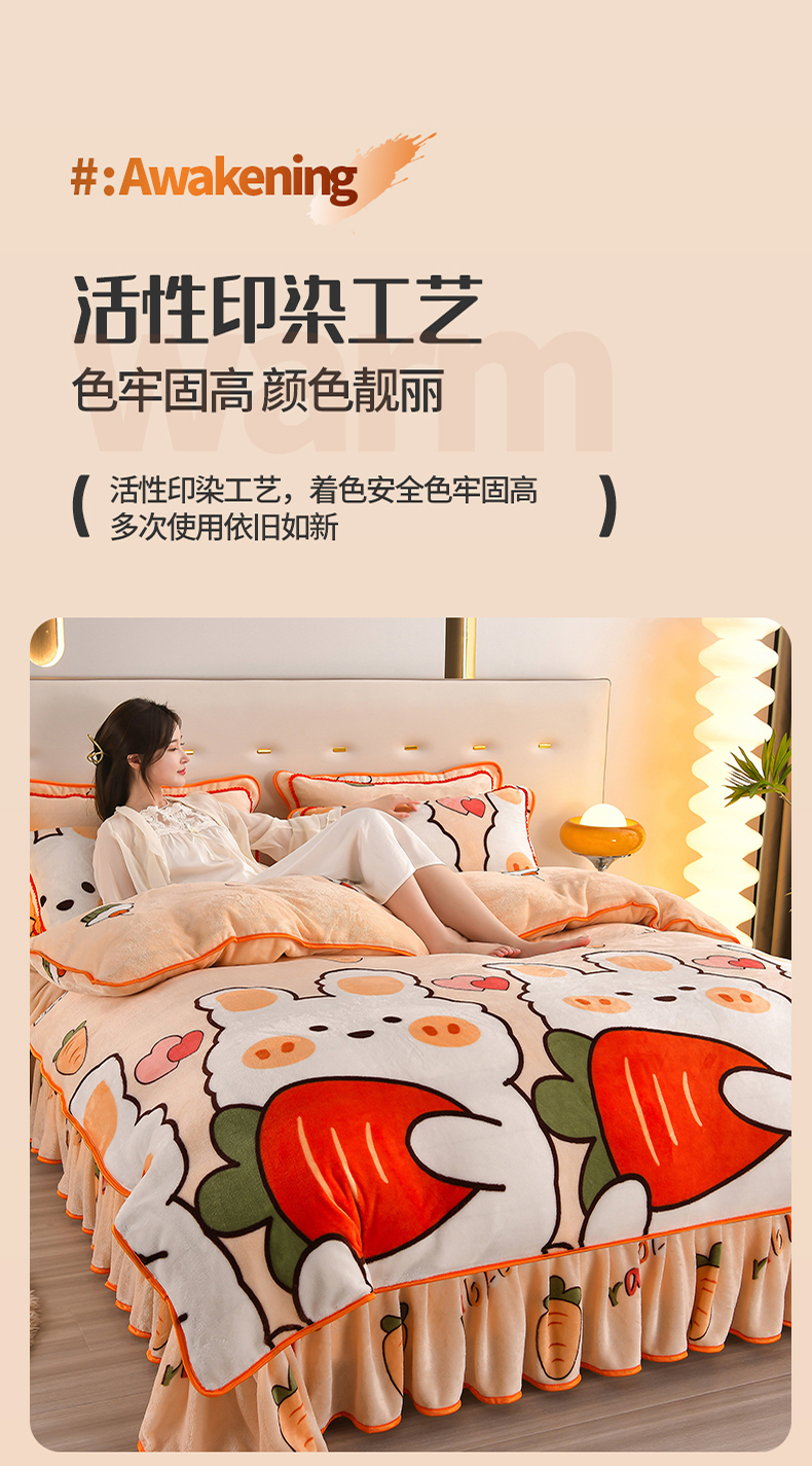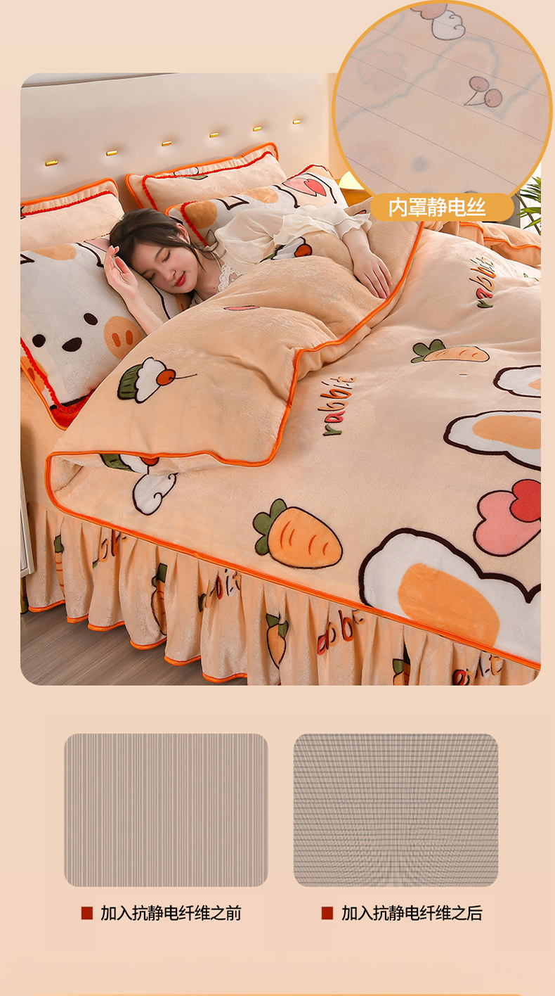 商品名称:绒品壹家家纺 2024新款5斤加厚金貂绒四件套 钱兔似锦