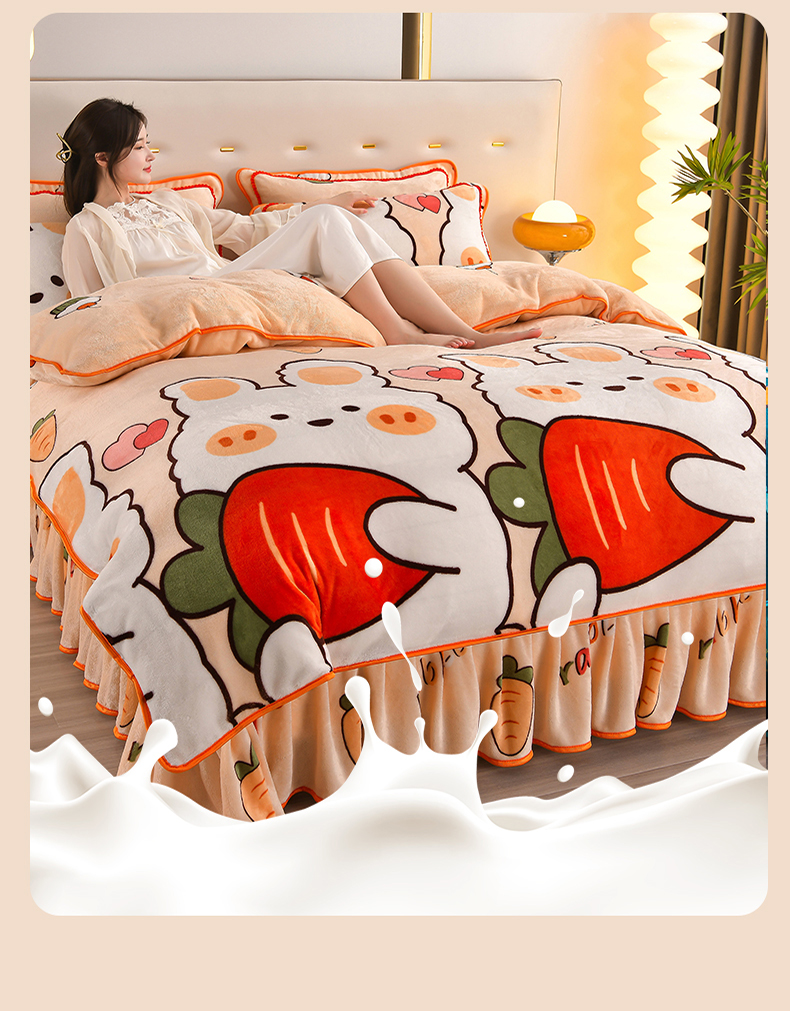 绒品壹家 2025新款电商直播爆款高克重7斤牛奶绒金貂绒印花床裙款三件套四件套 花颜,花颜