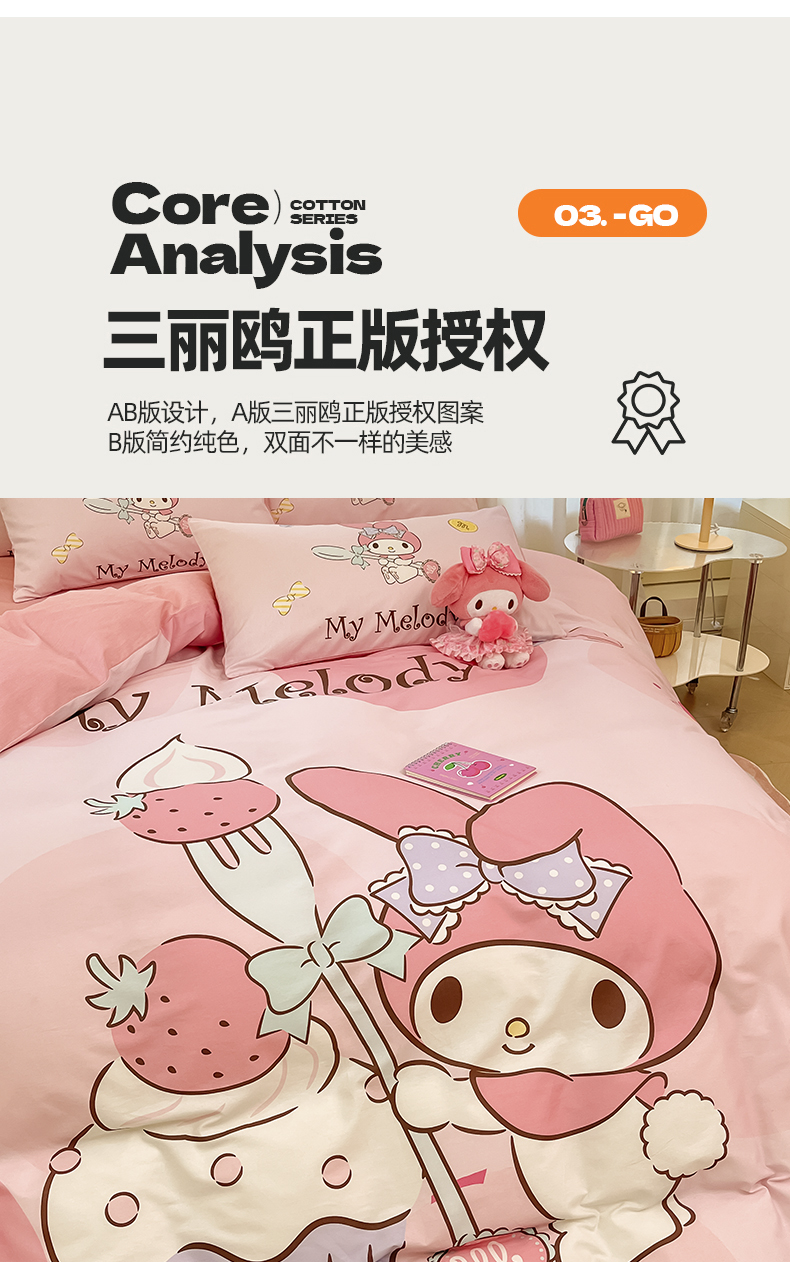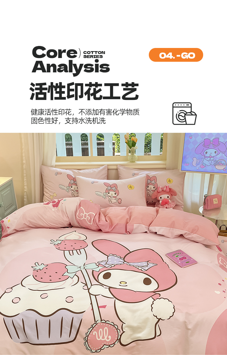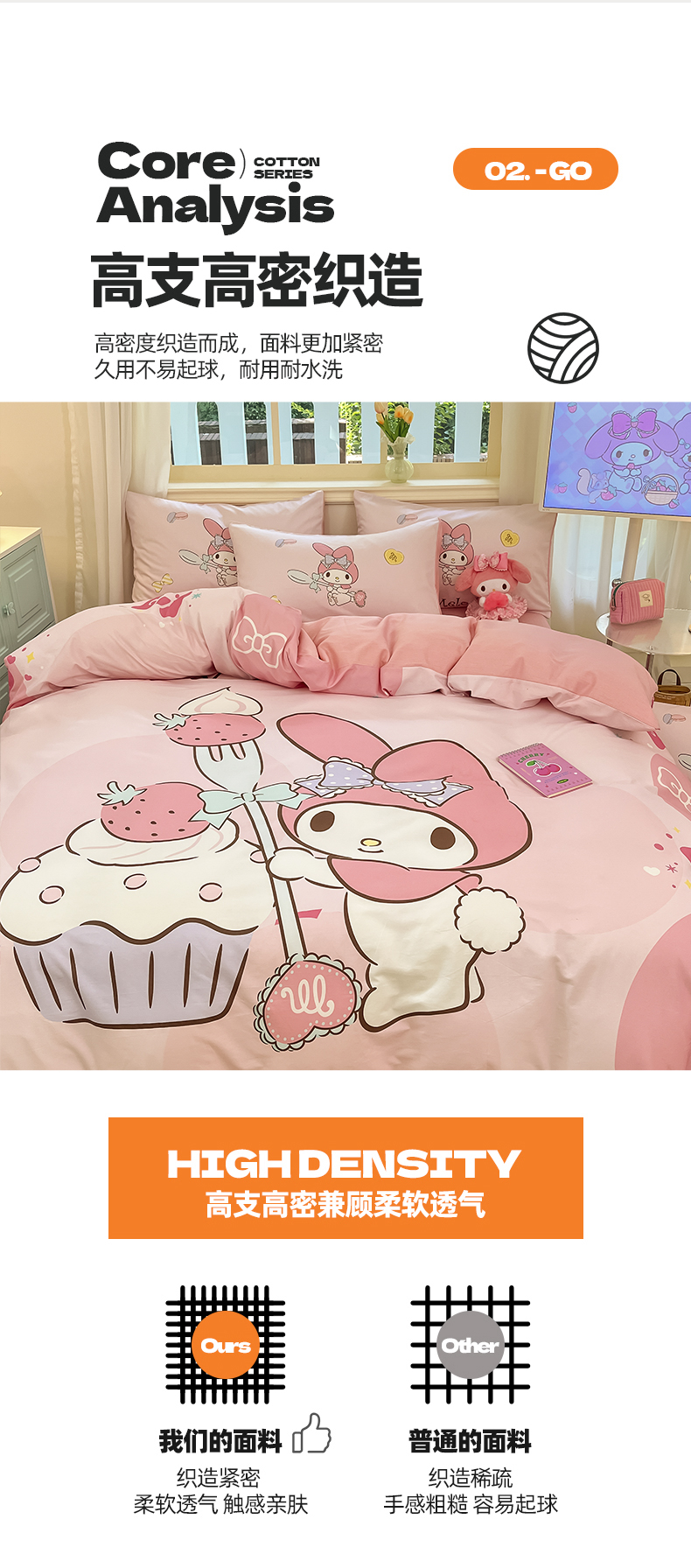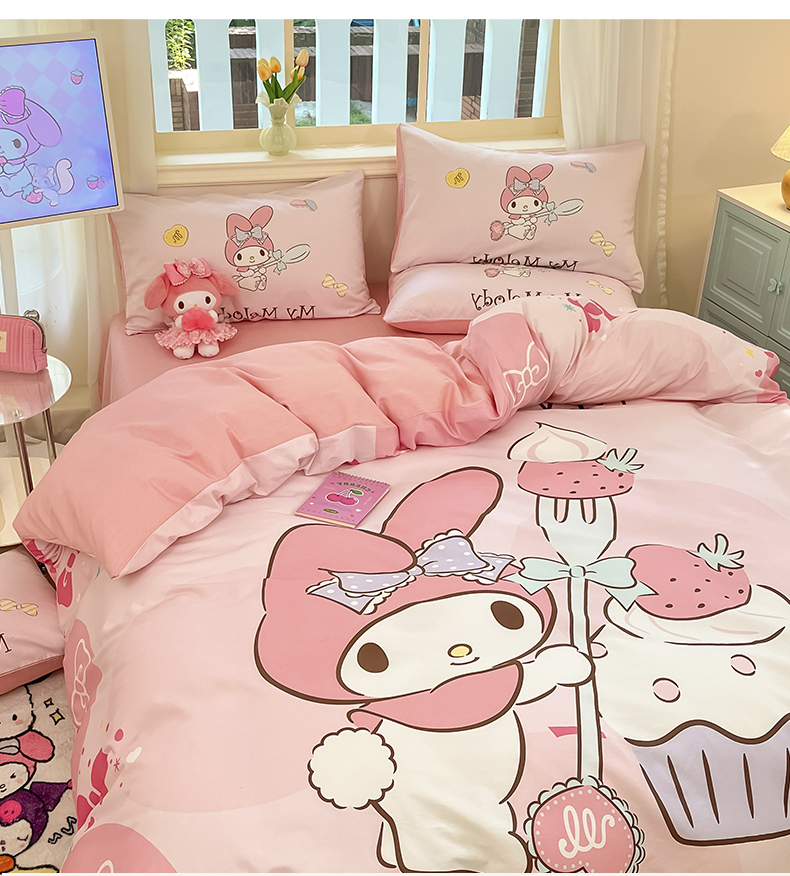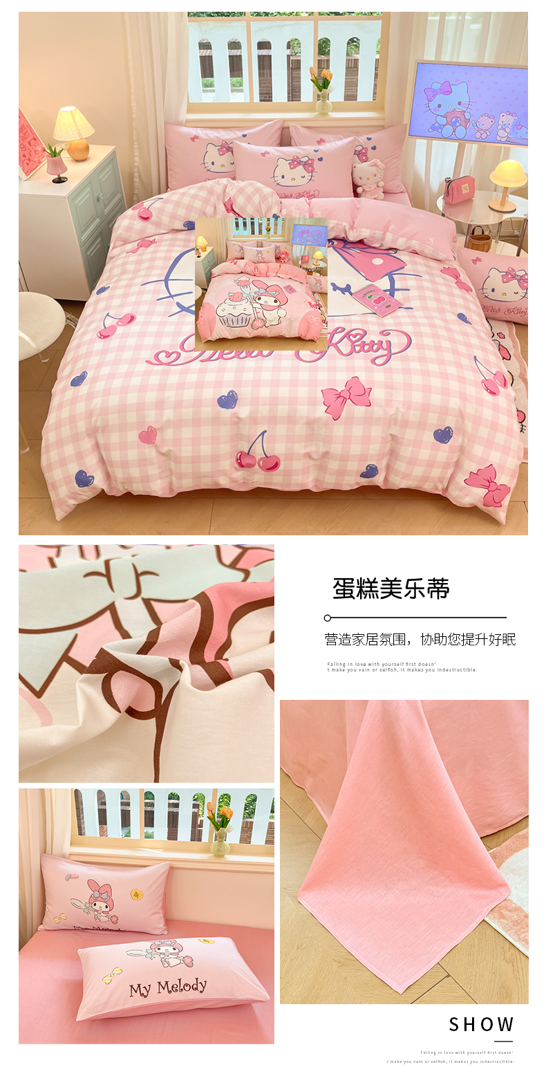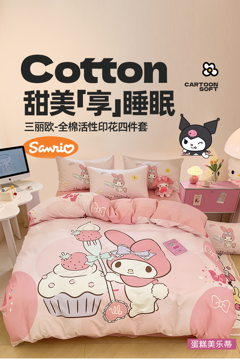 当前位置: 91家纺网 > 商品网购 > 床品套件 > 四件套 > 全棉普通四件套 > 桃子家居 2024纯棉大版三丽鸥卡通平网印花系列四件套 棉大版-D蛋糕美乐蒂