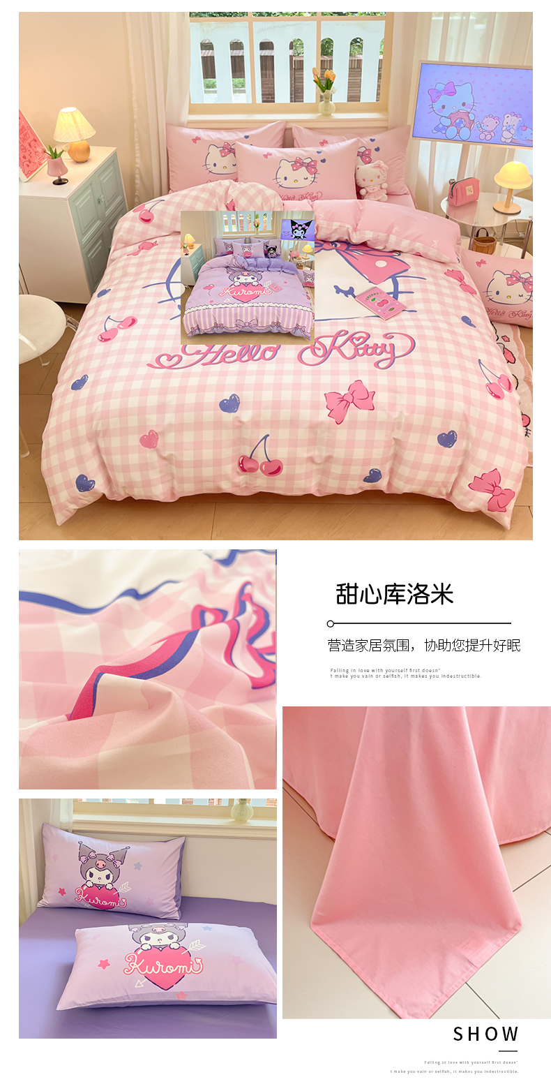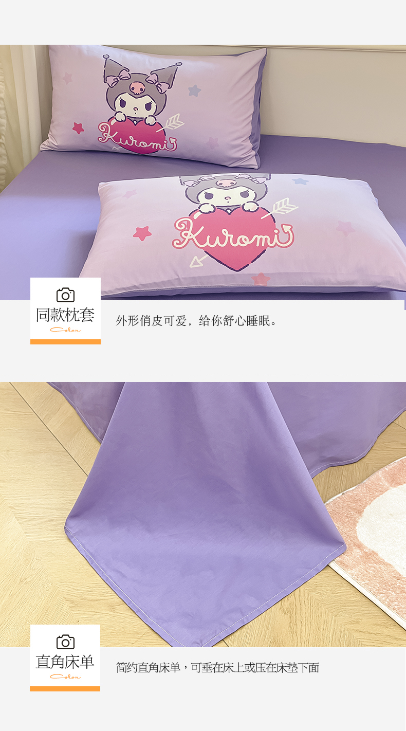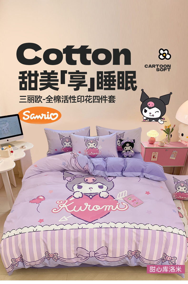 当前位置: 91家纺网 > 商品网购 > 床品套件 > 四件套 > 全棉普通四件套 > 桃子家居 2024纯棉大版三丽鸥卡通平网印花系列四件套 棉大版-D甜心库洛米