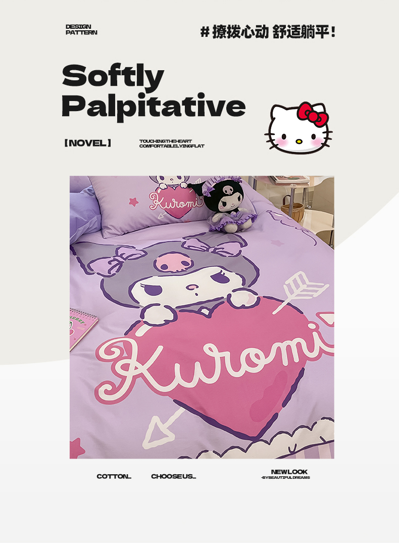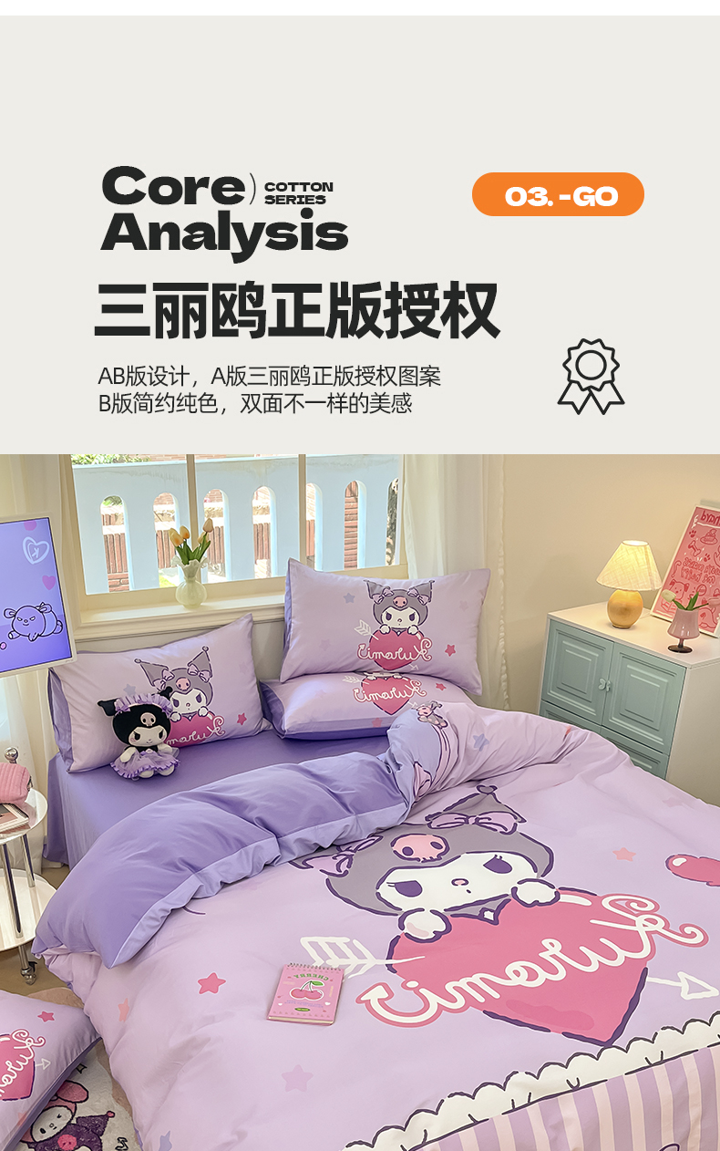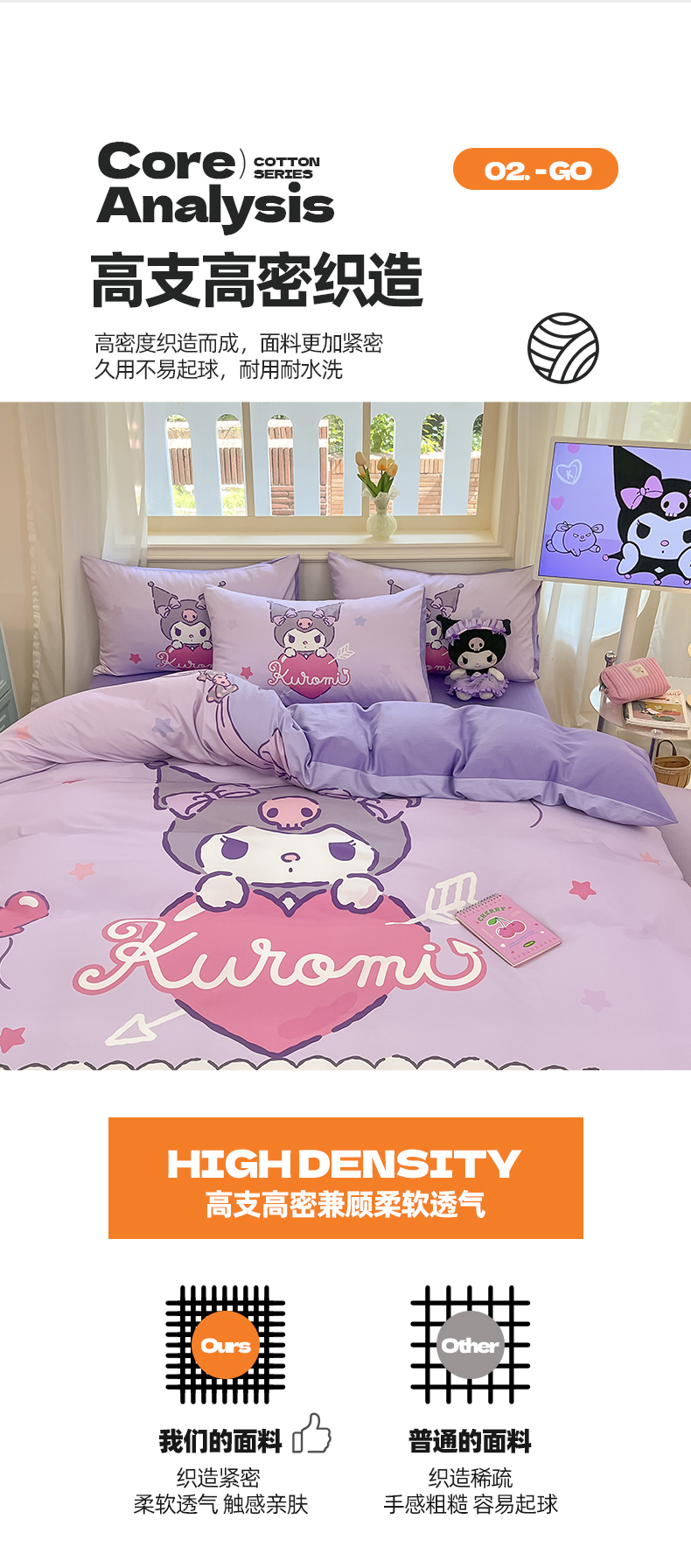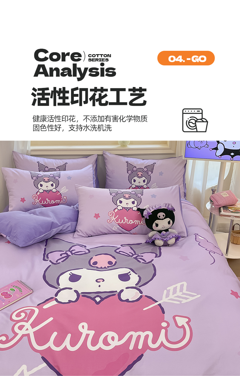 当前位置: 91家纺网 > 商品网购 > 床品套件 > 四件套 > 全棉普通四件套 > 桃子家居 2024纯棉大版三丽鸥卡通平网印花系列四件套 棉大版-D甜心库洛米