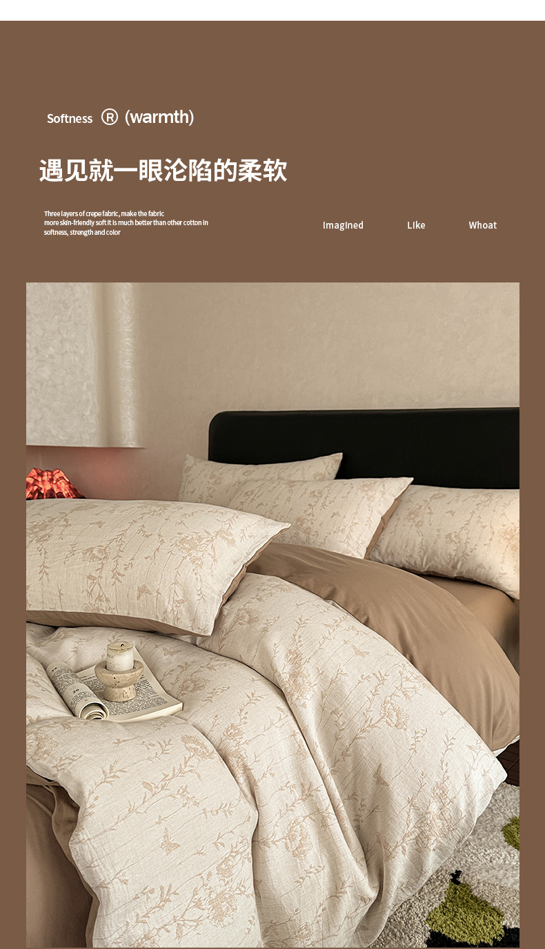 当前位置: 91家纺网 > 商品网购 > 床品套件 > 四件套 > 全棉普通四件套 > 2024新款A类全棉三层纱提花四件套--茵荔 茵荔-米咖