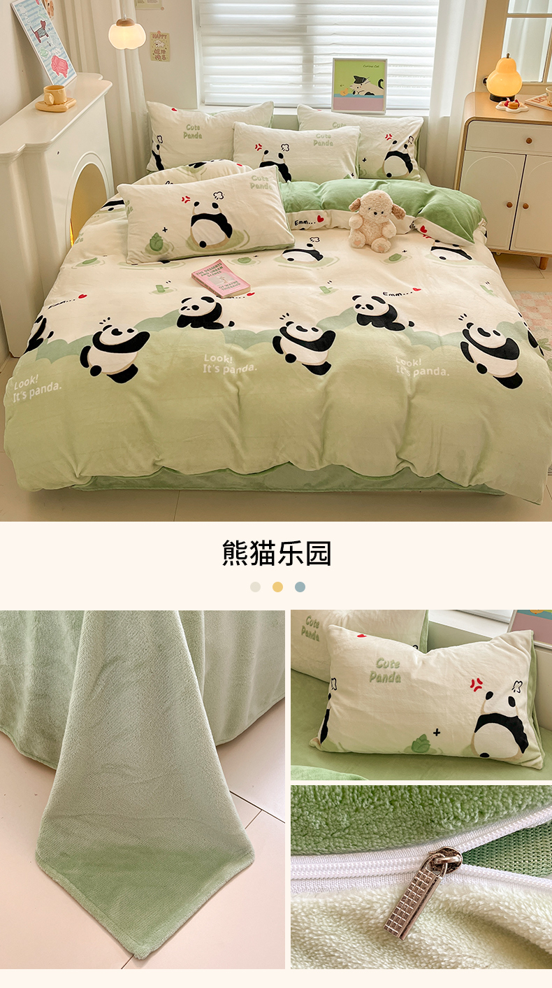 当前位置: 91家纺网 > 商品网购 > 床品套件 > 四件套 > 牛奶绒四件套 > 孩子王家纺 2025新款小清新冬季加厚牛奶绒水晶绒珊瑚绒印花系列四件套 熊猫乐园