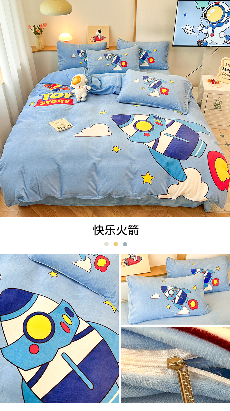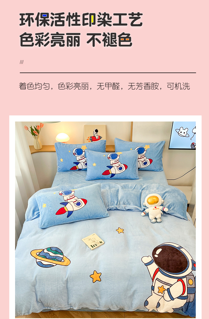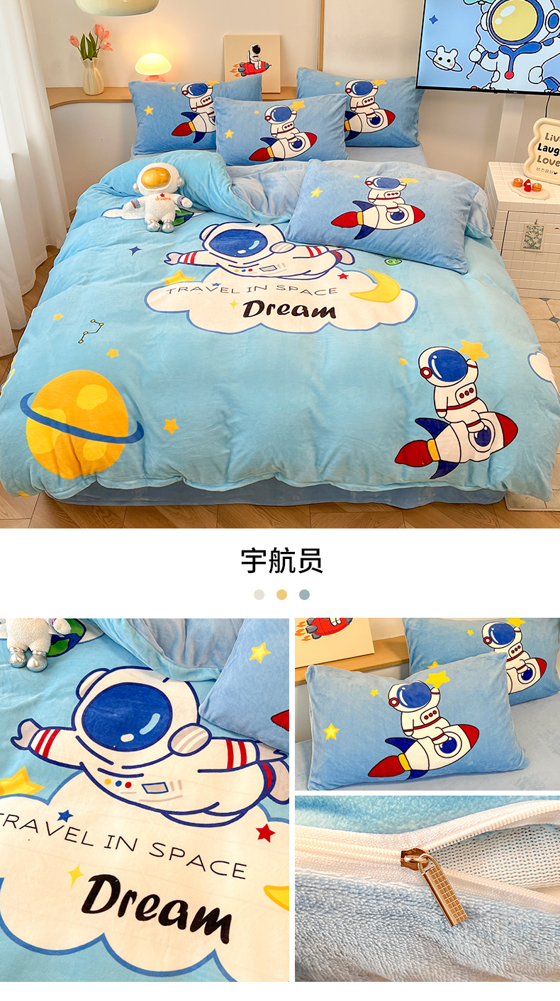 商品名称:(总)孩子王家纺 2025新款专版花色太空人大版卡通学生宿舍双面加厚牛奶绒系列四件套--提供买家秀