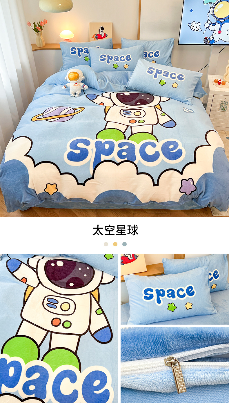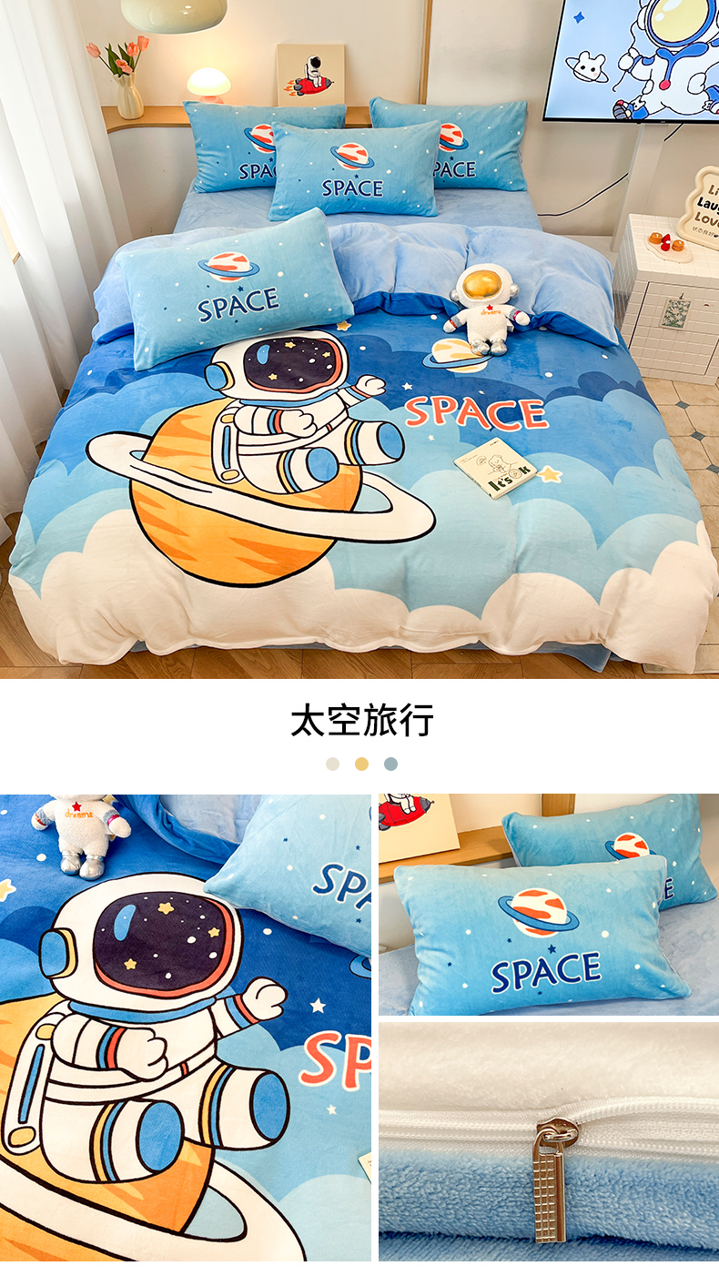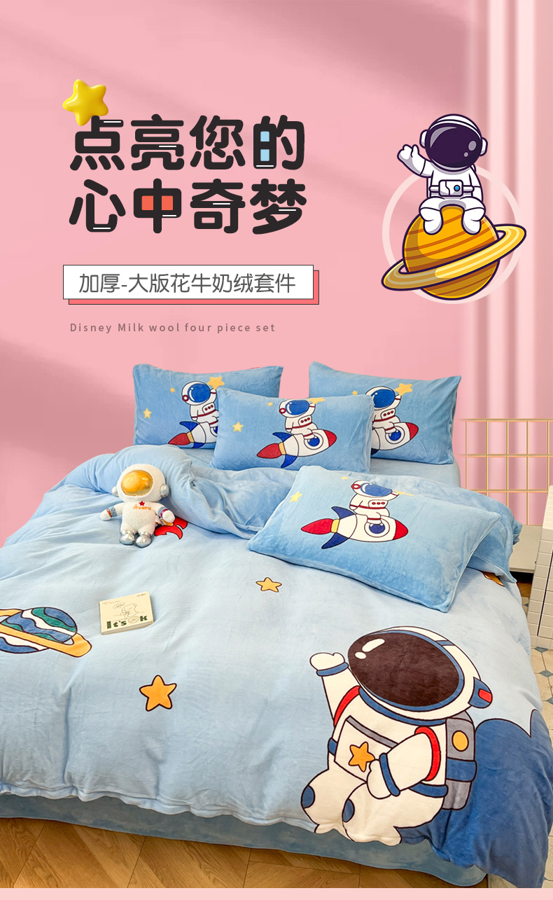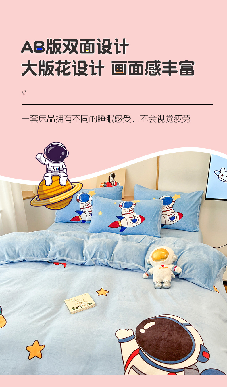 (总)孩子王家纺 2025新款专版花色太空人大版卡通学生宿舍双面加厚牛奶绒系列四件套--提供买家秀