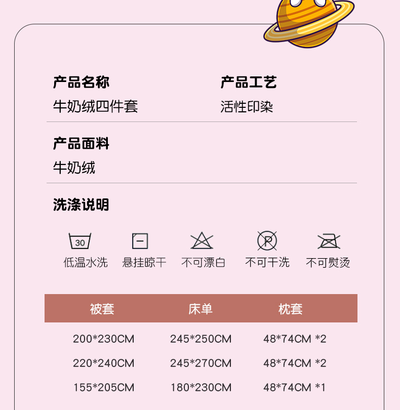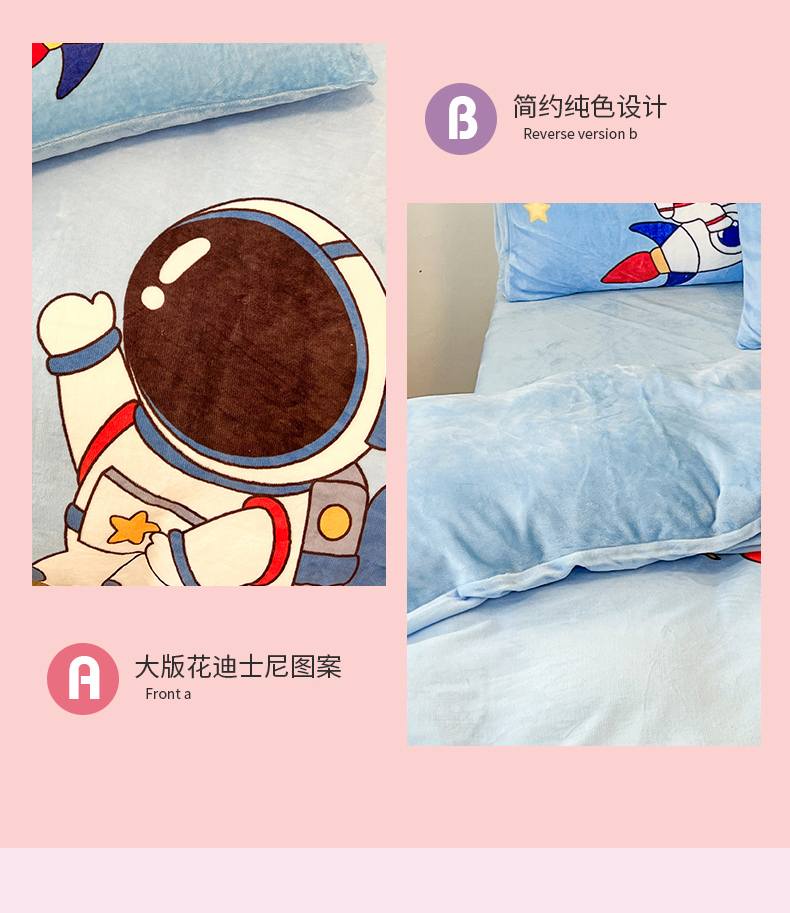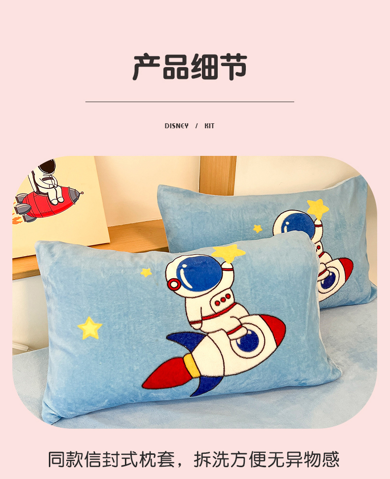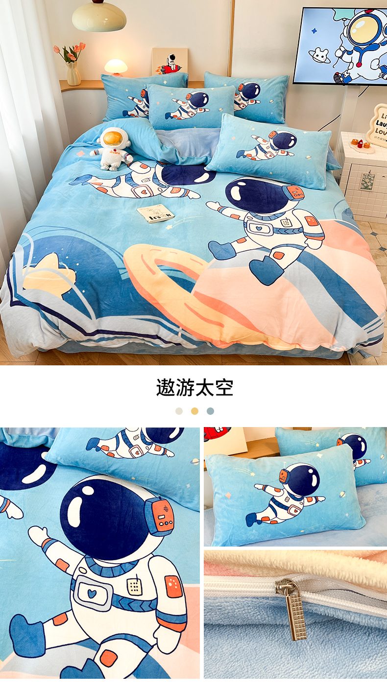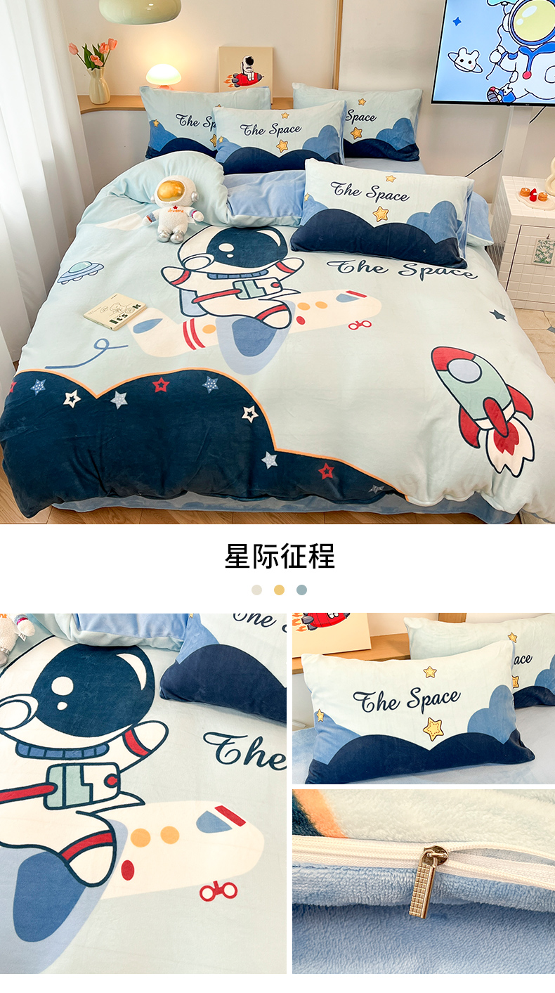 (总)孩子王家纺 2025新款专版花色太空人大版卡通学生宿舍双面加厚牛奶绒系列四件套--提供买家秀