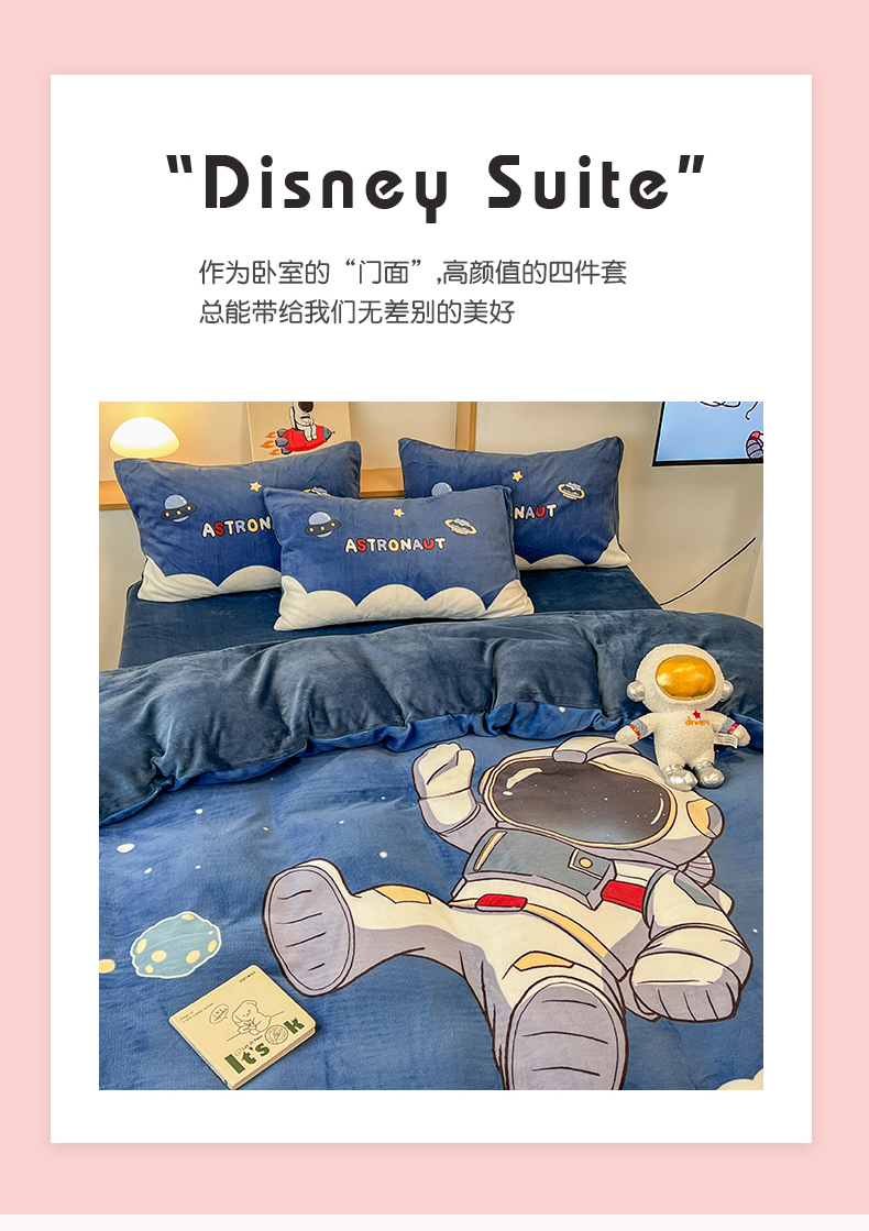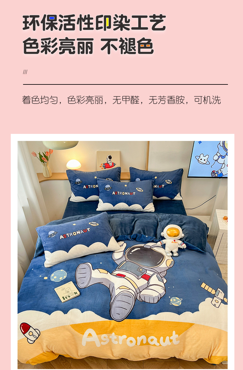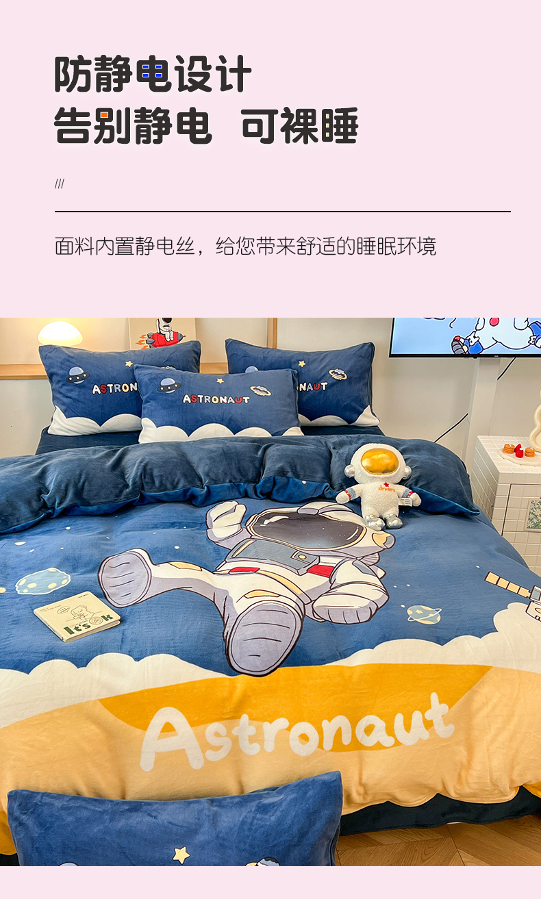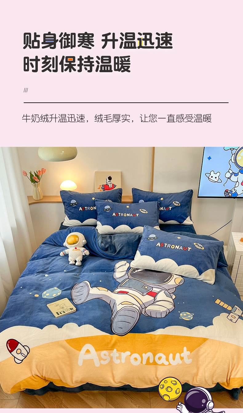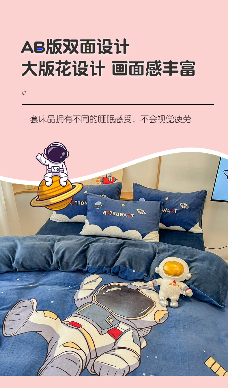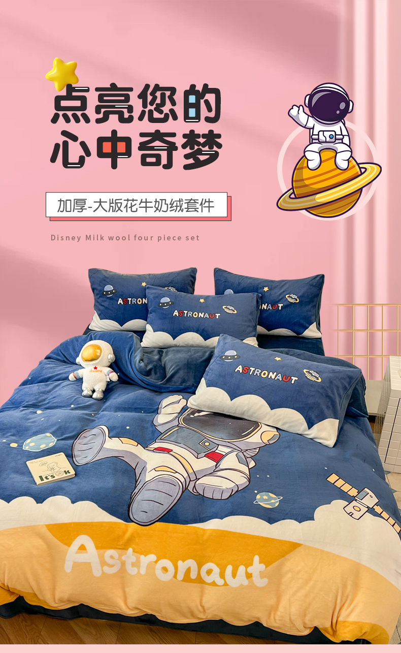当前位置: 91家纺网 > 商品网购 > 床品套件 > 四件套 > 牛奶绒四件套 > 孩子王家纺 2025新款专版花色太空人大版卡通学生宿舍双面加厚牛奶绒系列四件套--提供买家秀 银河漫步