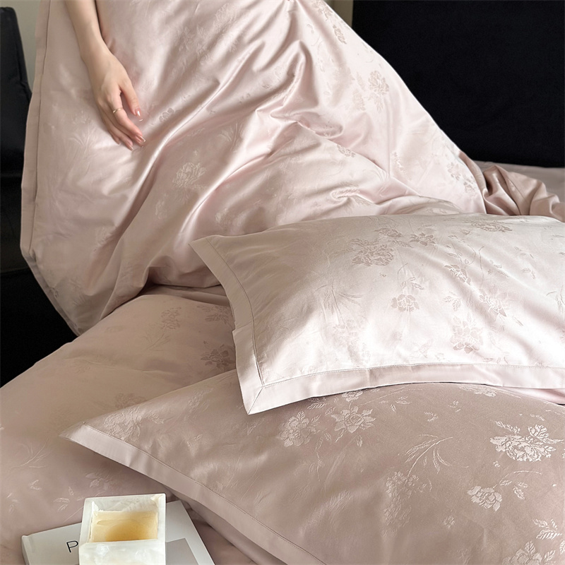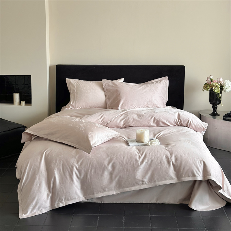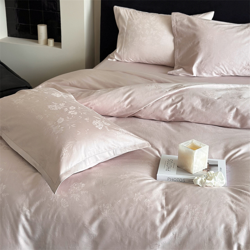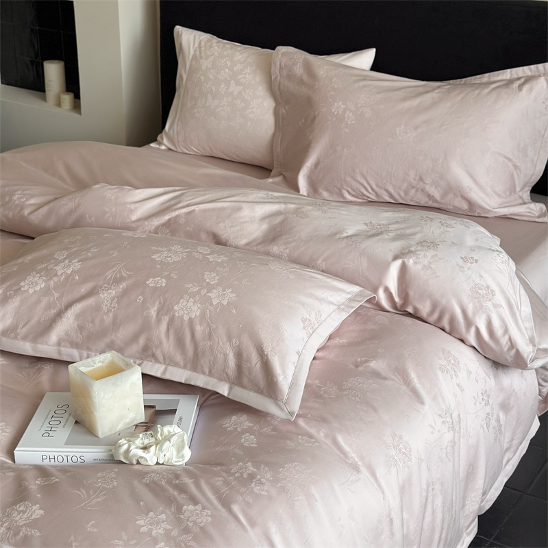 (总)鹿班2024新款100支长绒棉四件套提花系列-甜心 标准会员-20,甜心-粉