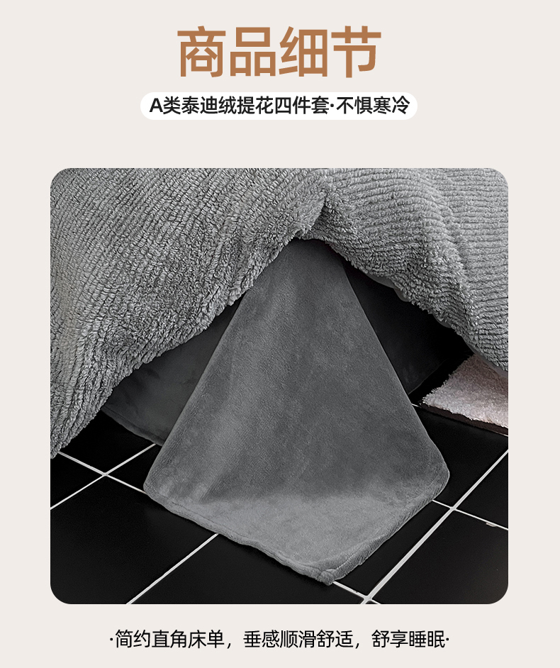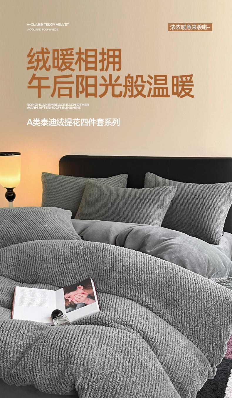 商品名称:星座家纺 2025新款泰迪绒提花牛奶绒四件套 雅士灰