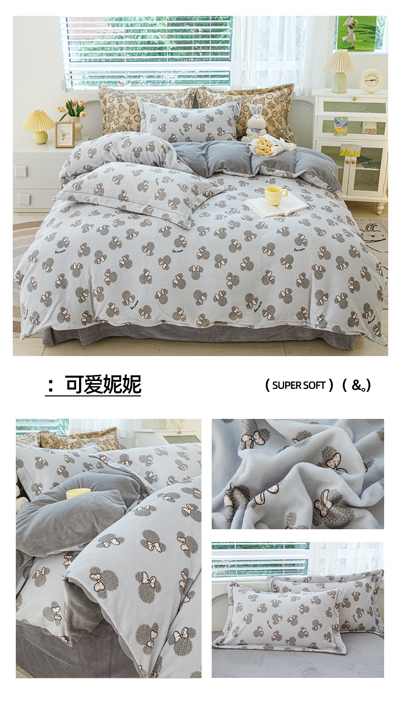商品名称:锦罗绣 2024新款加厚牛奶绒四件套印花四件套单被套 可爱妮妮