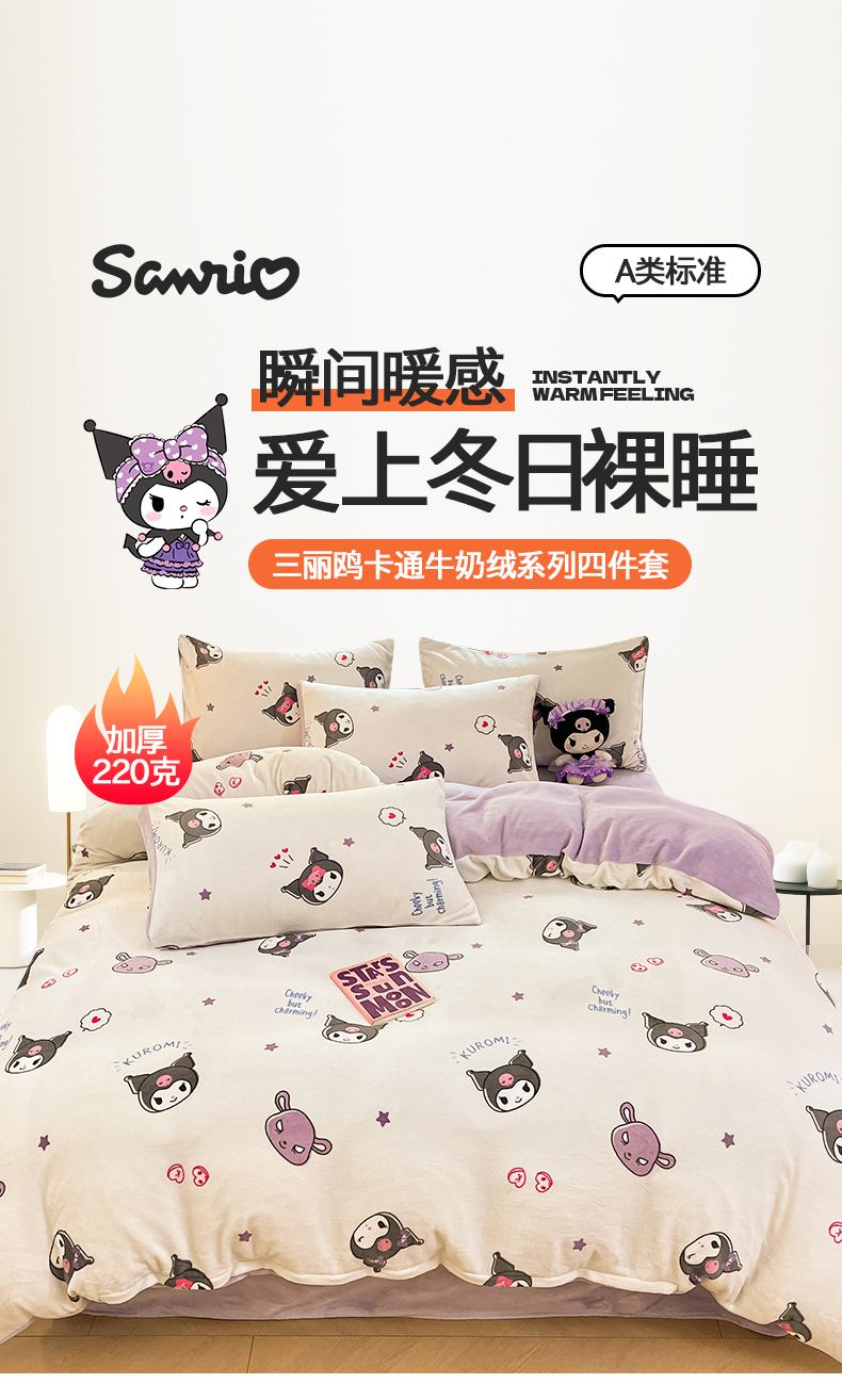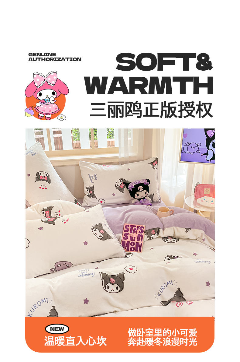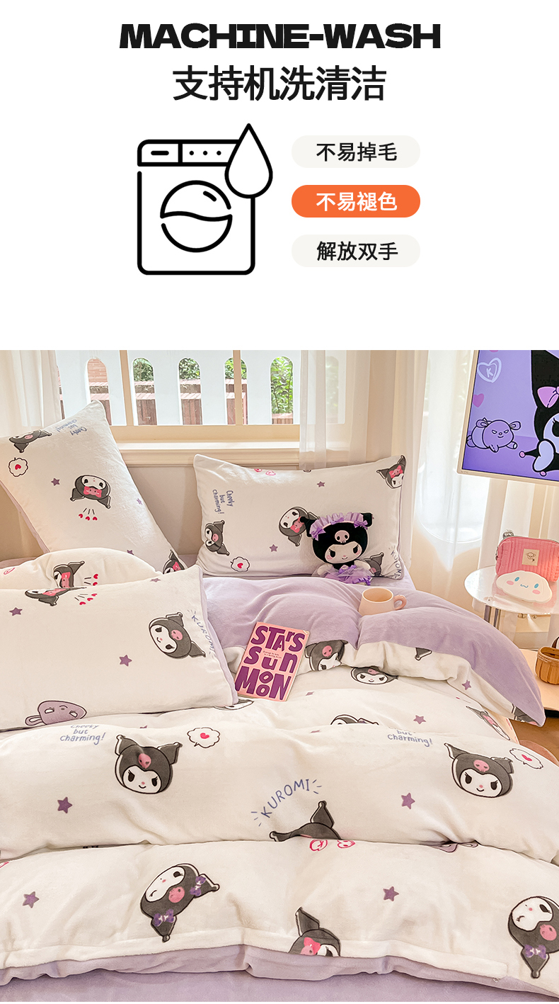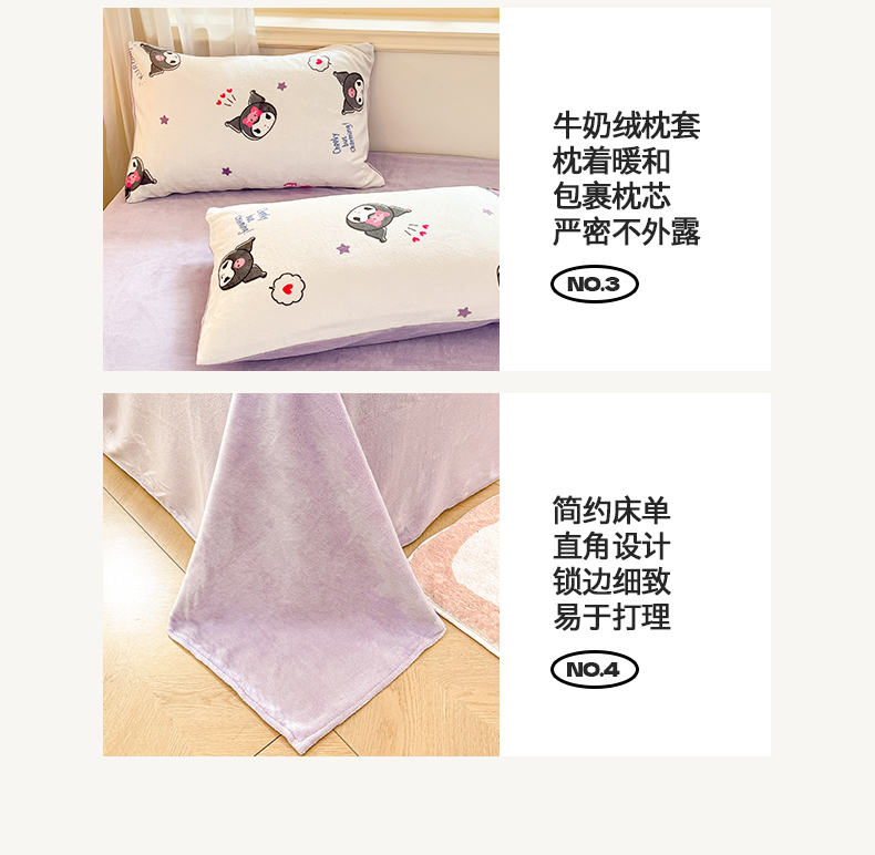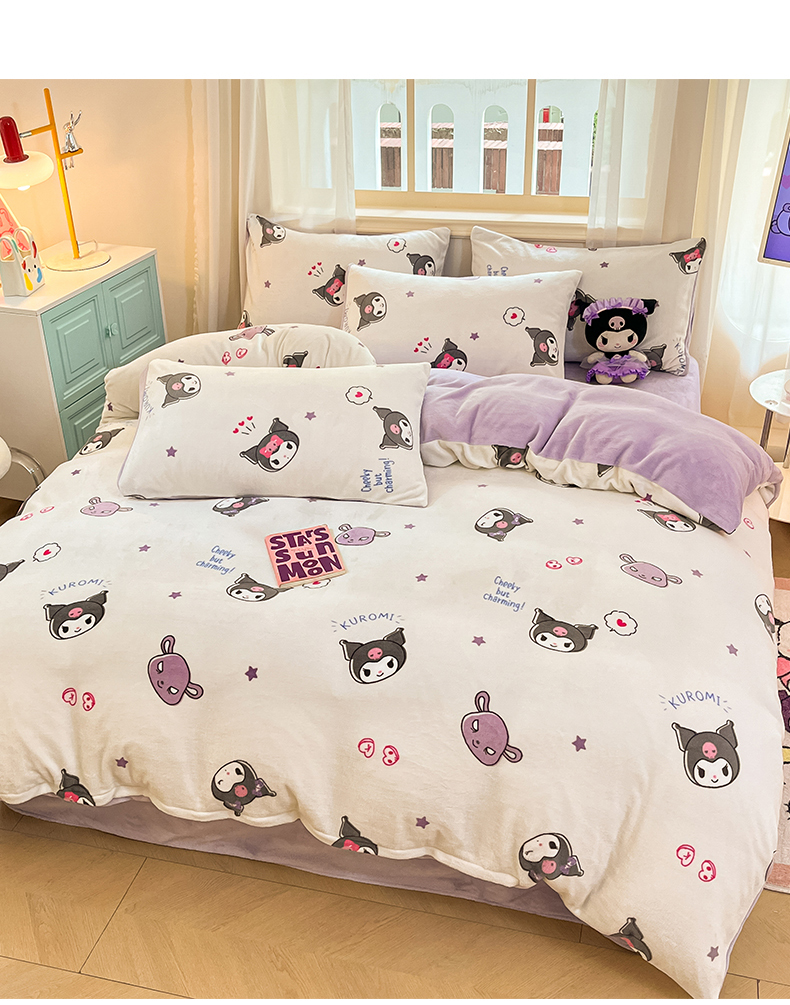 当前位置: 91家纺网 > 商品网购 > 床品套件 > 四件套 > 牛奶绒四件套 > 2024新品正版三丽鸥授权卡通加厚高克重牛奶绒系列四件套 绒三丽鸥-可爱小小库洛米