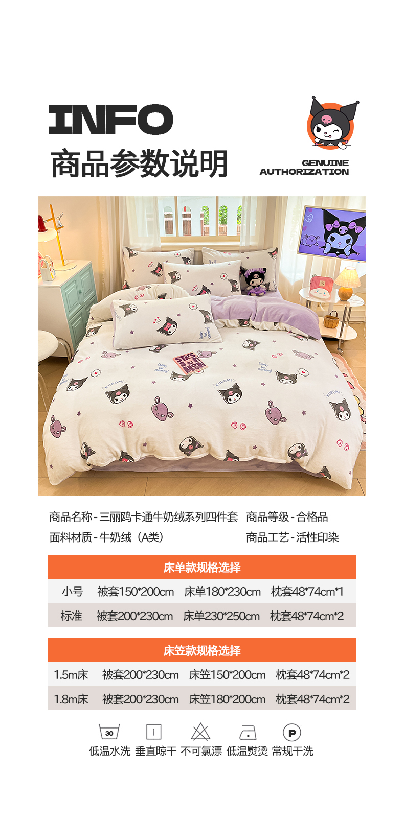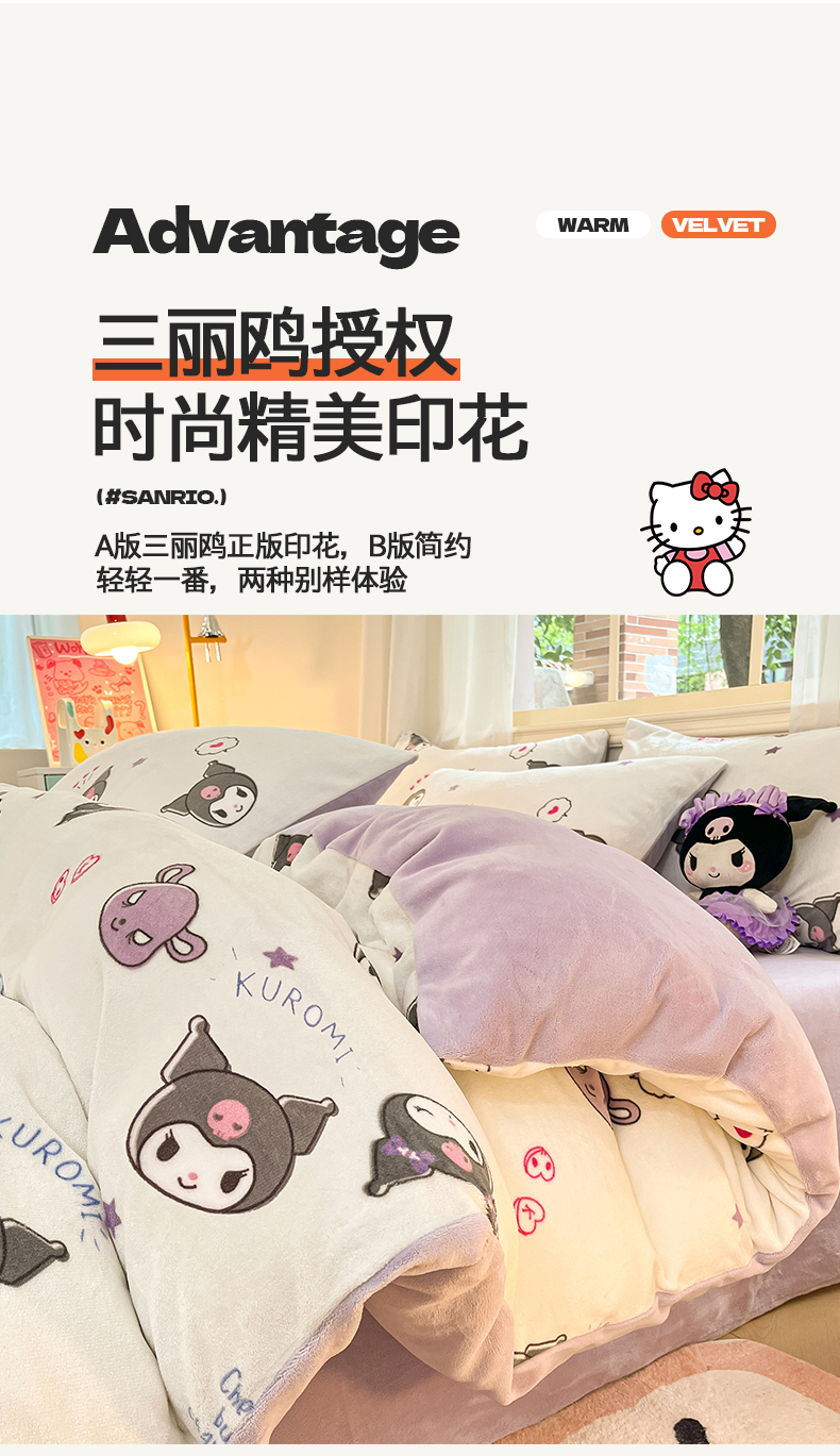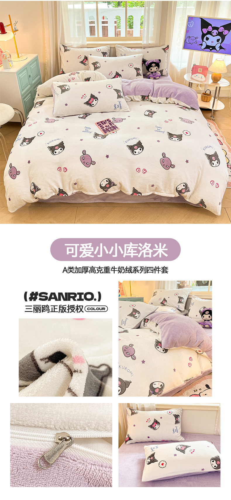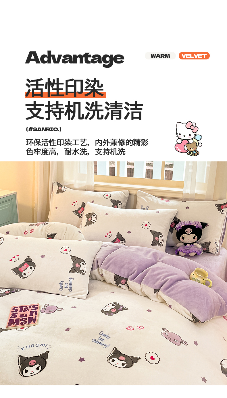 当前位置: 91家纺网 > 商品网购 > 床品套件 > 四件套 > 牛奶绒四件套 > 2024新品正版三丽鸥授权卡通加厚高克重牛奶绒系列四件套 绒三丽鸥-可爱小小库洛米