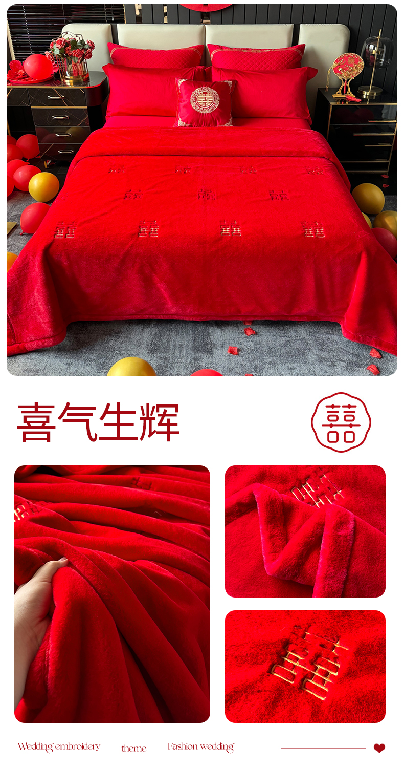 商品名称:2024新款仿皮草兔绒精品绣花毛毯毯子 喜气生辉