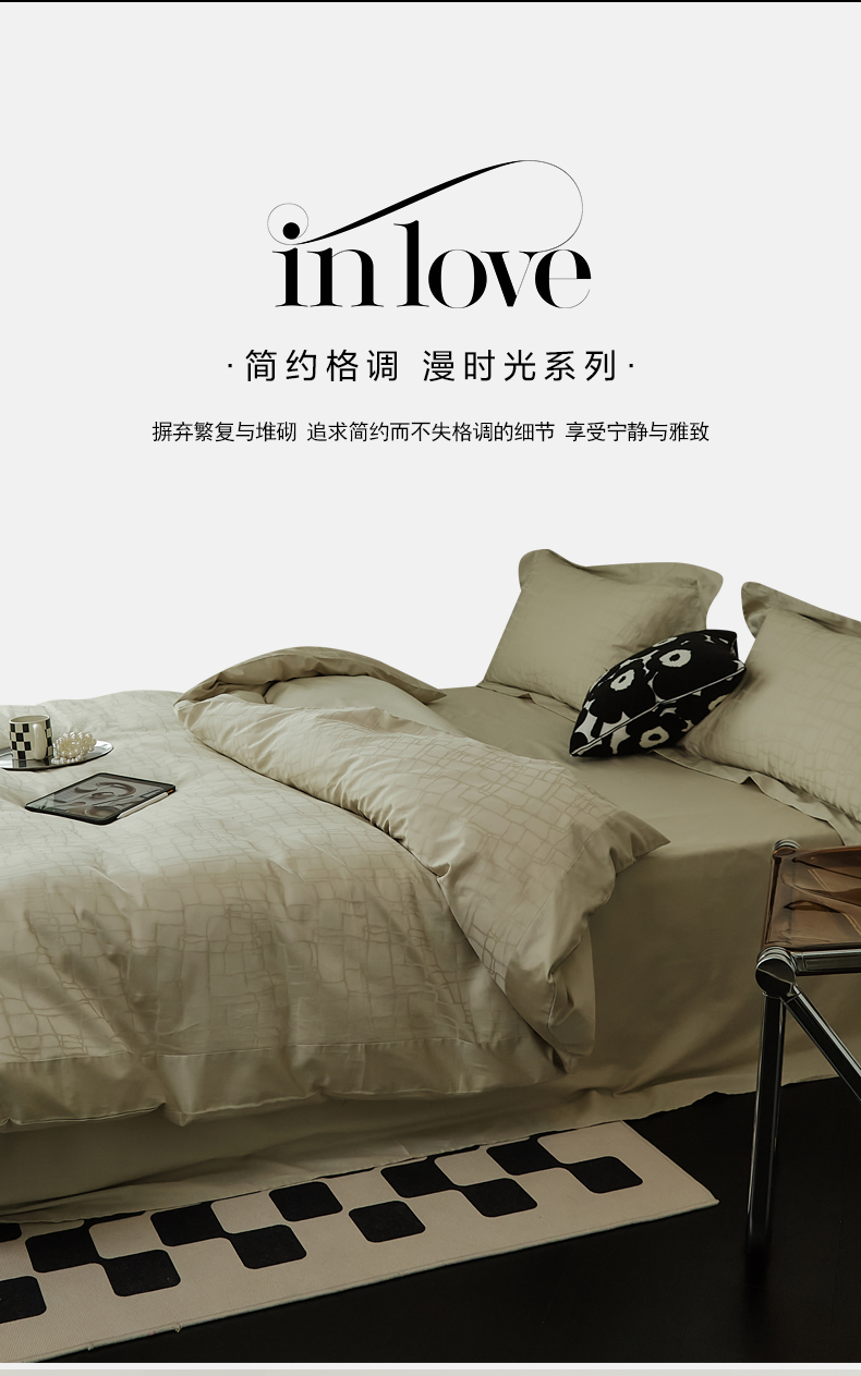 当前位置: 91家纺网 > 商品网购 > 床品套件 > 四件套 > 长绒棉四件套 > 2024新款60支长绒棉提花四件套--漫时光系列(英文版) 漫时光-卡其