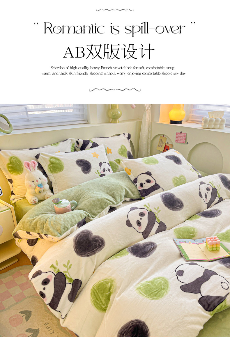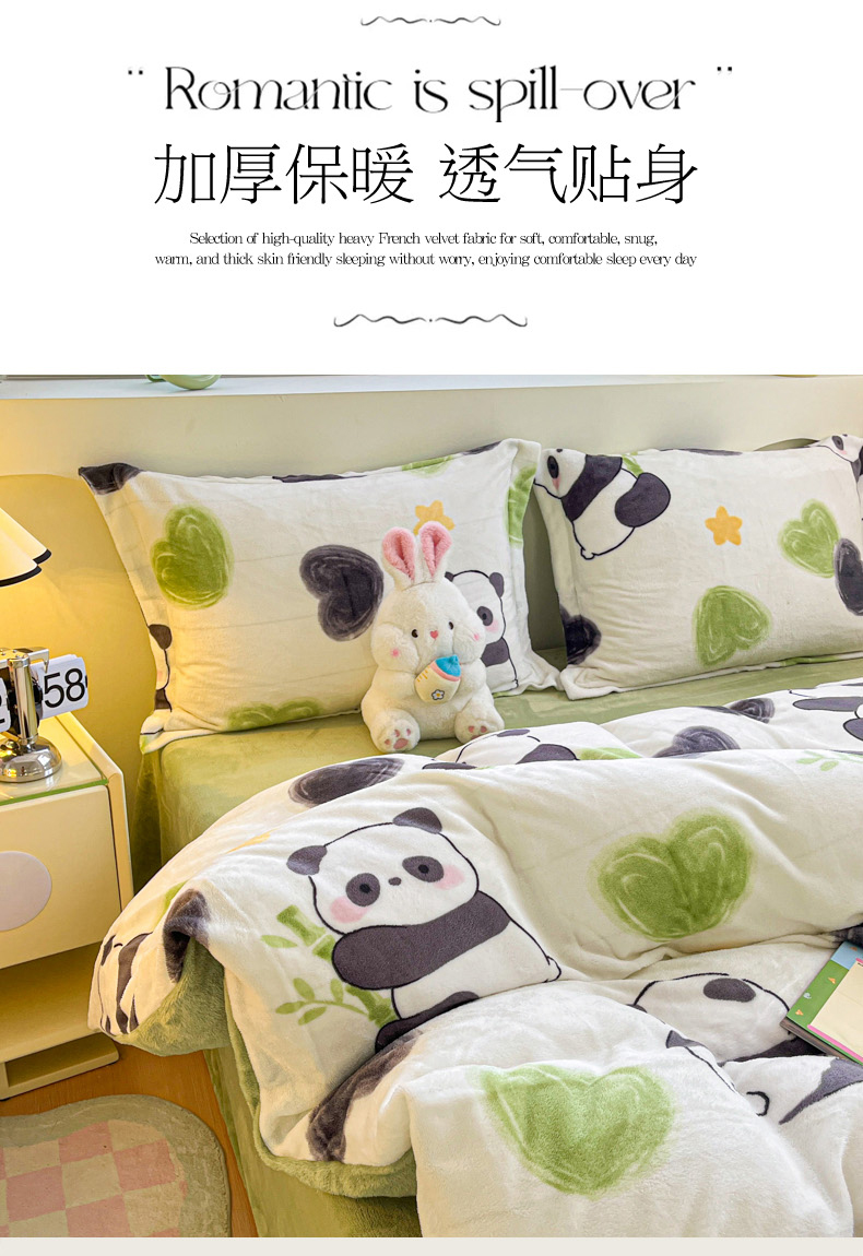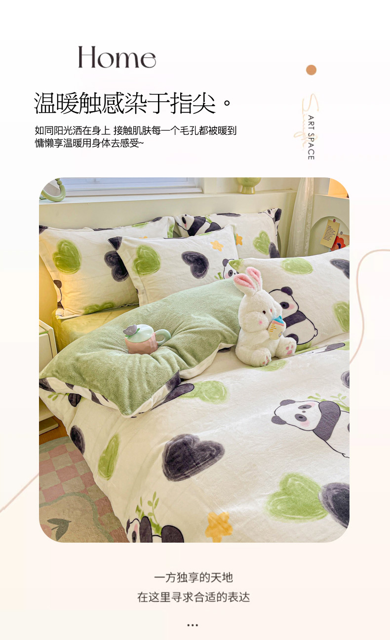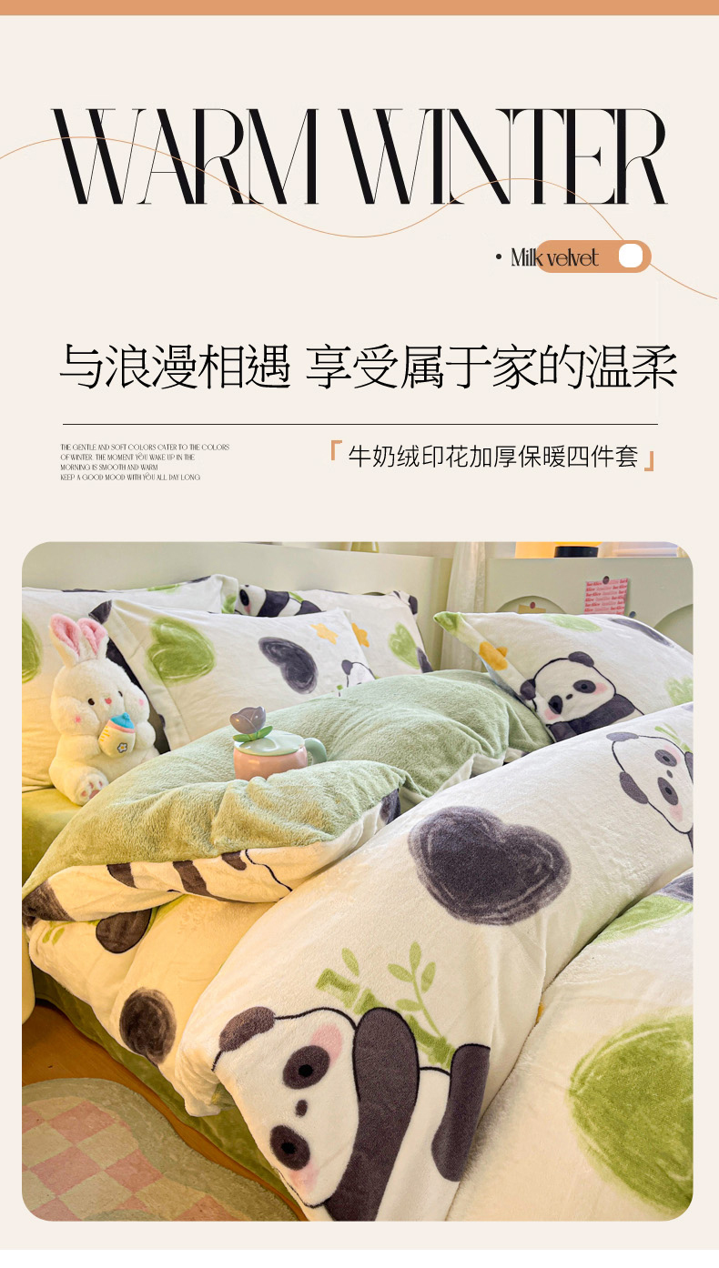当前位置: 91家纺网 > 商品网购 > 床品套件 > 四件套 > 牛奶绒四件套 > 2024新款小清新牛奶绒高克重加厚保暖四件套 爱心熊猫