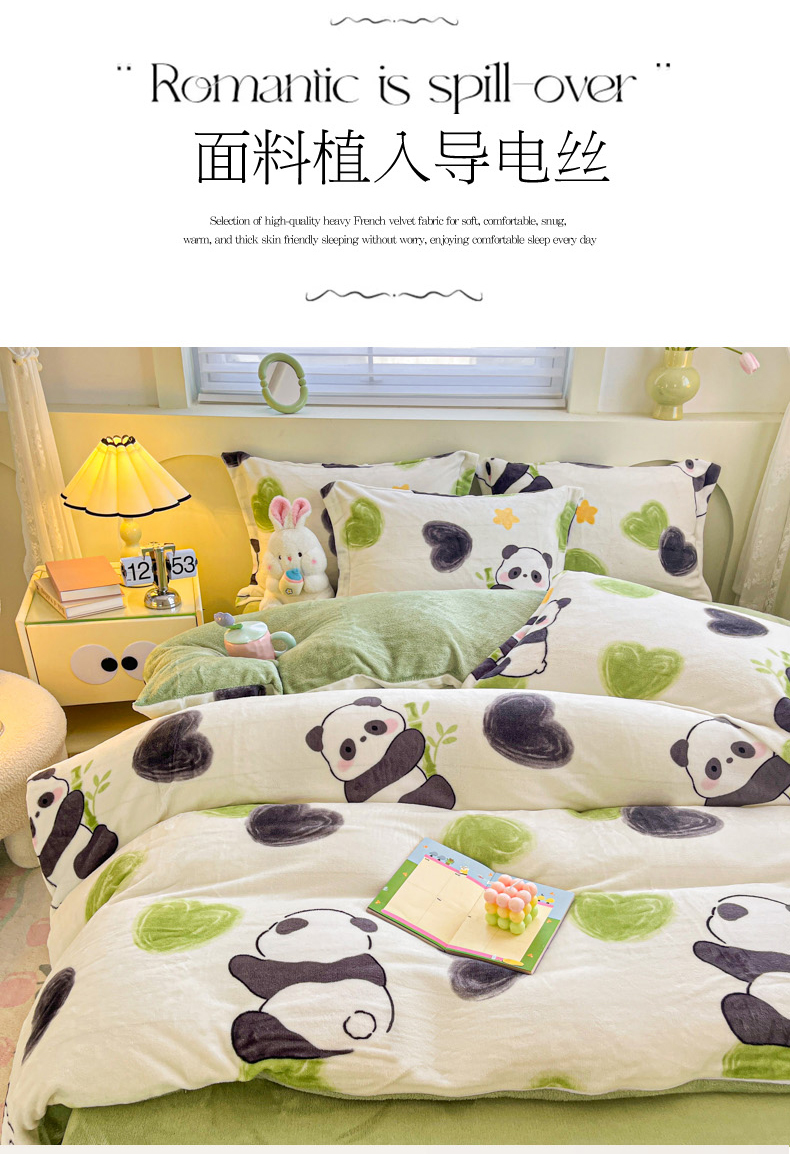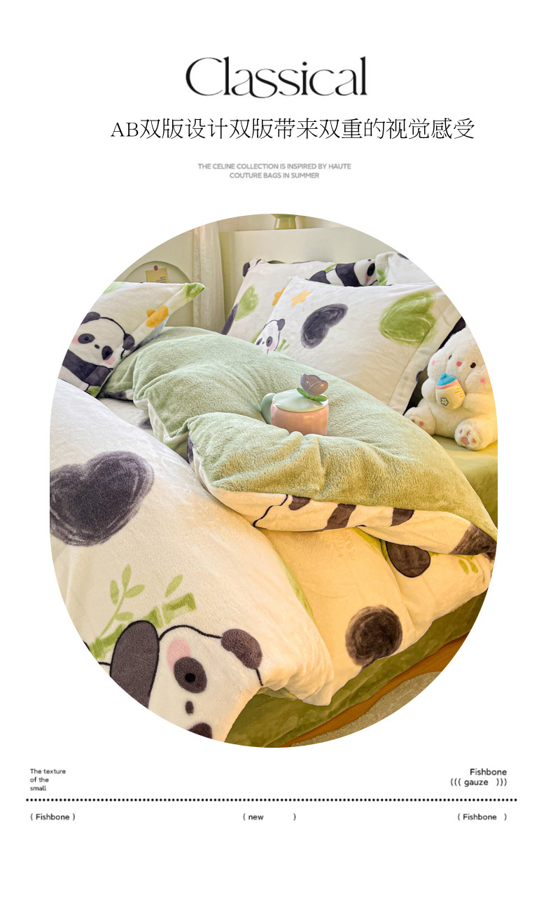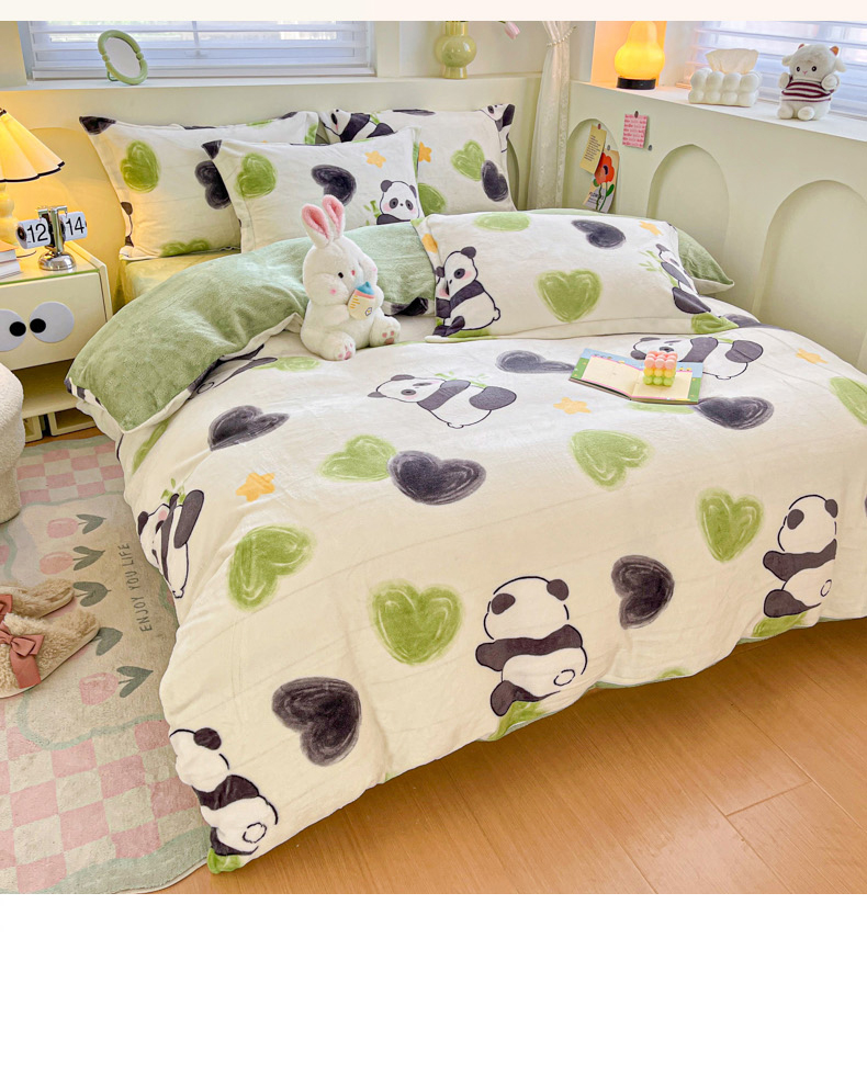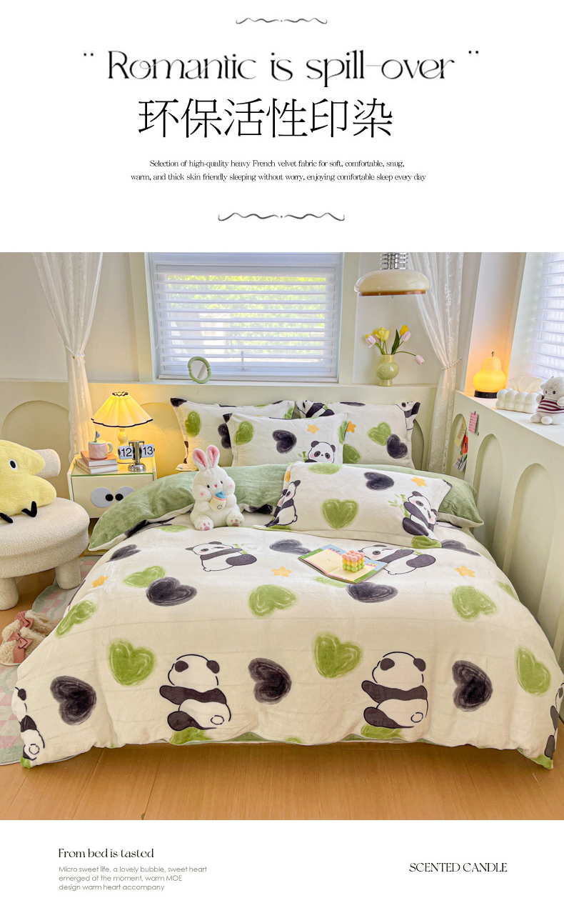 当前位置: 91家纺网 > 商品网购 > 床品套件 > 四件套 > 牛奶绒四件套 > 2024新款小清新牛奶绒高克重加厚保暖四件套 爱心熊猫