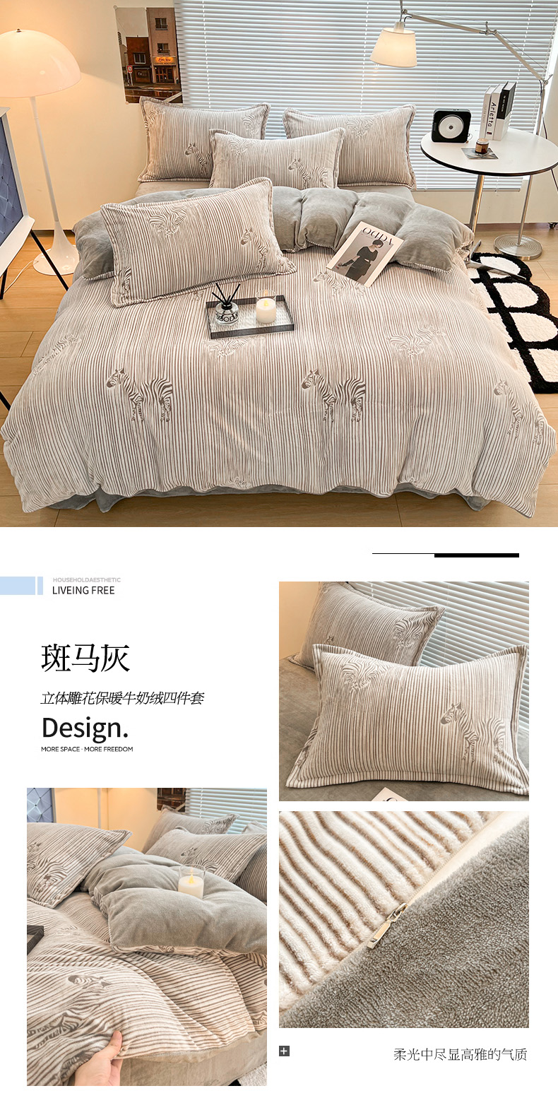 商品名称:(总)2024新款A类高克重立体浮雕牛奶绒加厚保暖系列-四件套
