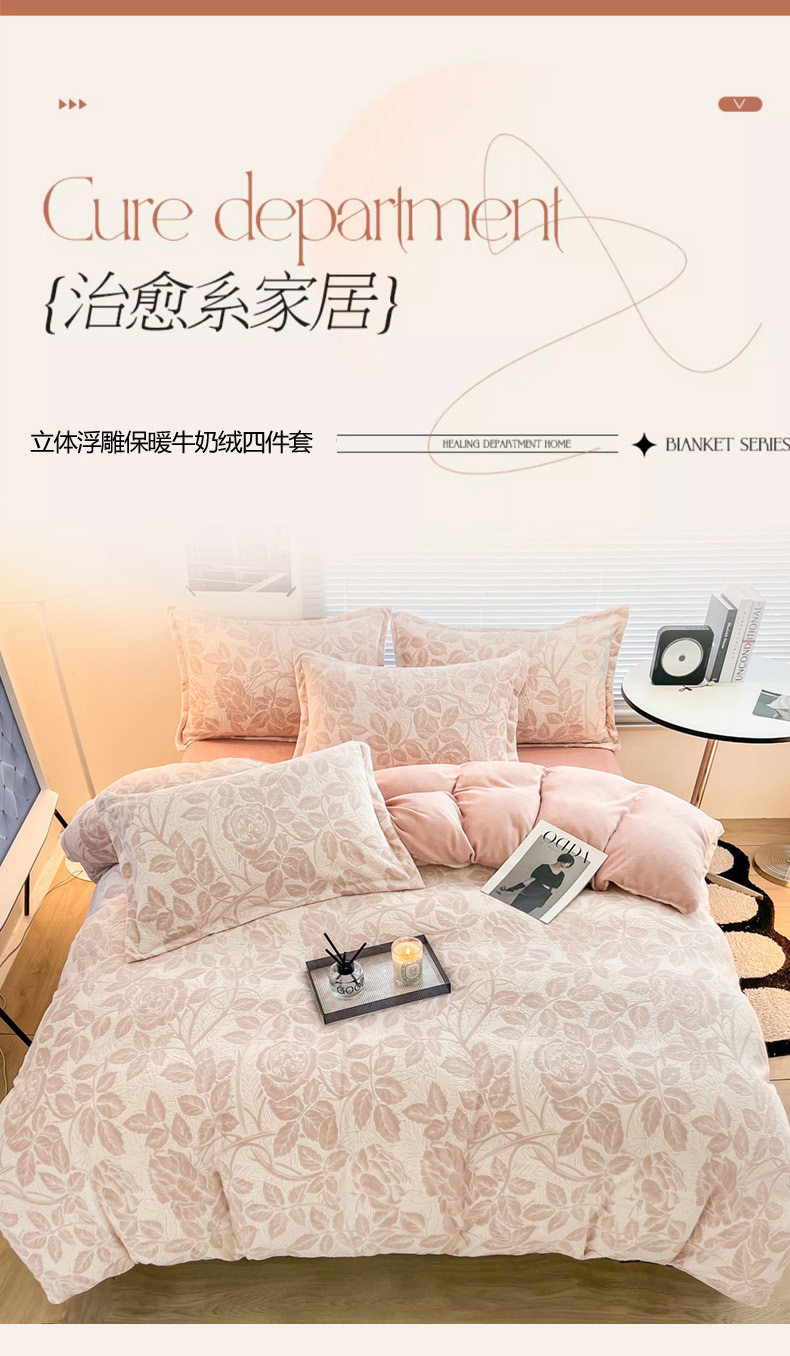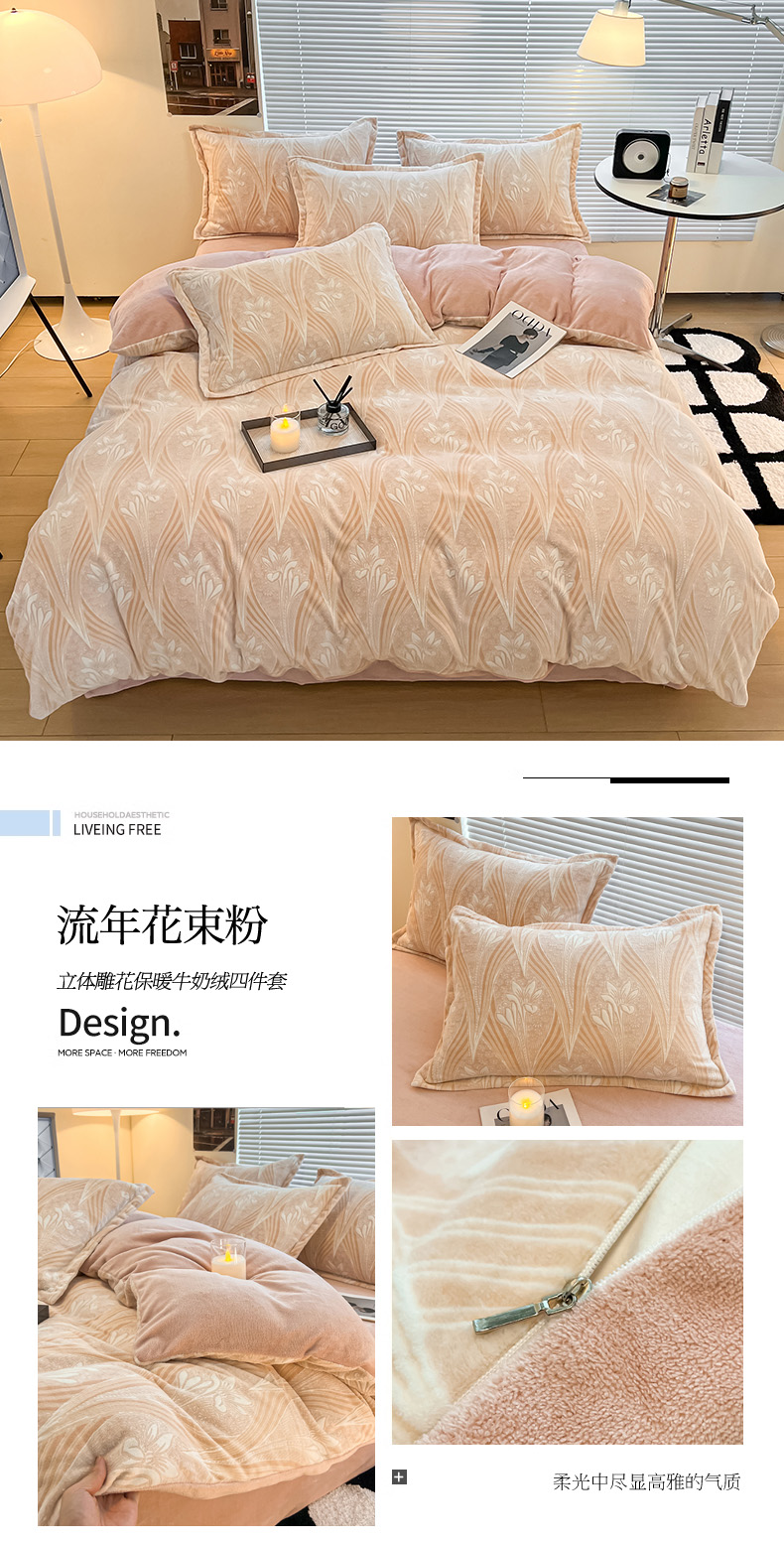 (总)2024新款A类高克重立体浮雕牛奶绒加厚保暖系列-四件套