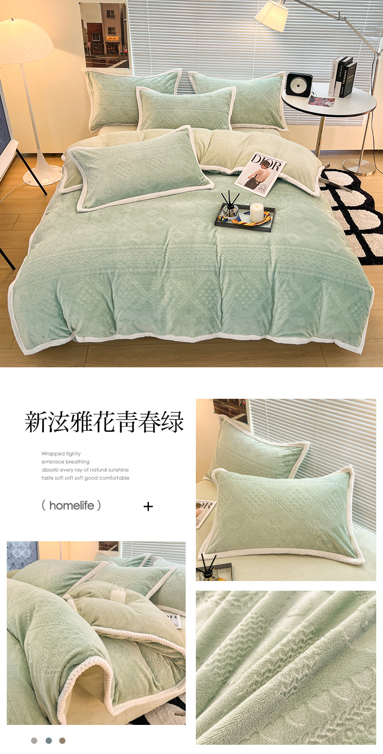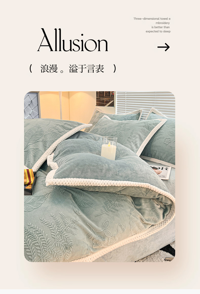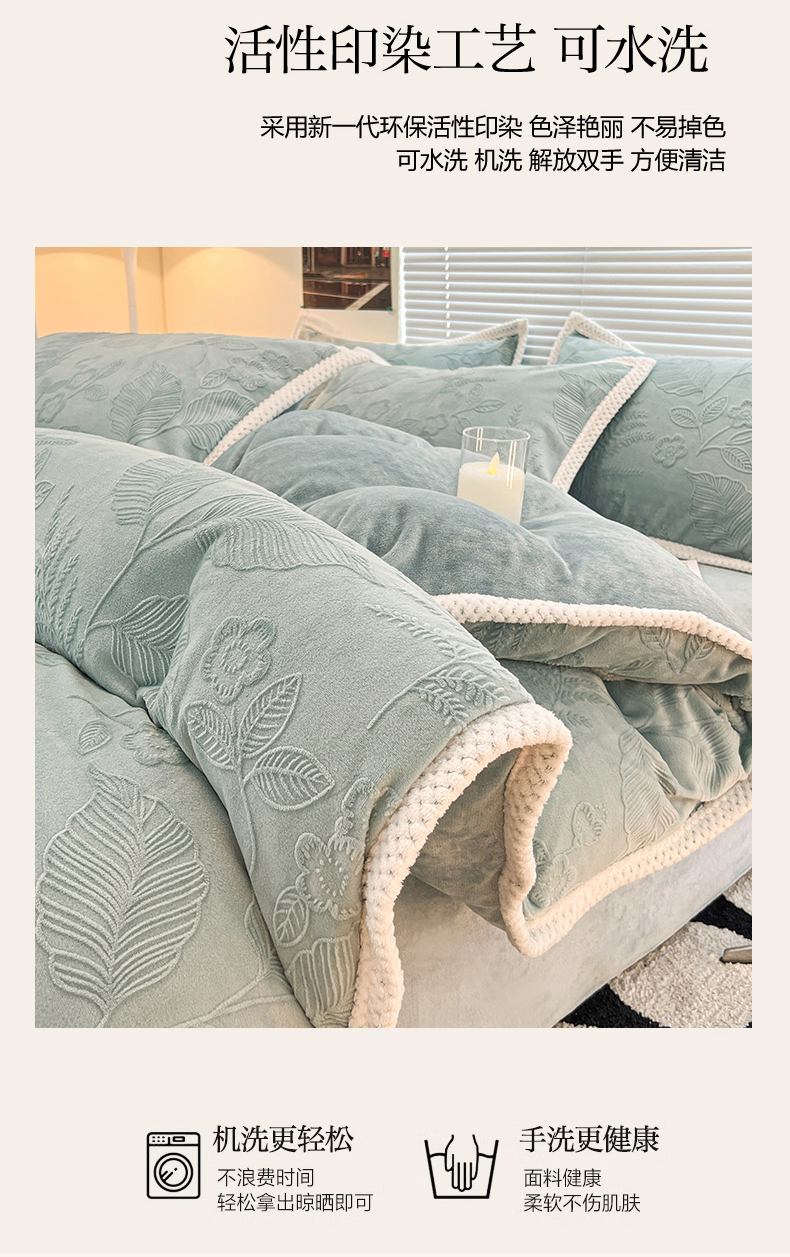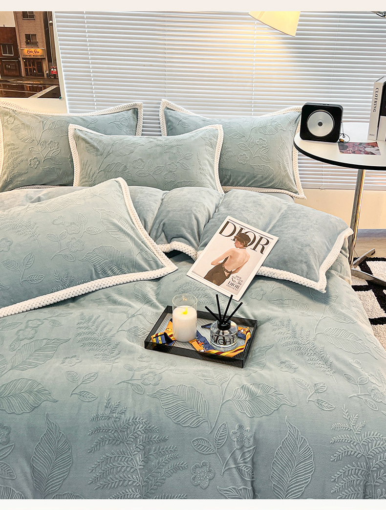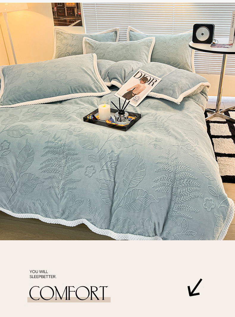 当前位置: 91家纺网 > 商品网购 > 床品套件 > 四件套 > 牛奶绒四件套 > 2024新款A类高克重3D立体雕花牛奶绒保暖系列套件单品-四件套 花雕蓝