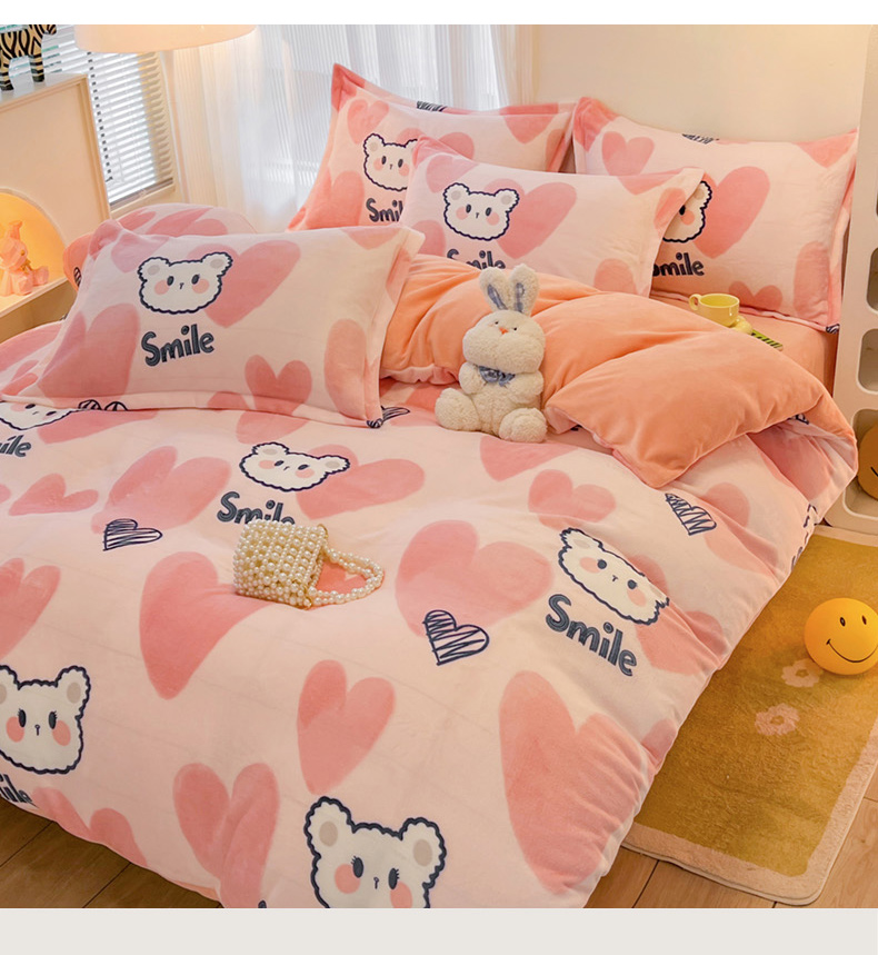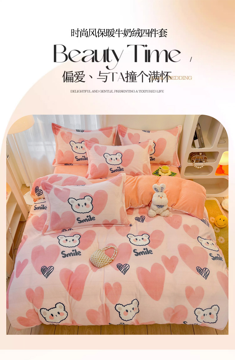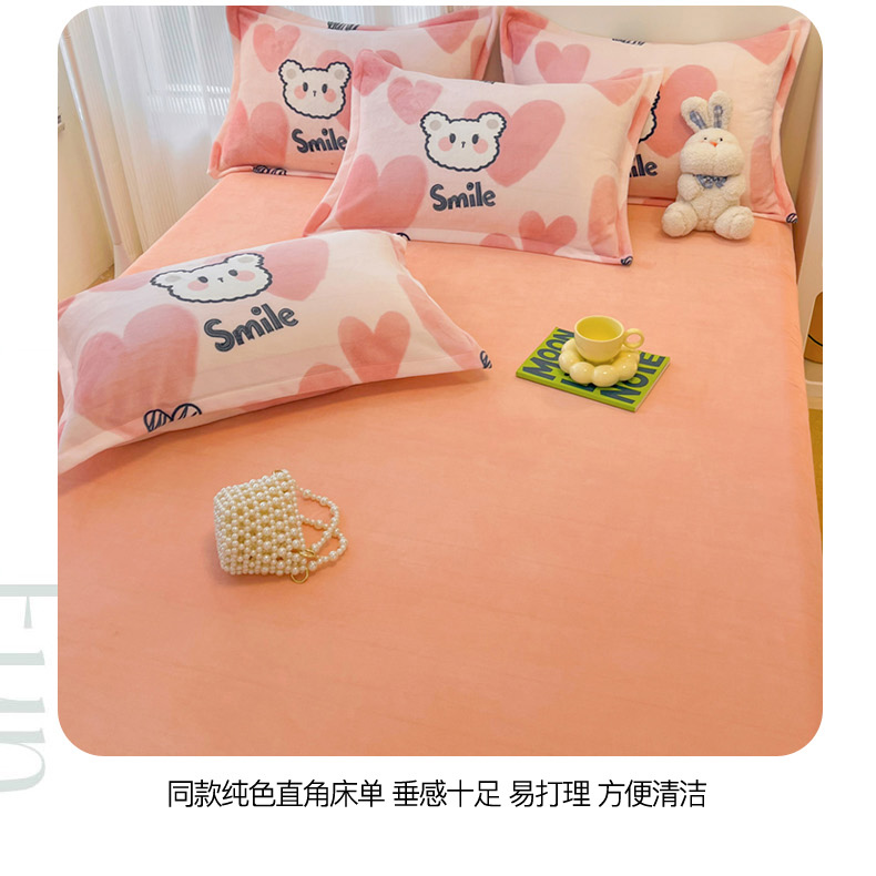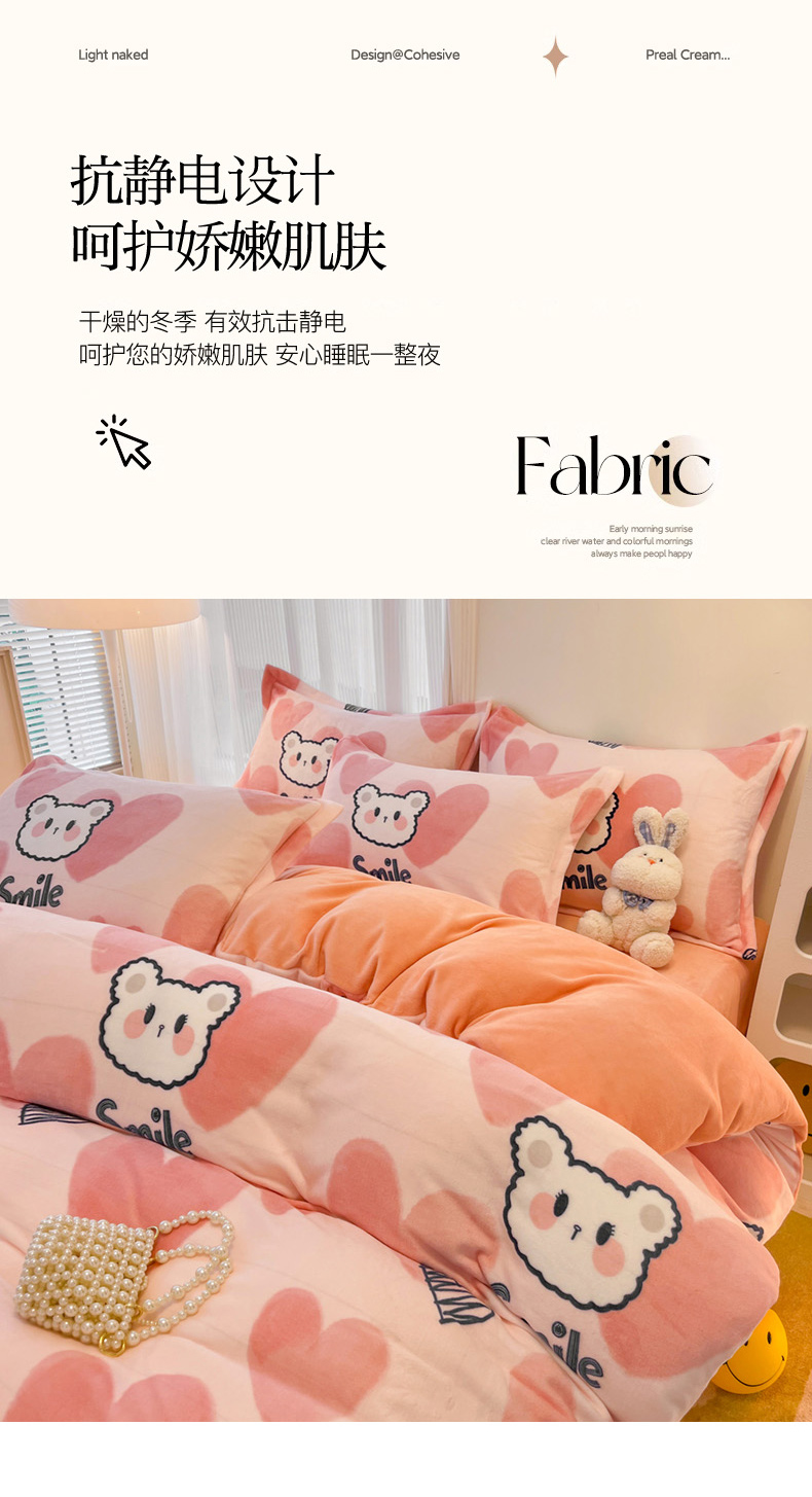 当前位置: 91家纺网 > 商品网购 > 床品套件 > 四件套 > 牛奶绒四件套 > 2024新款A类高克重时尚风牛奶绒加厚保暖系列套件单品-四件套 波波熊粉
