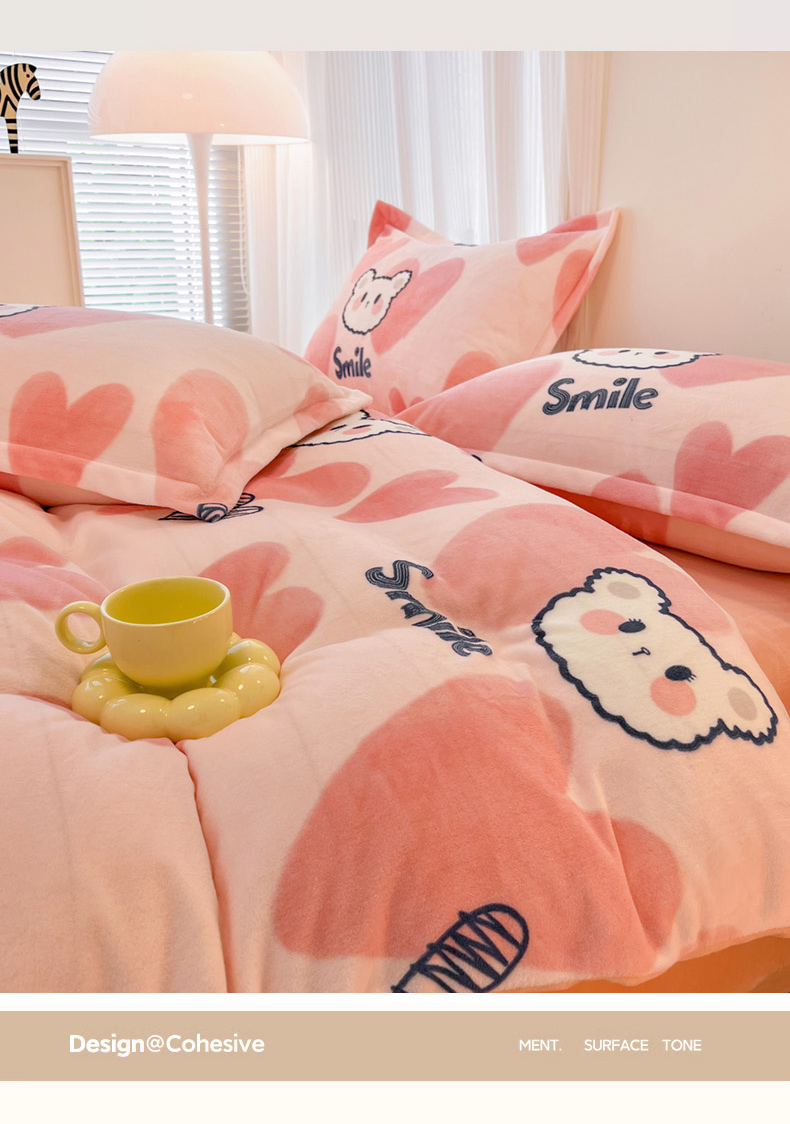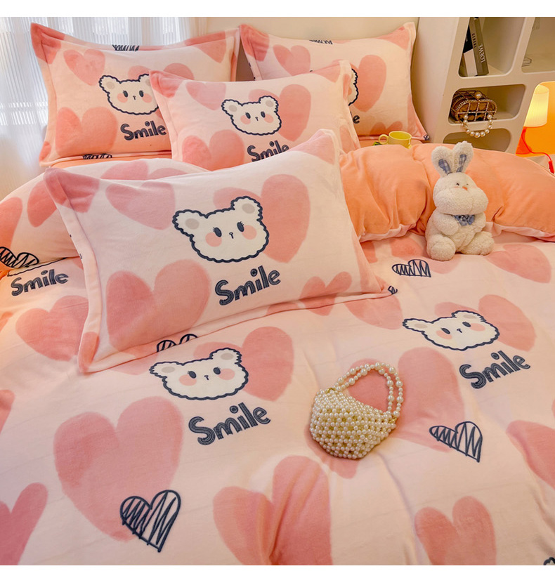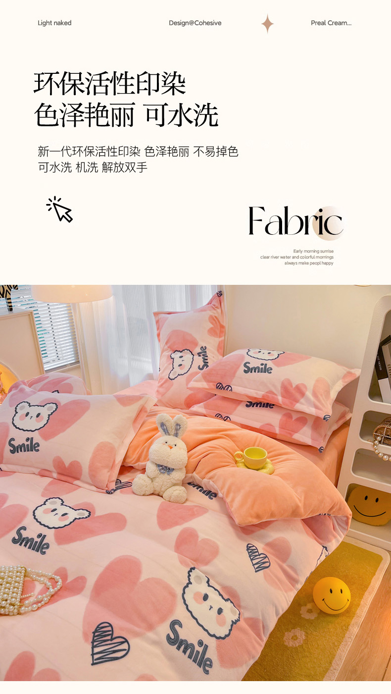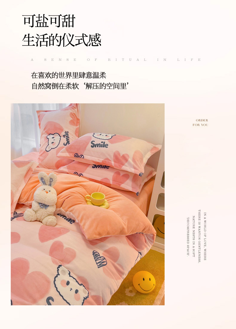 当前位置: 91家纺网 > 商品网购 > 床品套件 > 四件套 > 牛奶绒四件套 > 2024新款A类高克重时尚风牛奶绒加厚保暖系列套件单品-四件套 波波熊粉