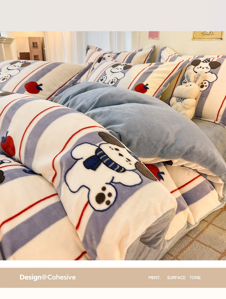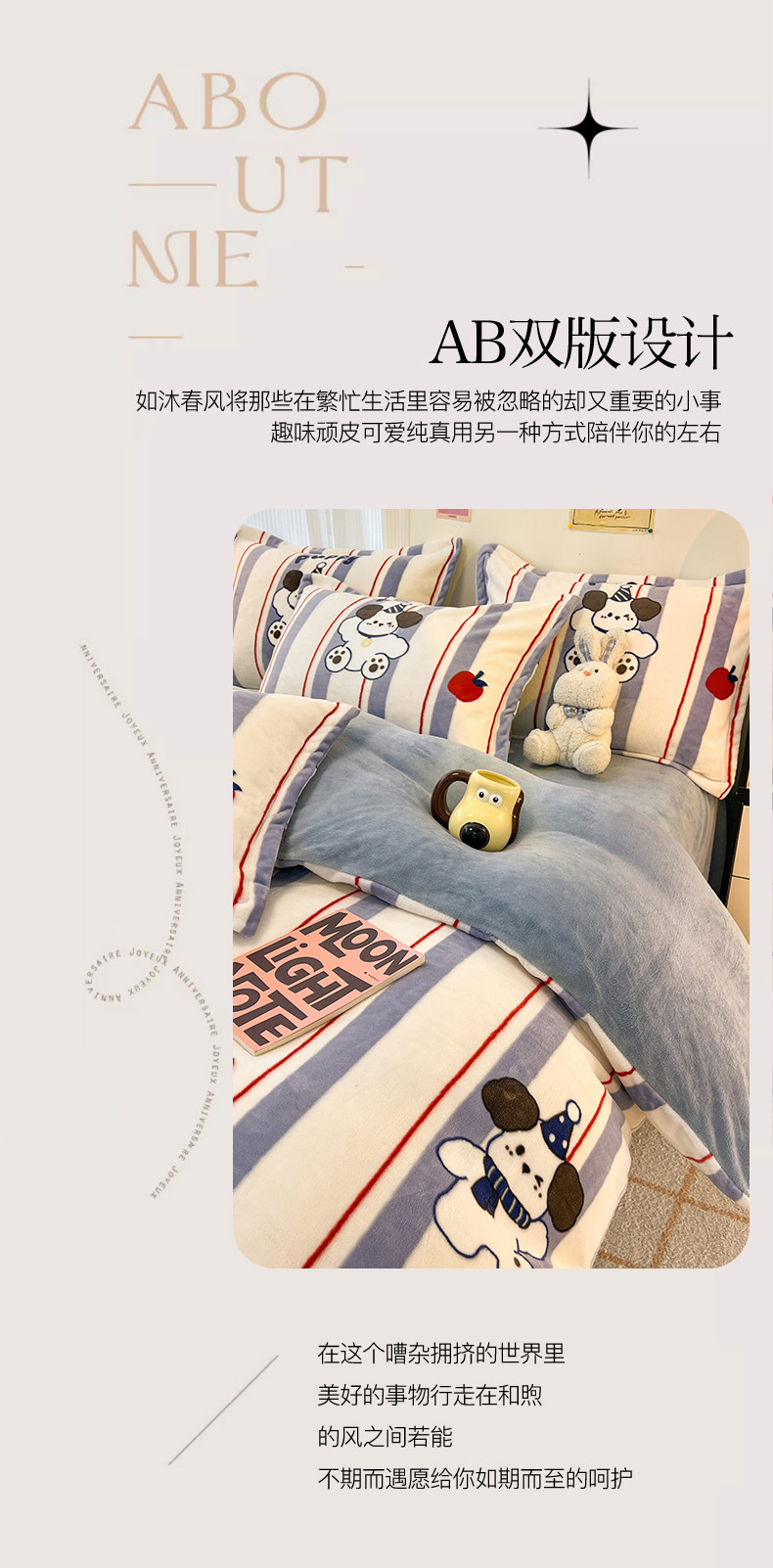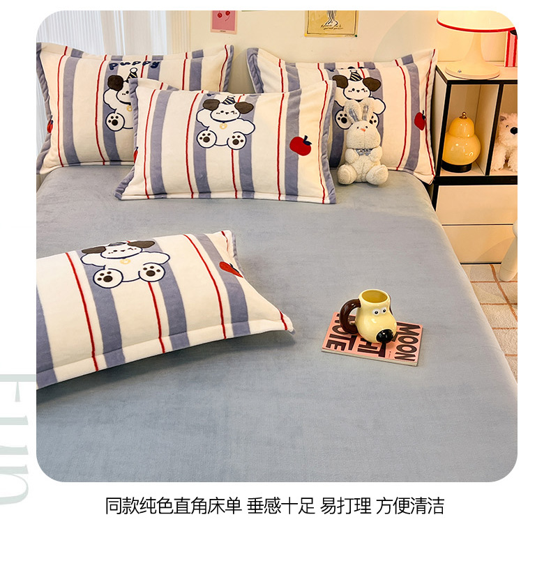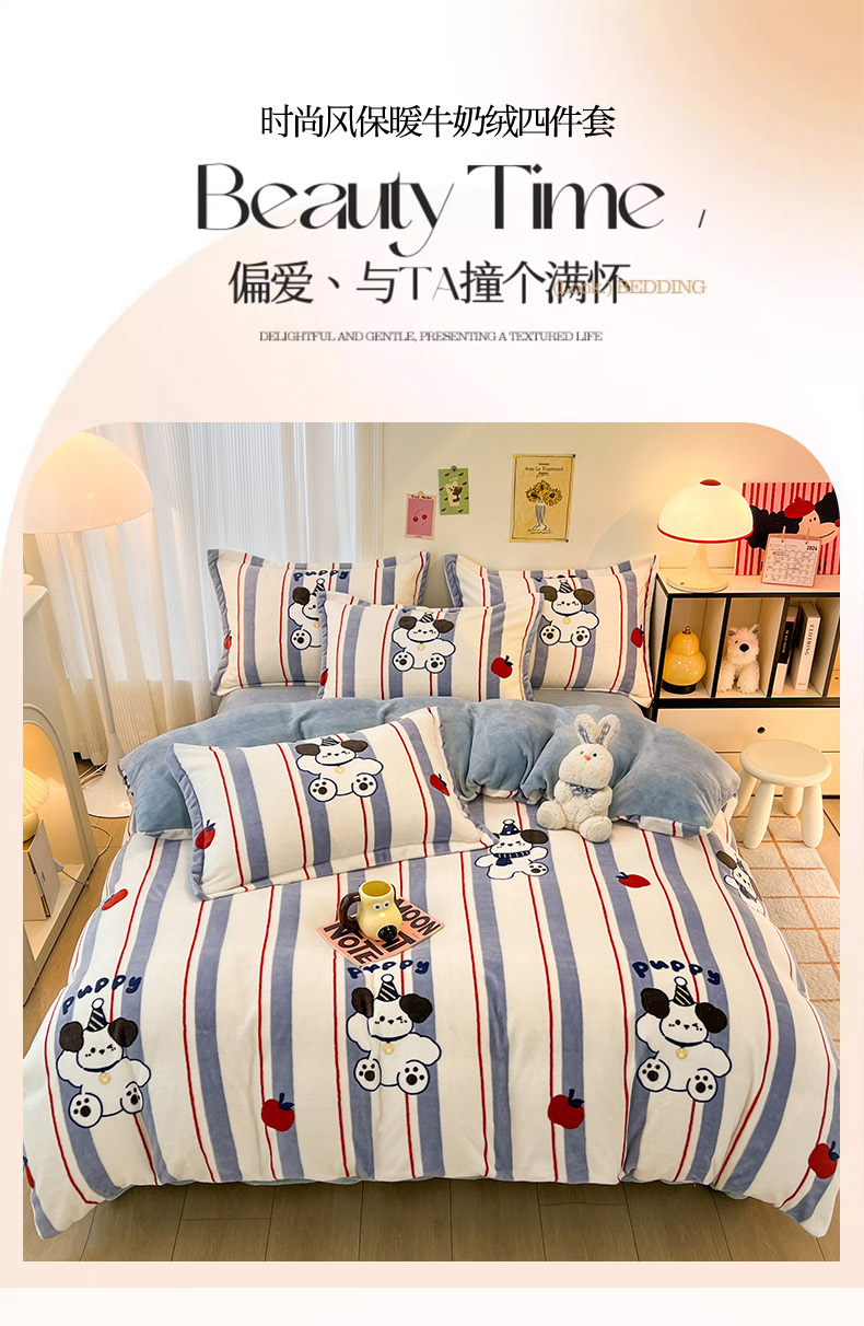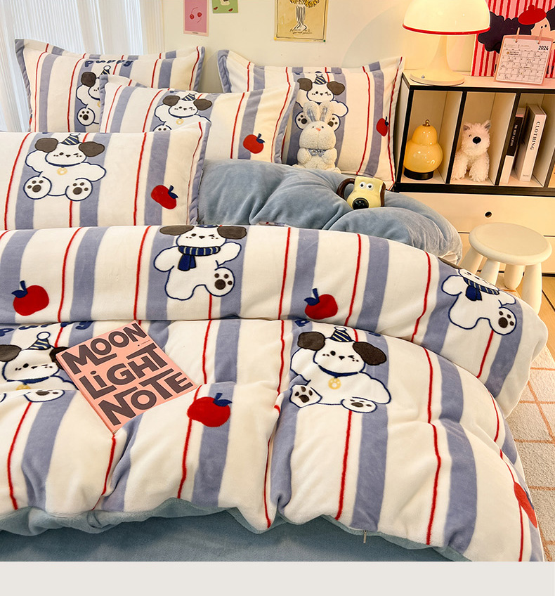 当前位置: 91家纺网 > 商品网购 > 床品套件 > 四件套 > 牛奶绒四件套 > 2024新款A类高克重时尚风牛奶绒加厚保暖系列套件单品-四件套 苹果小狗