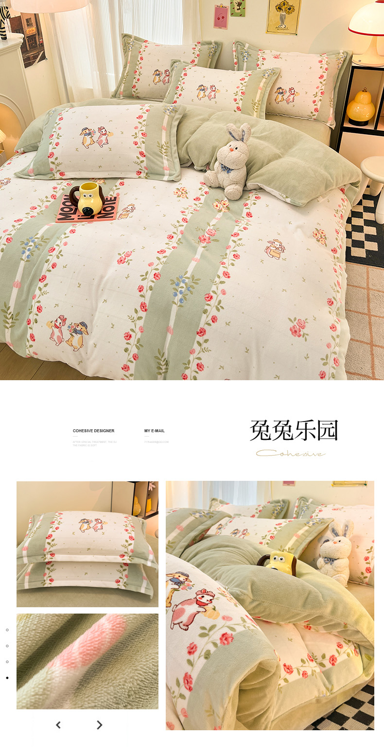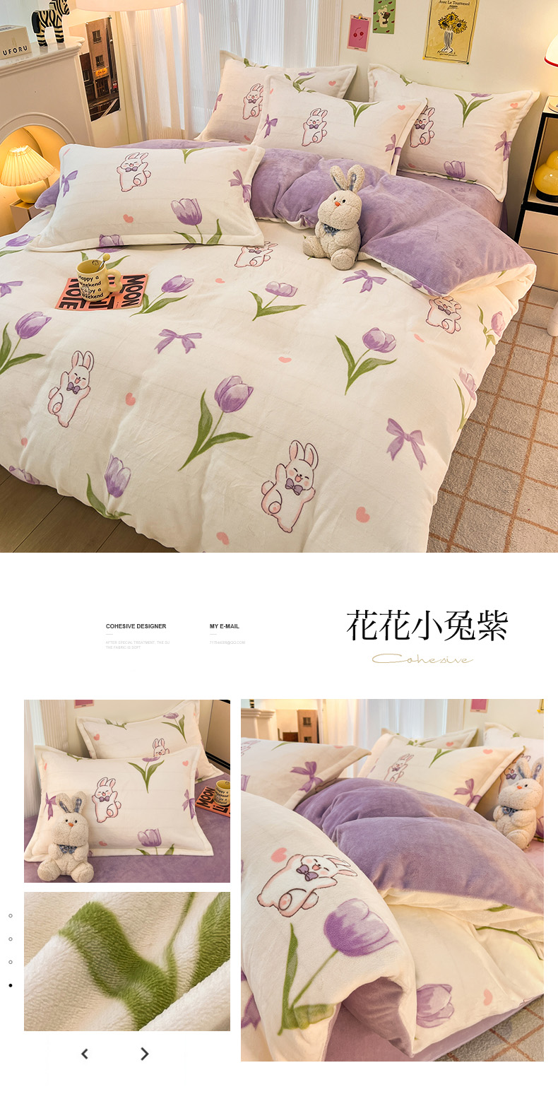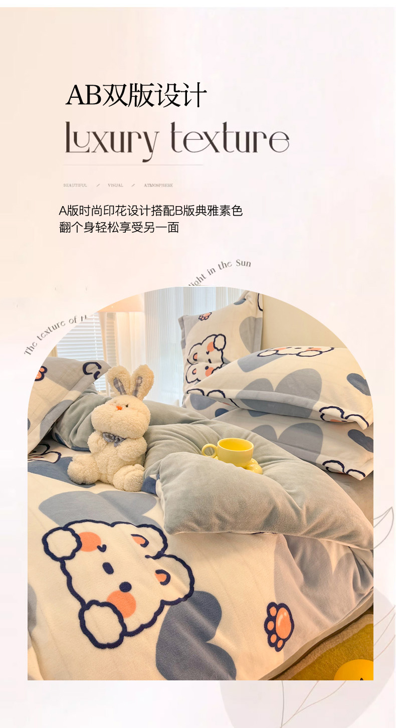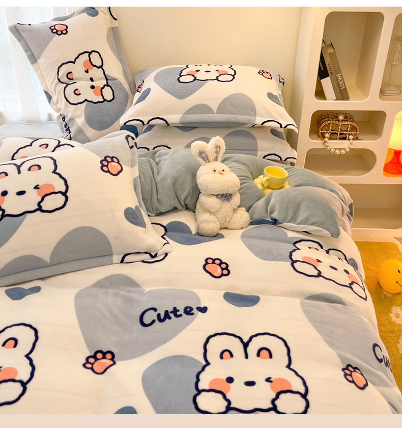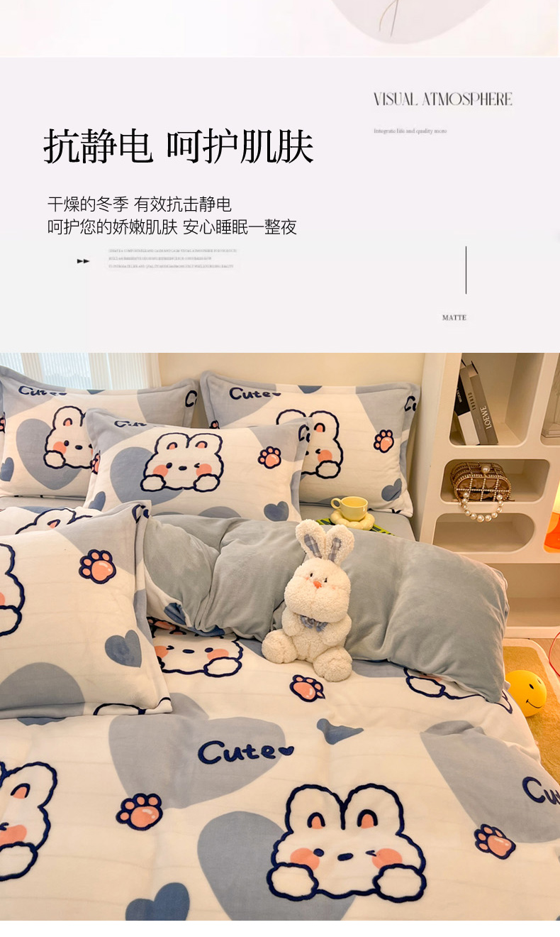 商品名称:2024新款A类高克重时尚风牛奶绒加厚保暖系列套件单品-被套 爱心兔