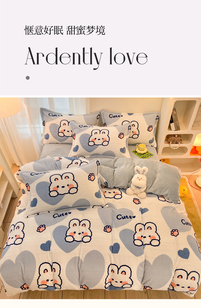2024新款A类高克重时尚风牛奶绒加厚保暖系列套件单品-被套 爱心兔