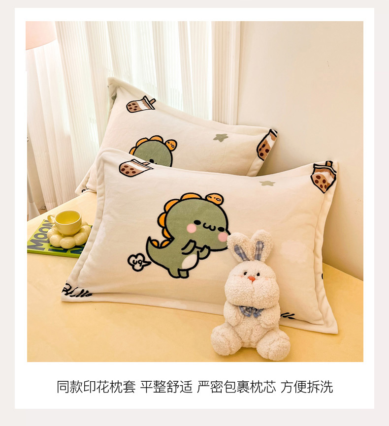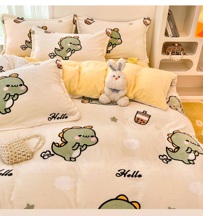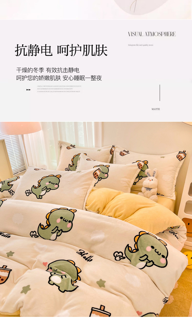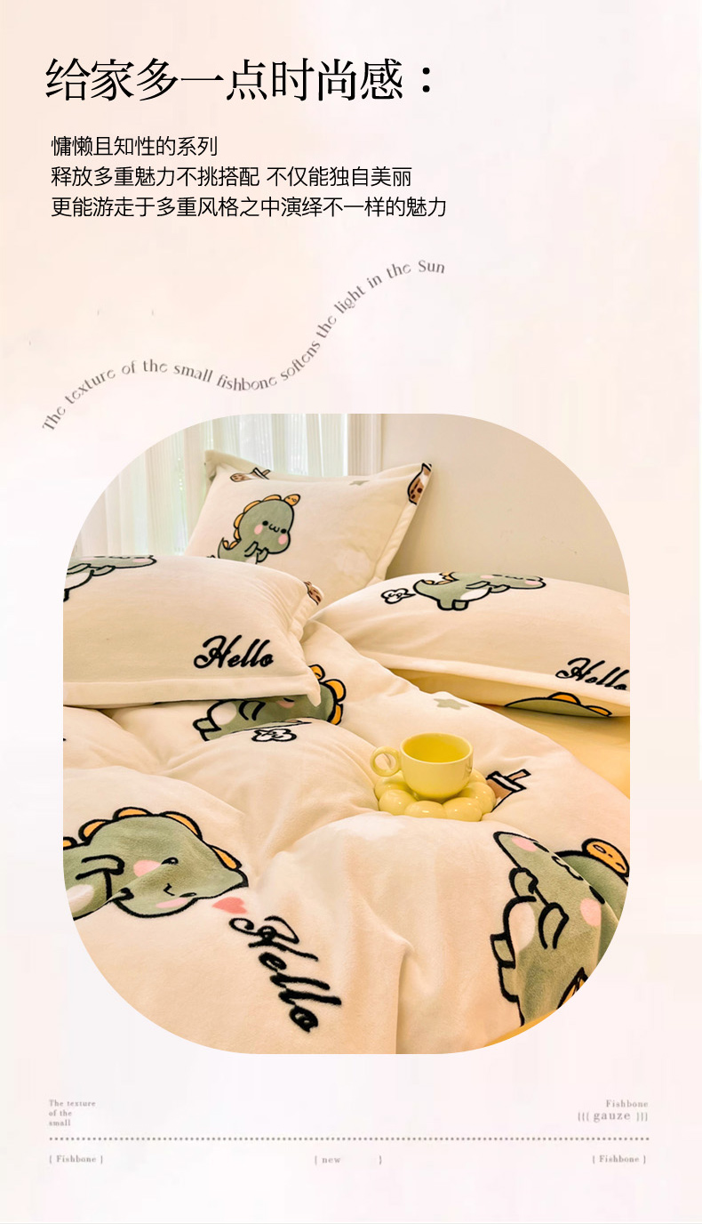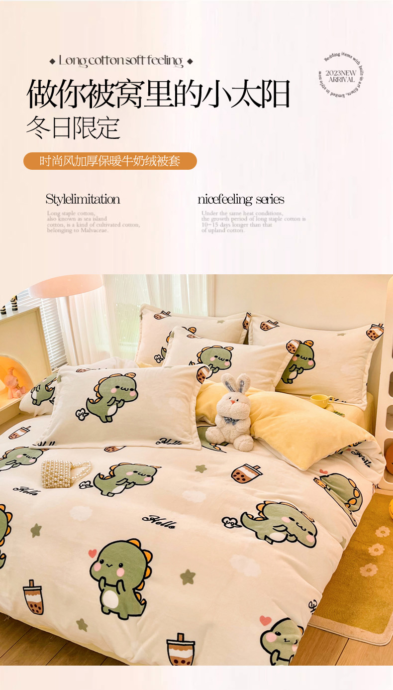 商品名称:2024新款A类高克重时尚风牛奶绒加厚保暖系列套件单品-被套 恐龙先生