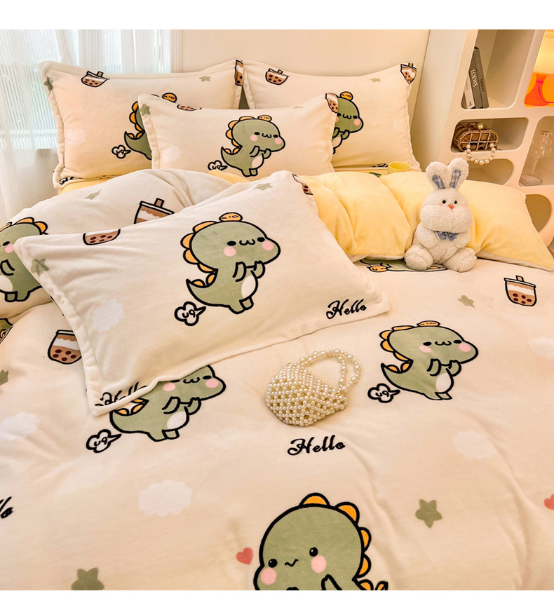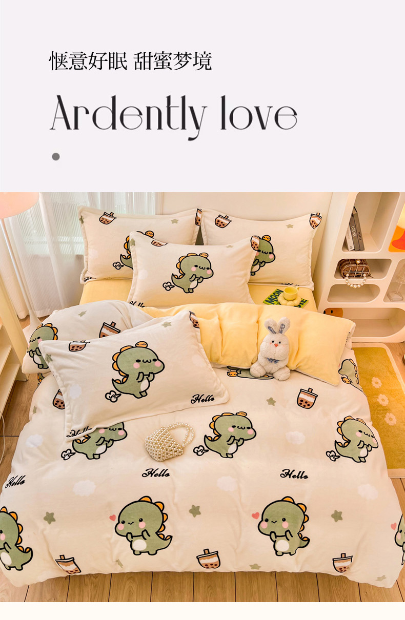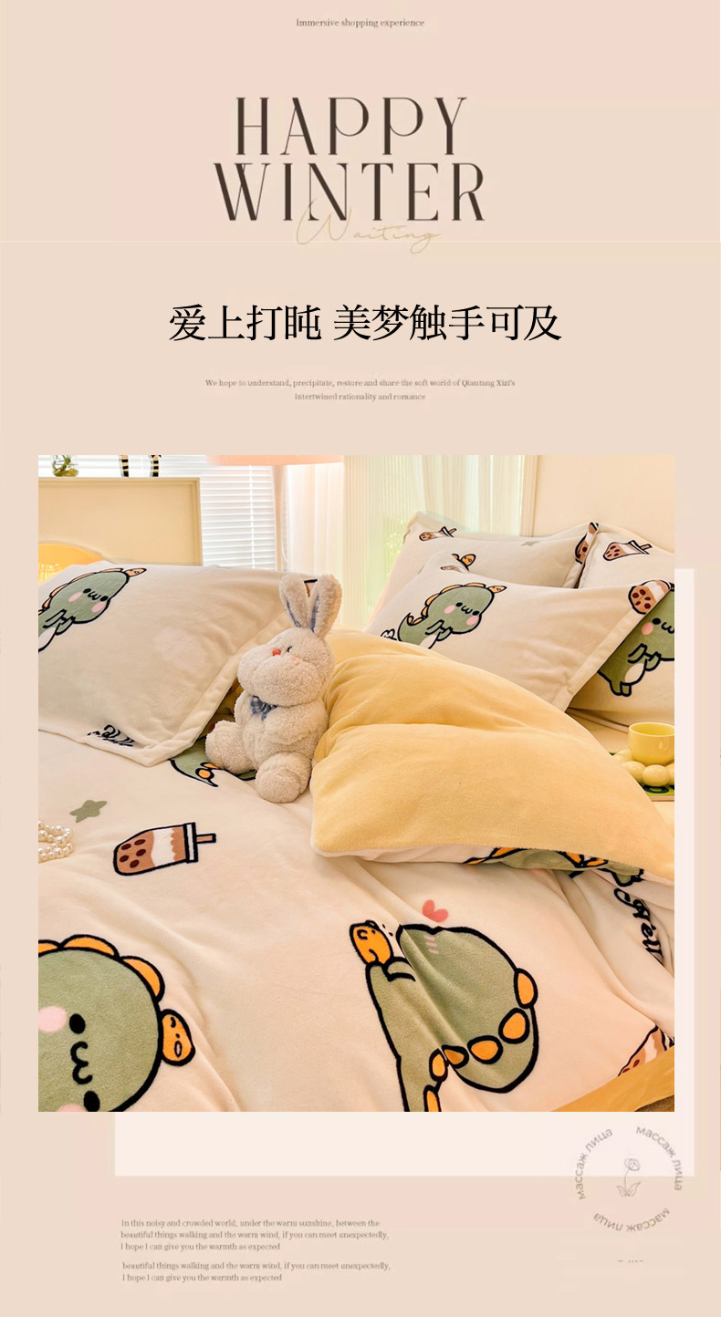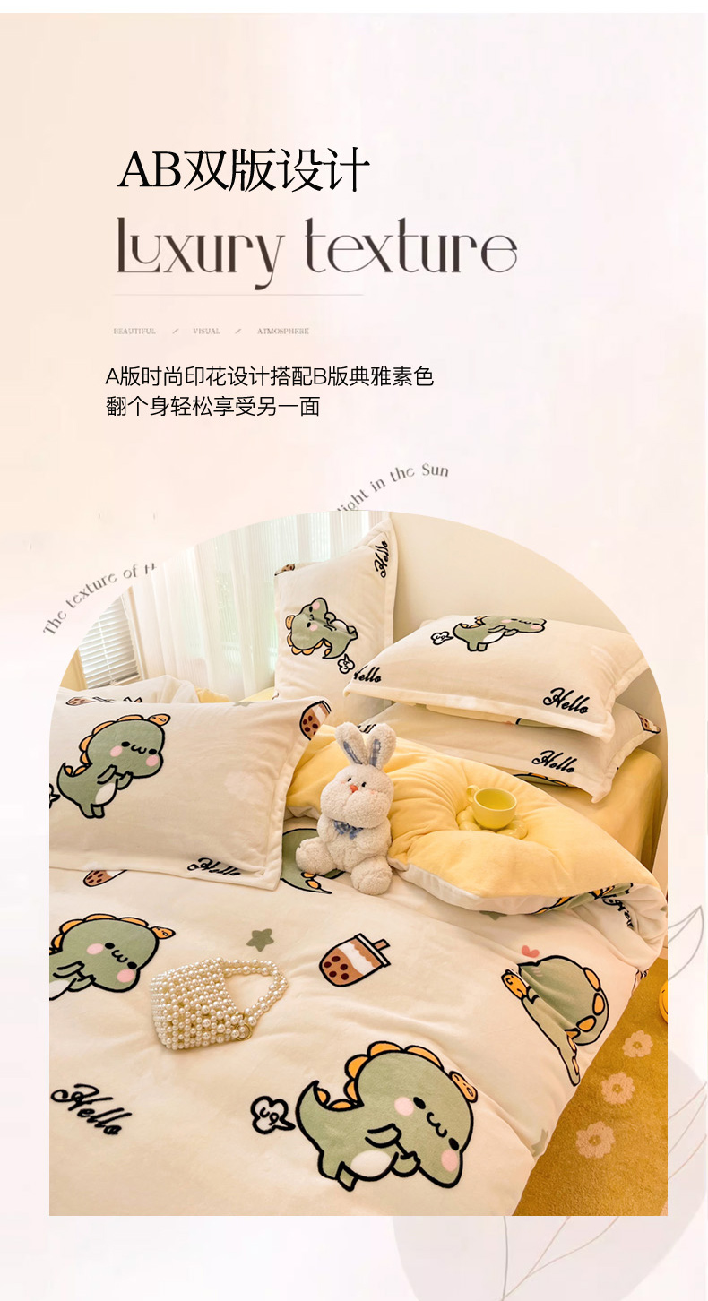商品名称:2024新款A类高克重时尚风牛奶绒加厚保暖系列套件单品-被套 恐龙先生