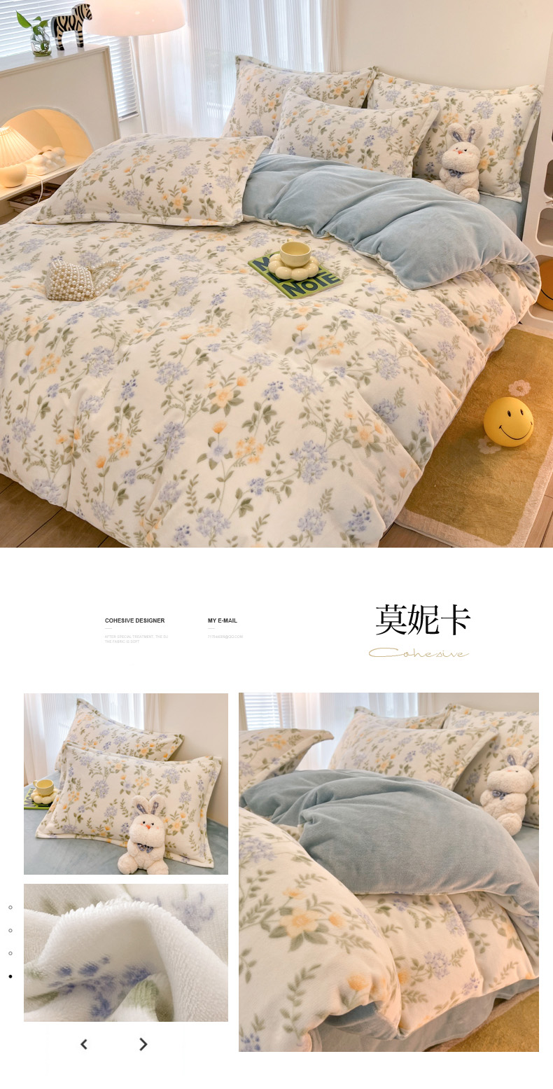 (总)倾慕家纺 2025新款卡通毛巾绣加厚保暖牛奶绒四件套,爱心女孩,咖啡小狗,猫咪熊兔,迷你小车,圣诞树熊,音乐企鹅