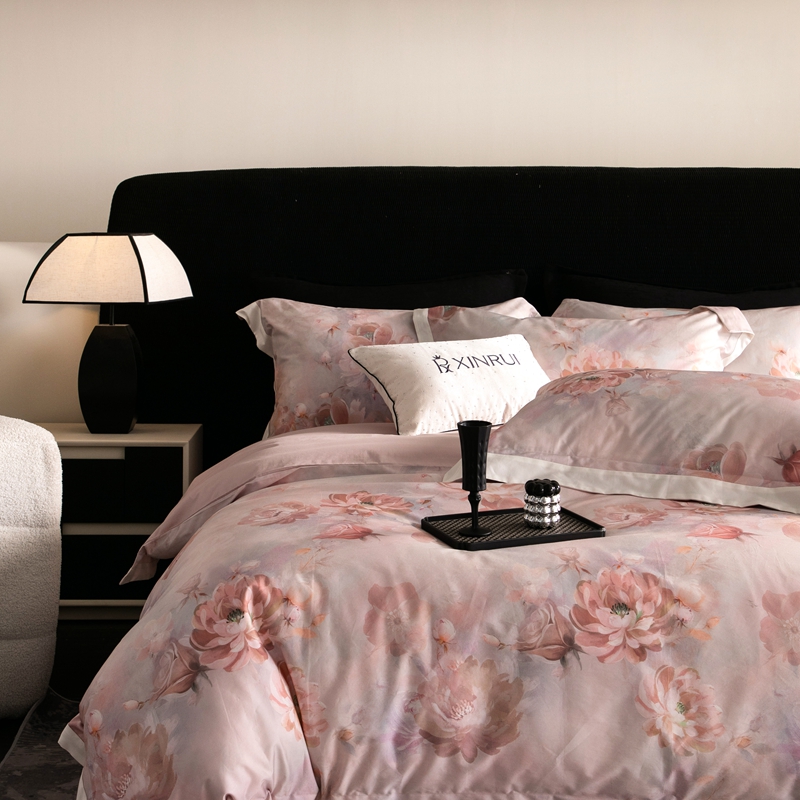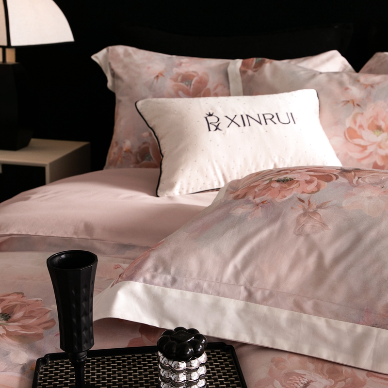 商品名称:馨蕊家居 2024新款100S澳棉高奢简约活性数码印花拼接四件套-汐颜 汐颜-粉
