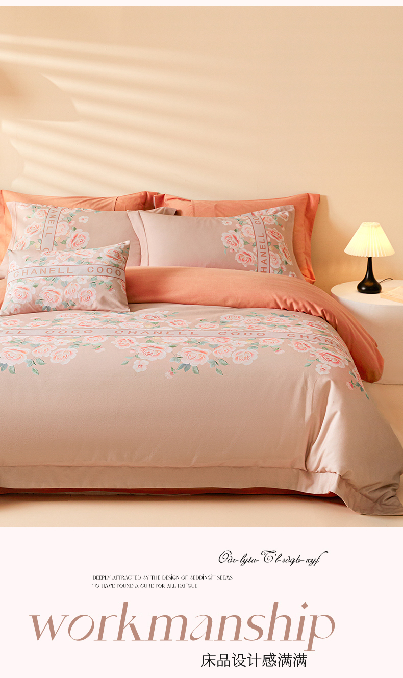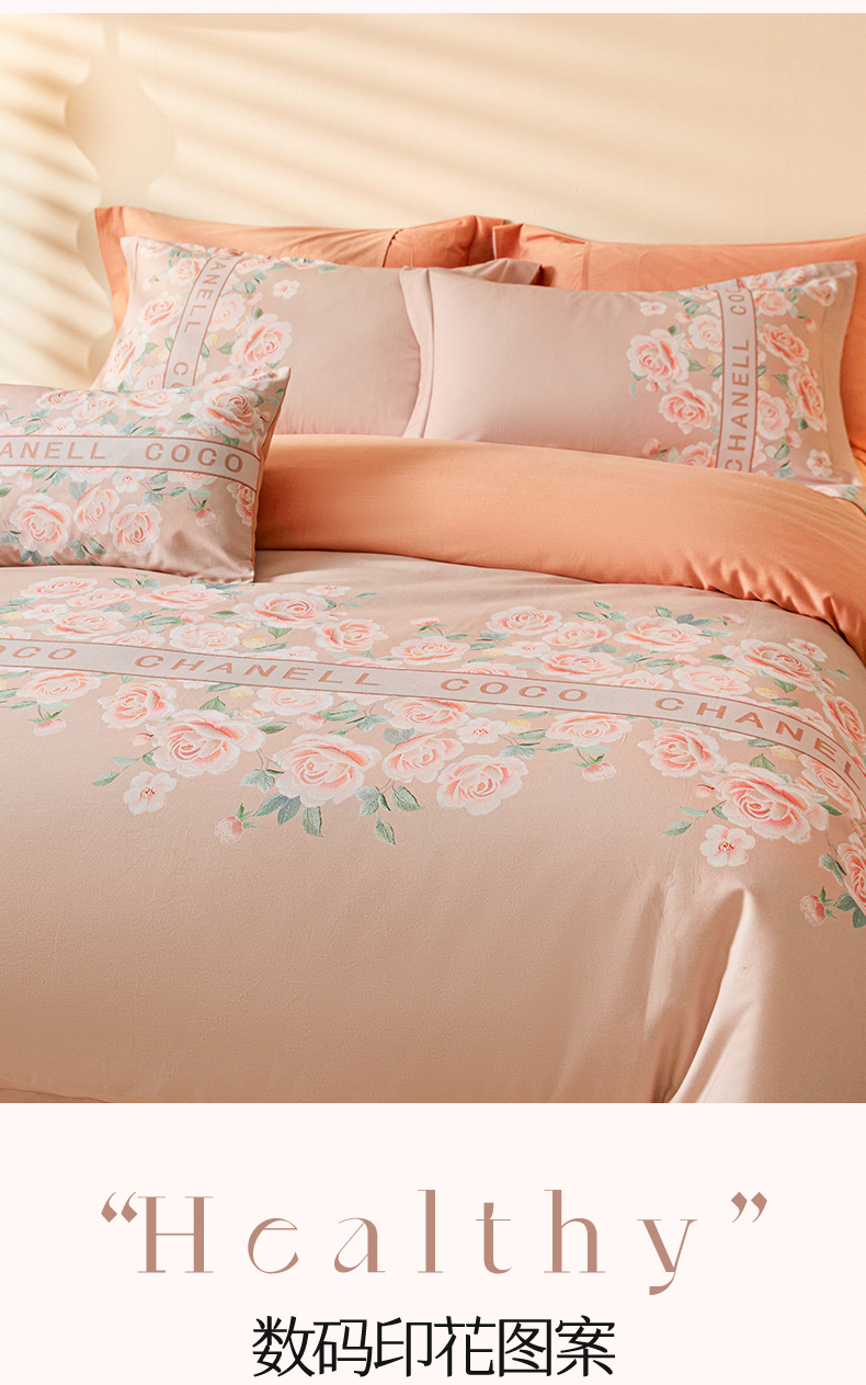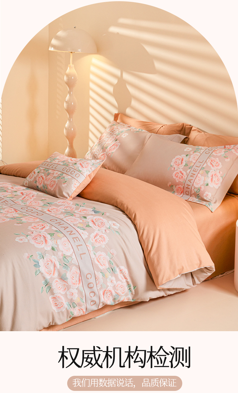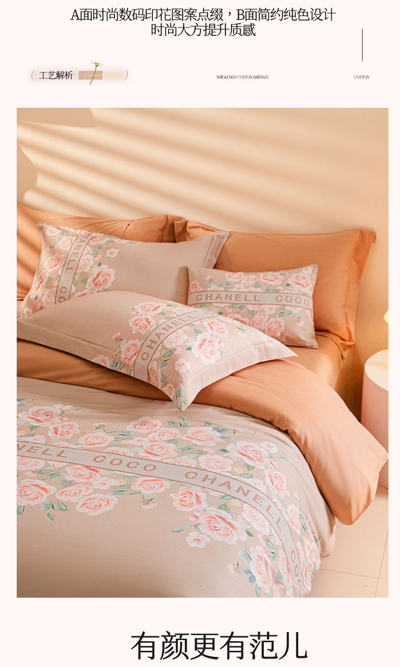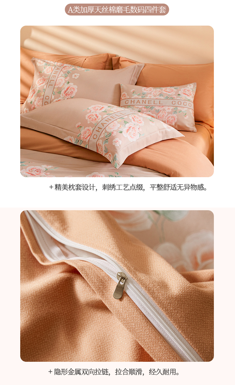 商品名称:2024新秋冬A类加厚磨毛天丝棉数码四件套-花芙系列 花芙TM-拿铁橡咖