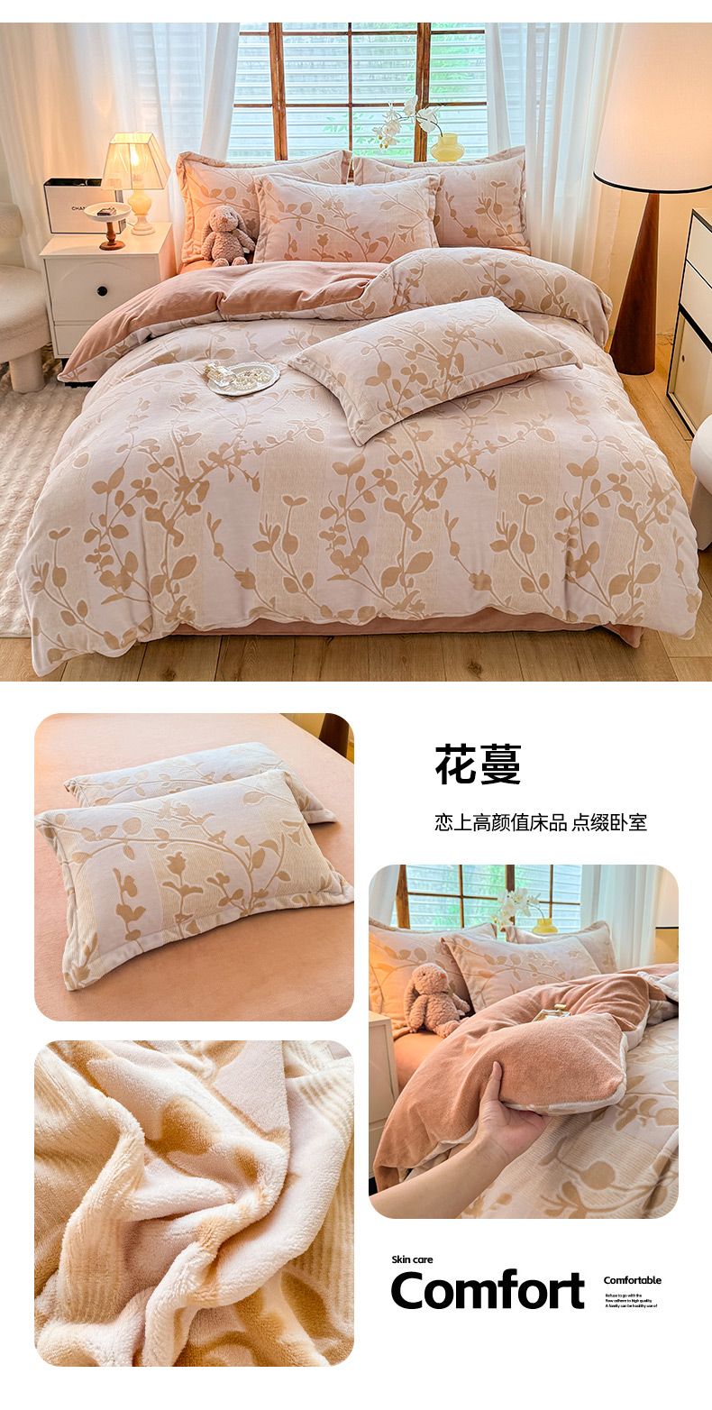 (总)518家纺 2025新款A类立体雕花绒四件套-着色,蝴蝶梦-米黄,椰树情怀-灰,梦境仙踪-兰,樱花草-卡其,椰树情怀-驼,梦境仙踪-灰,樱花草-兰灰,樱花草-粉,梦境仙踪-豆沙