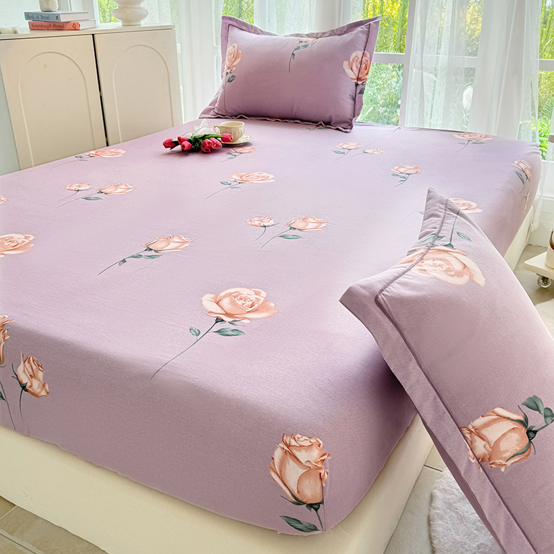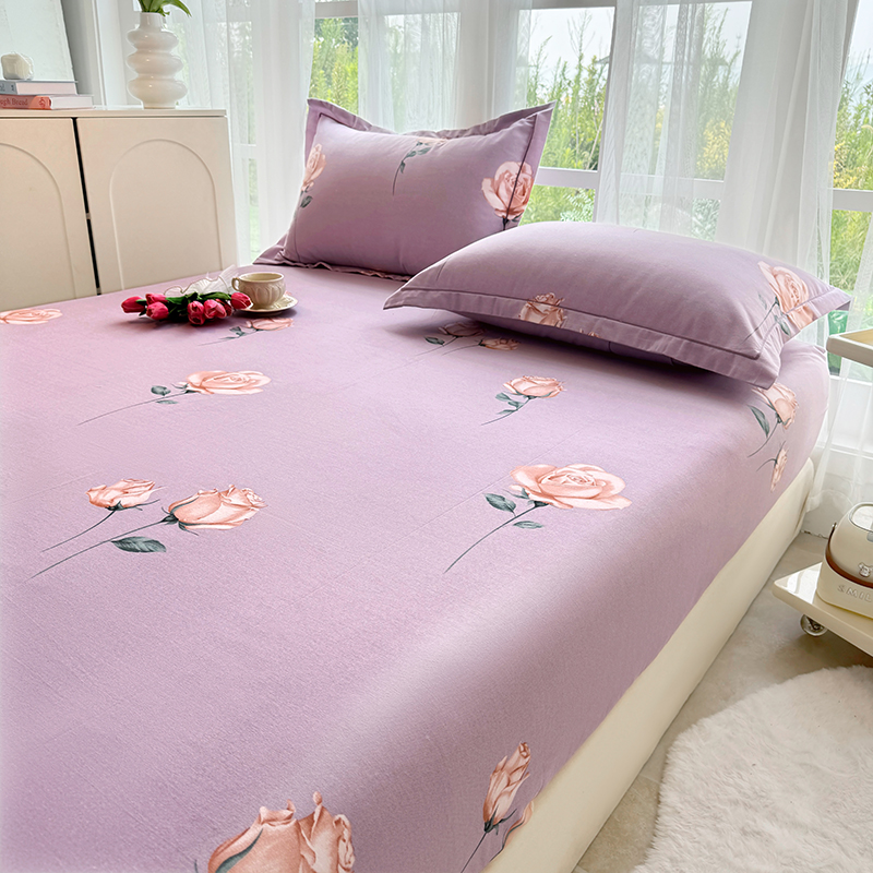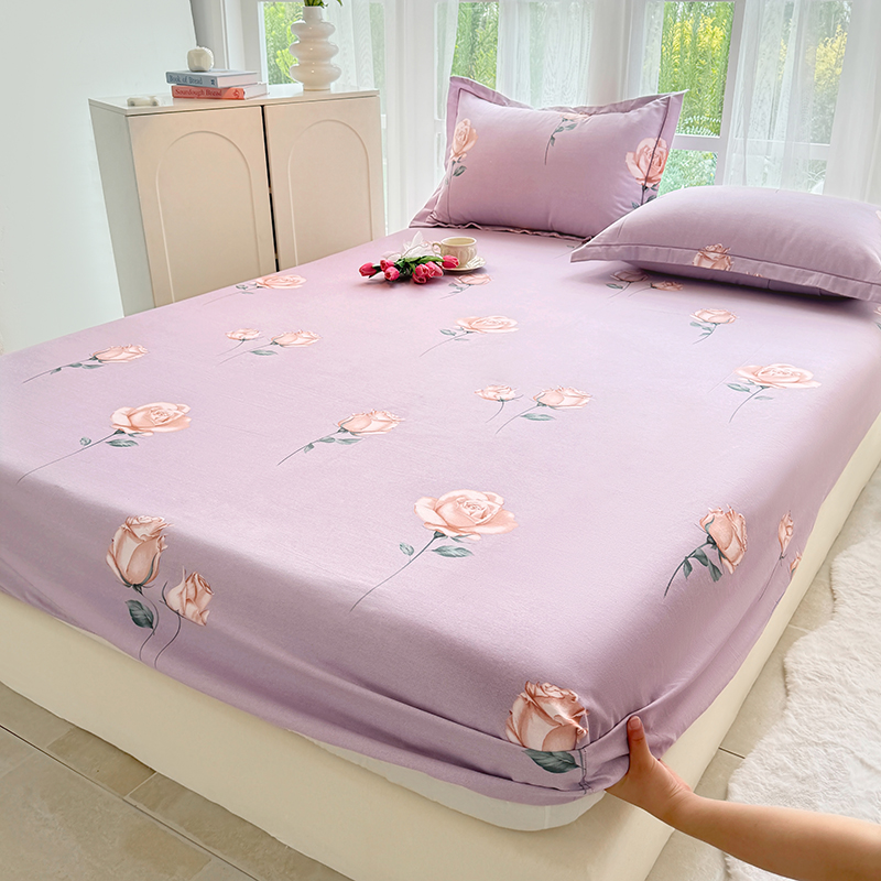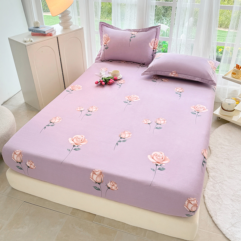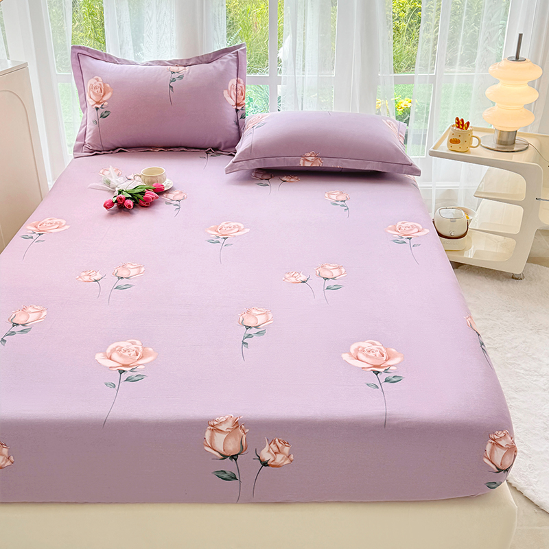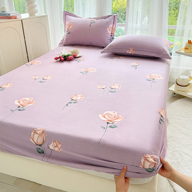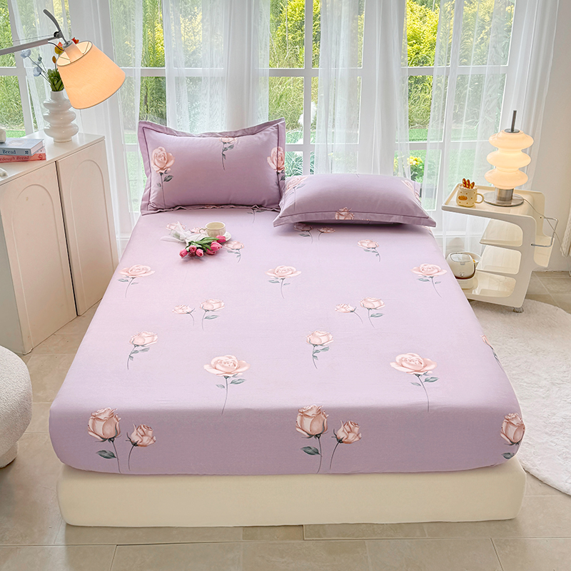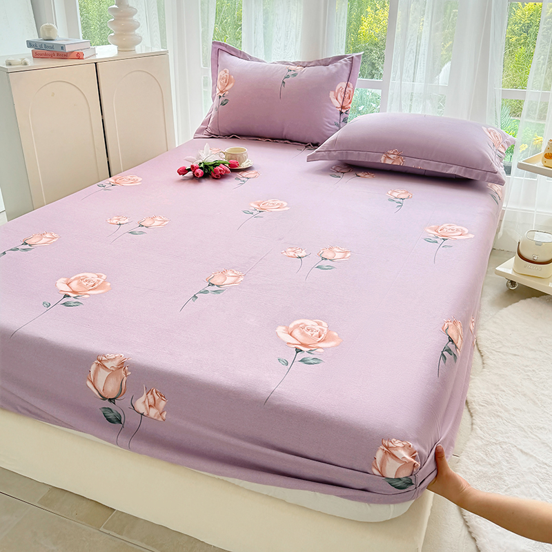 家贝爱 2024新款加厚生态全棉磨毛床笠 花城紫