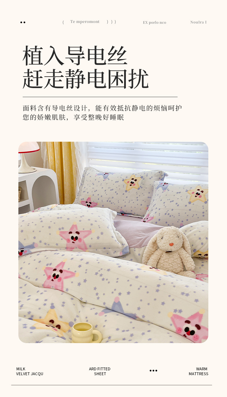 商品名称:简如 2025新款加厚220克牛奶绒印花四件套 漫游星云