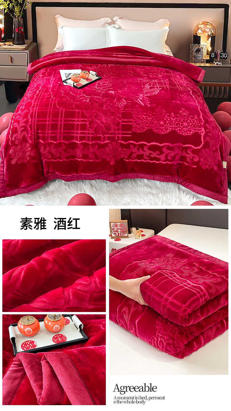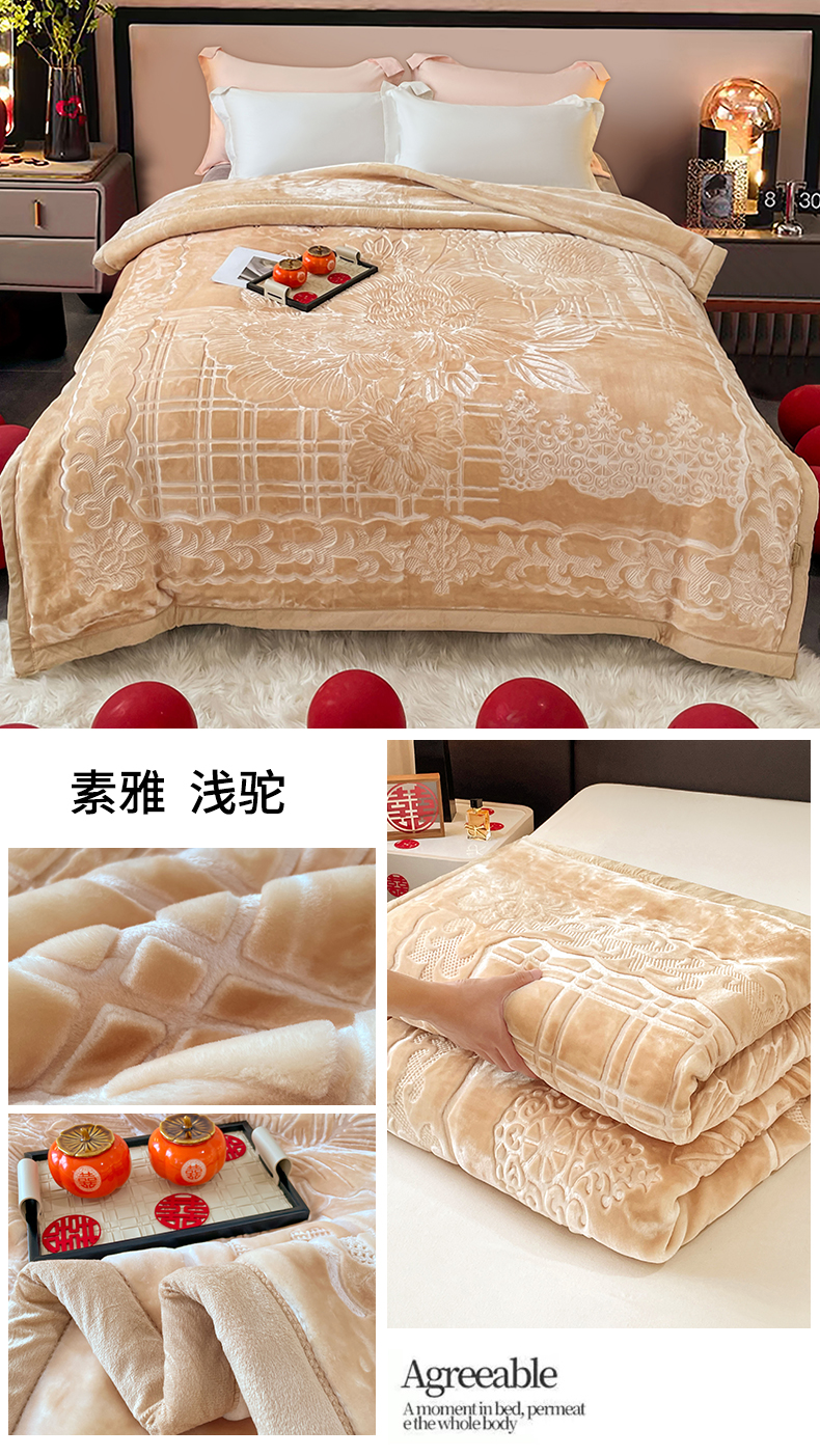 商品名称:(总) 2024新款 毛毛毯毯子 保暖毛毯毯子 婚庆毛毯毯子 5D压花素色云毛毯毯子
