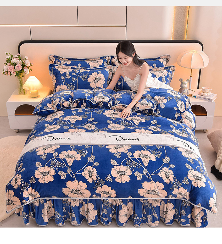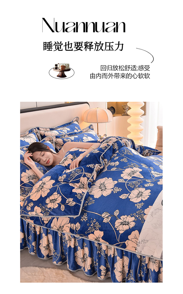 商品名称:富之航 2024新款8-9斤高克重印花牛奶绒四件套保暖绒套件直播爆款陌上花开