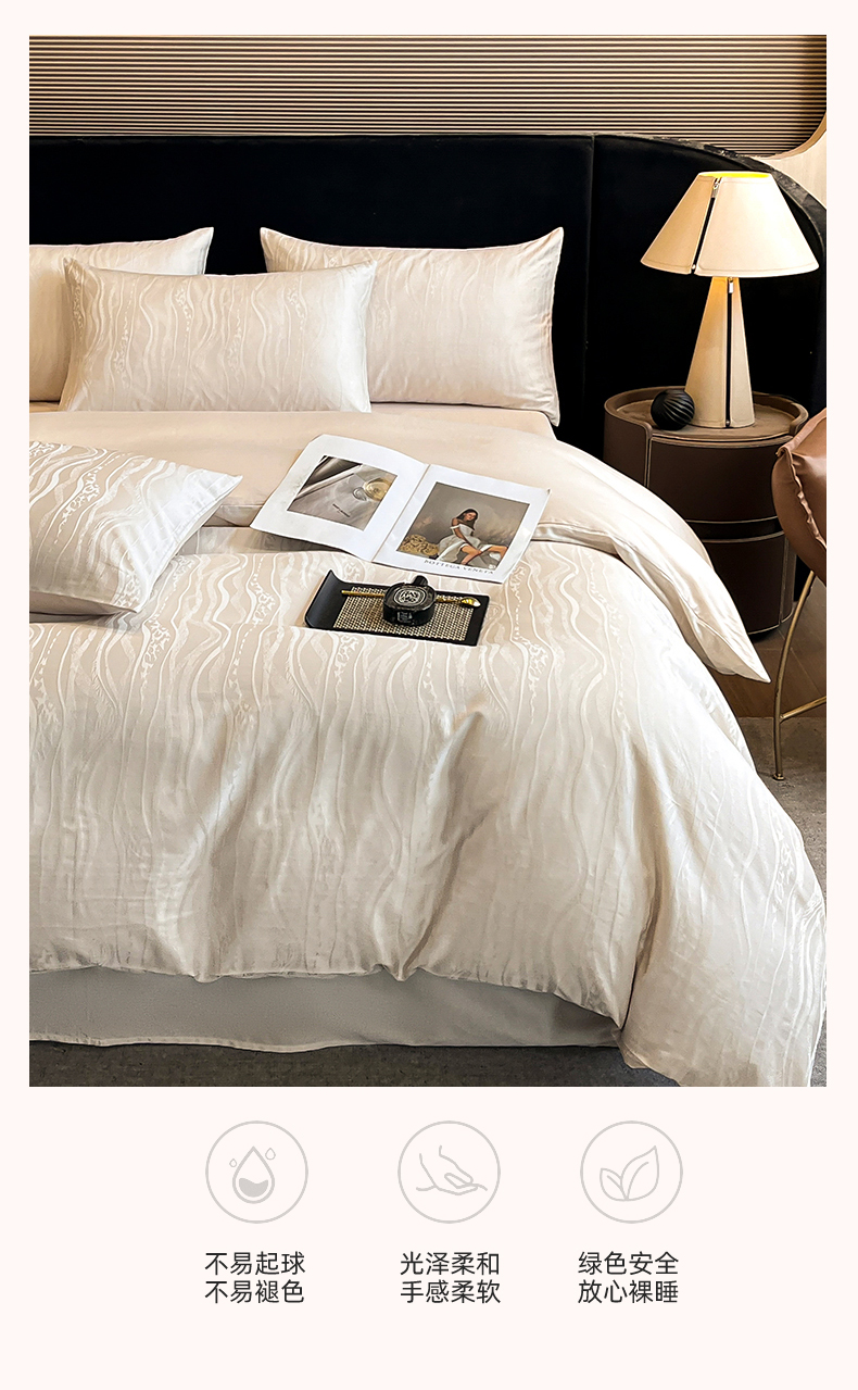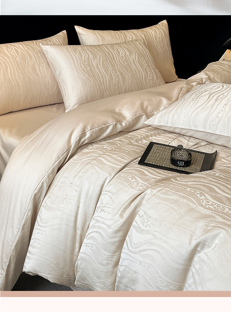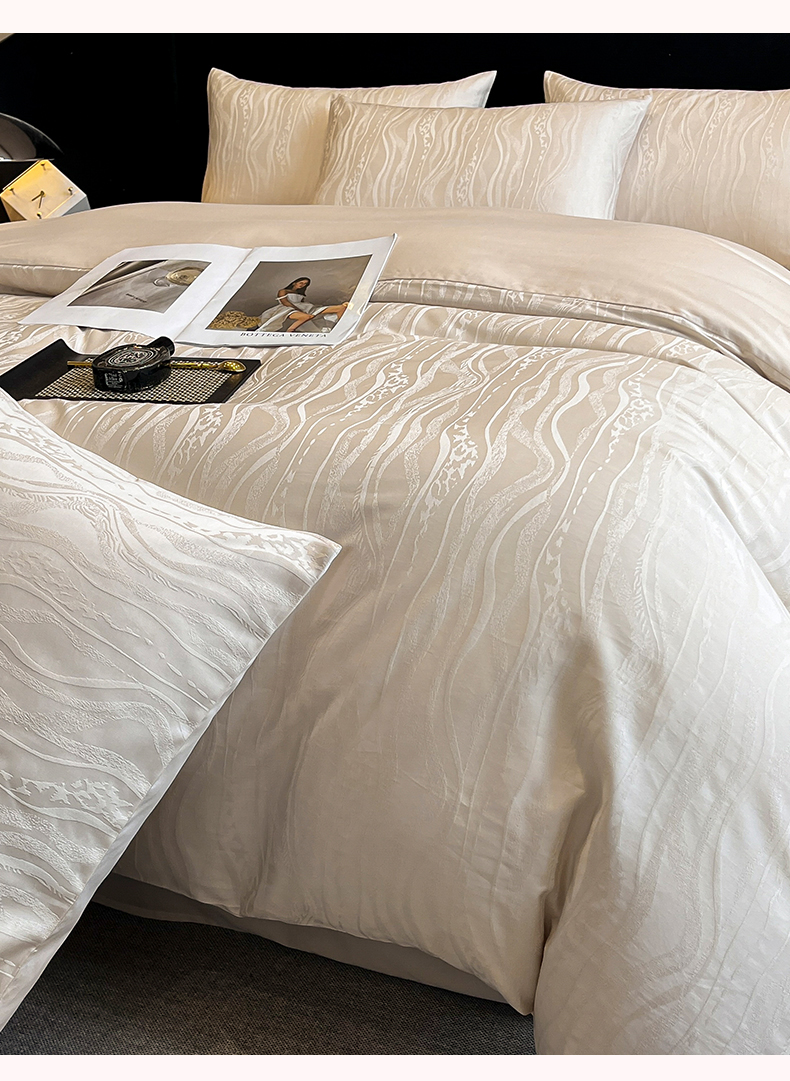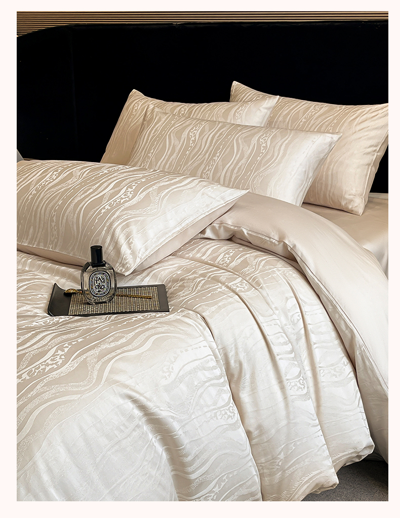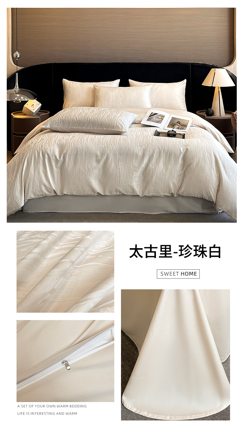蓝米卡夫 2024新保暖-秋冬A类兰精天丝棉磨毛大提花四件套(礼盒包装) 太古里-珍珠白