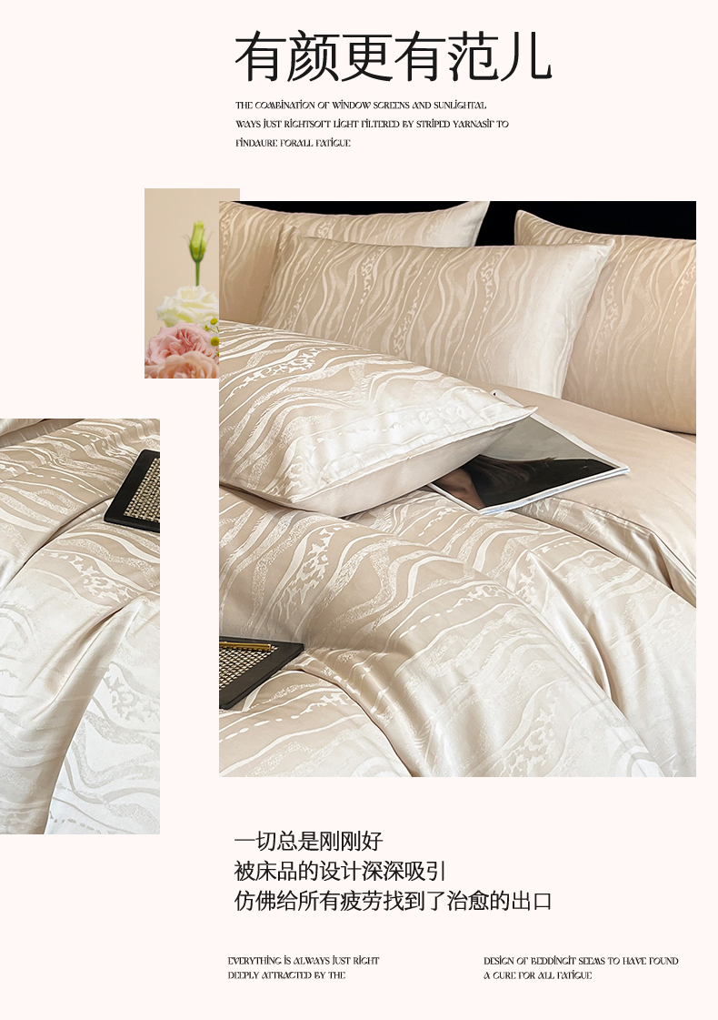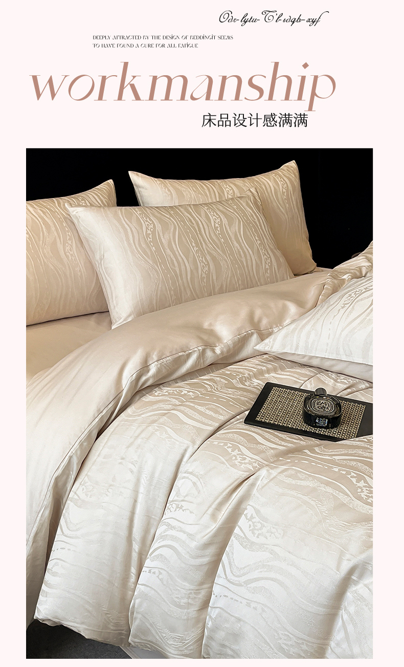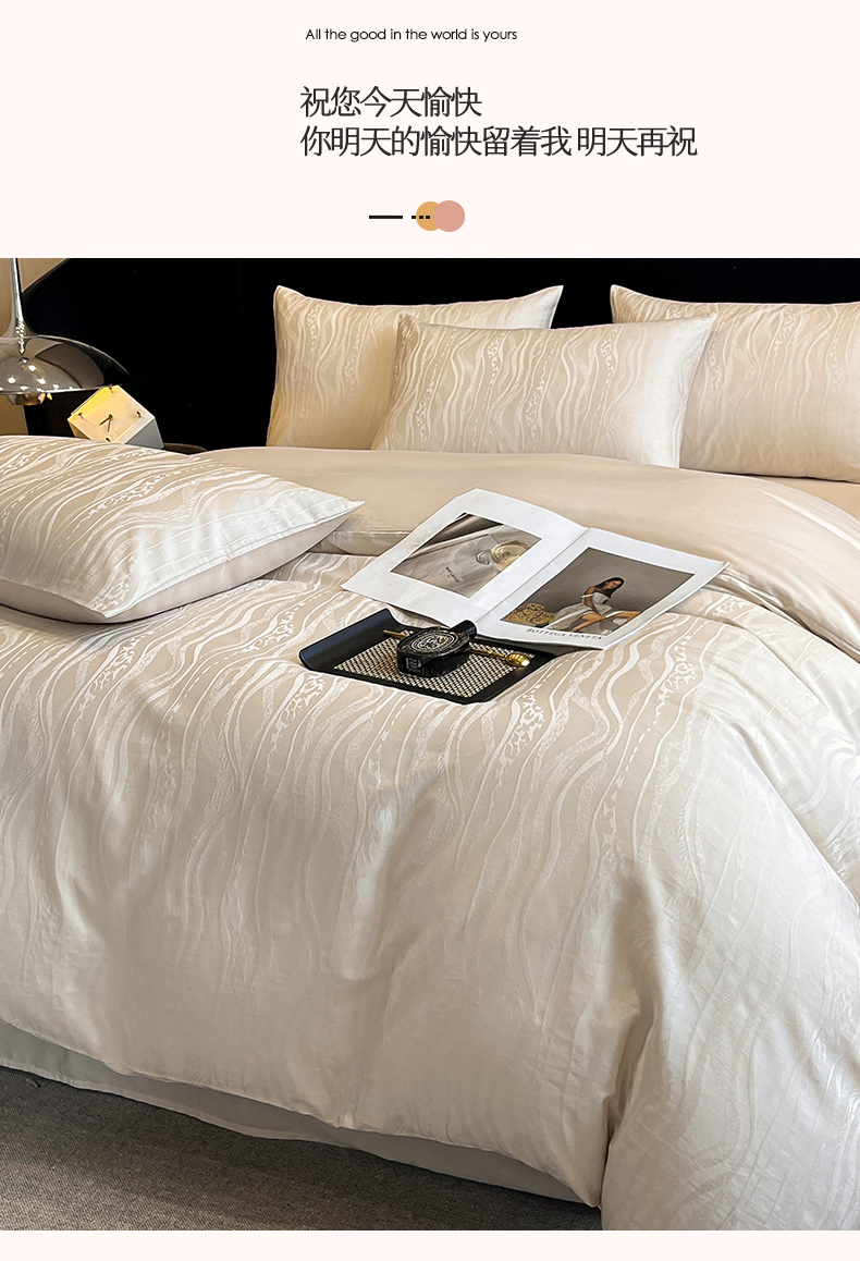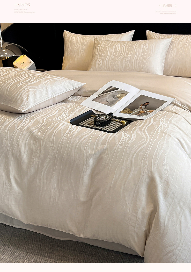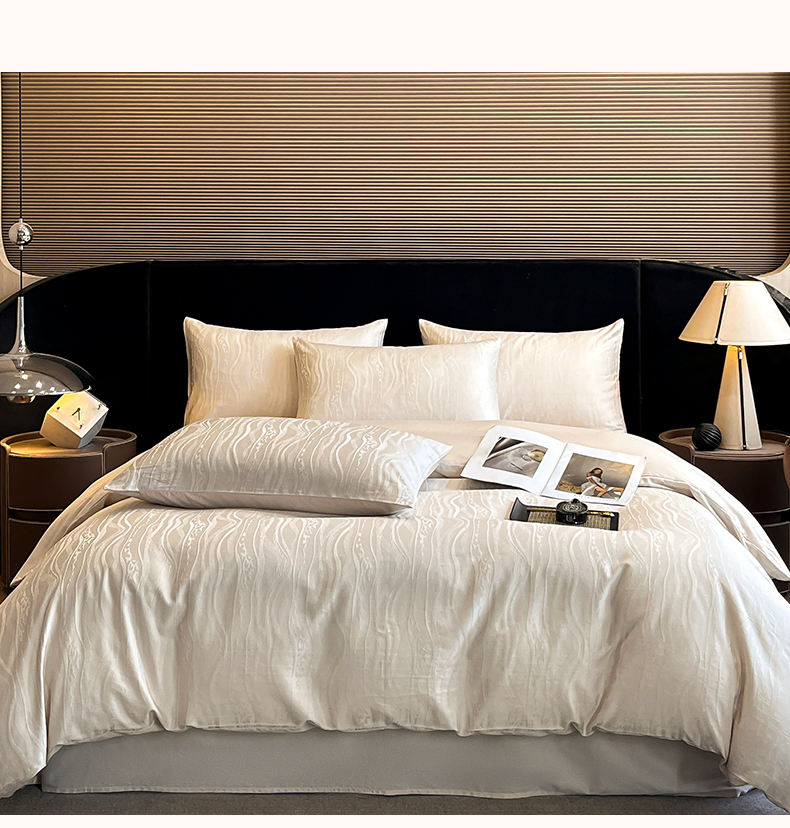 蓝米卡夫 2024新保暖-秋冬A类兰精天丝棉磨毛大提花四件套(礼盒包装) 太古里-珍珠白