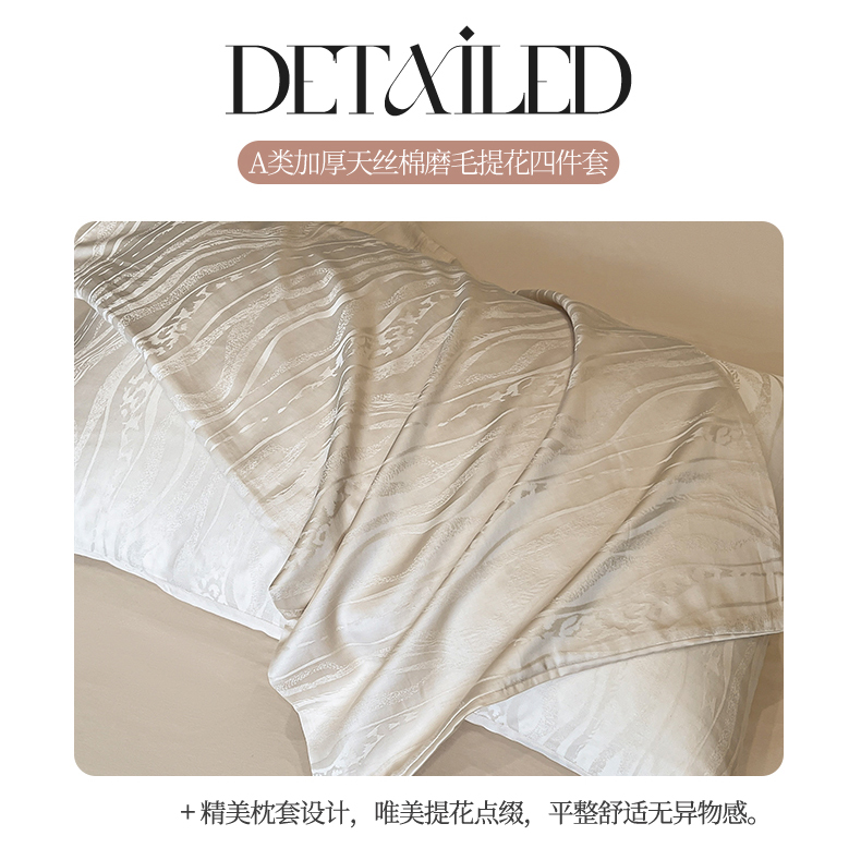 商品名称:蓝米卡夫 2024新保暖-秋冬A类兰精天丝棉磨毛大提花四件套(礼盒包装) 太古里-珍珠白