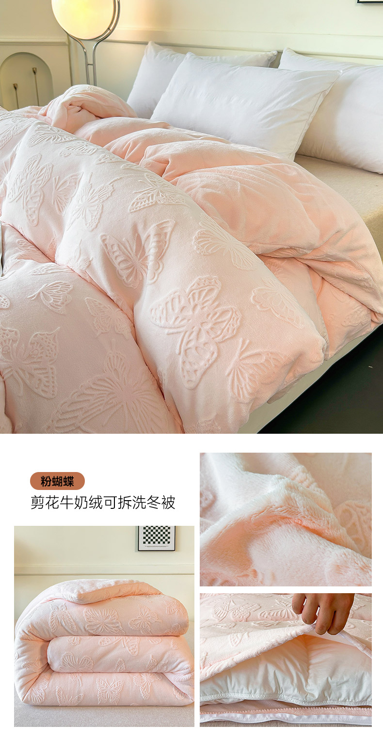 (总)睡棉坊 2024新款高克重剪花牛奶绒可拆洗冬被被子被芯,小翠花,粉蝴蝶,浪漫满屋,玫瑰花,森林迷雾,miumiu