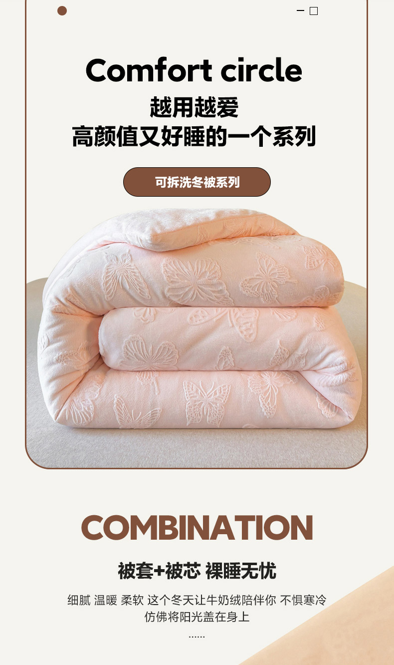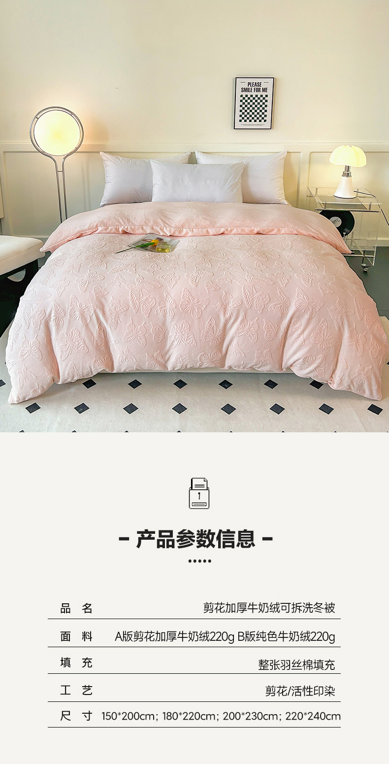 商品名称:(总)睡棉坊 2024新款高克重剪花牛奶绒可拆洗冬被被子被芯