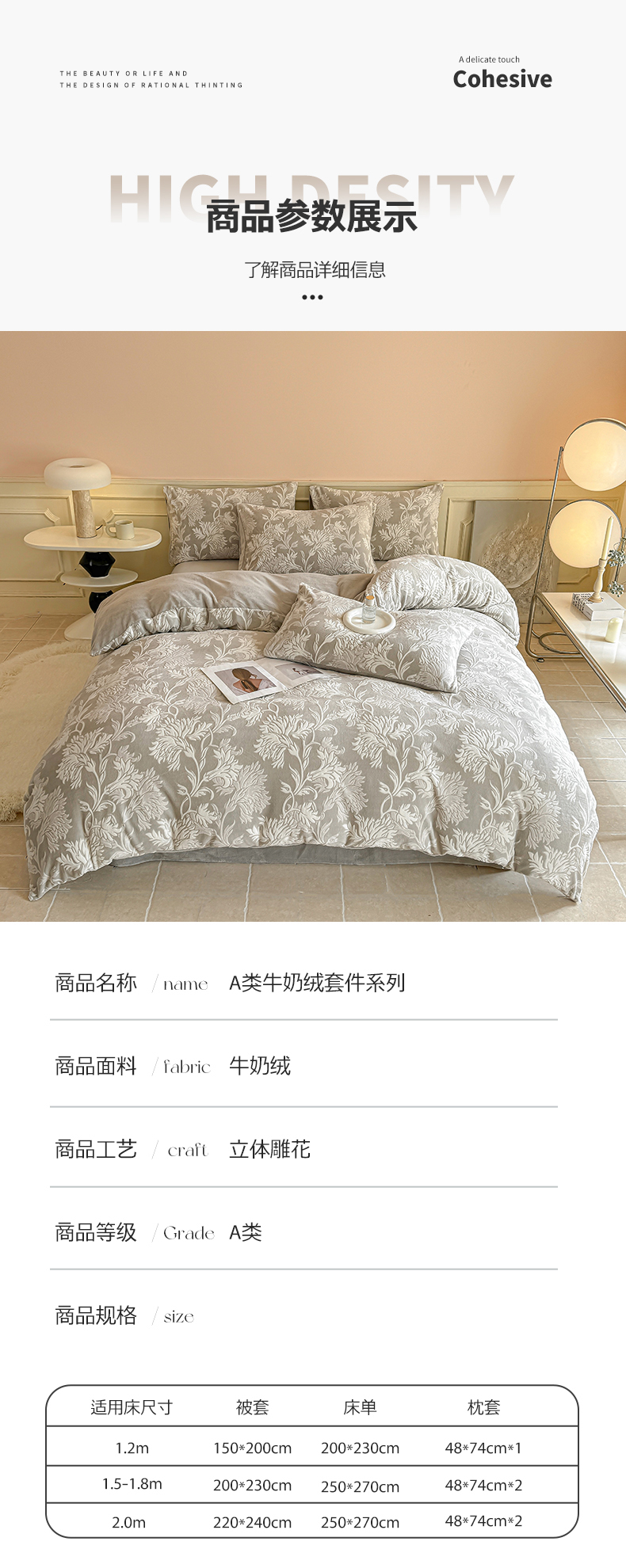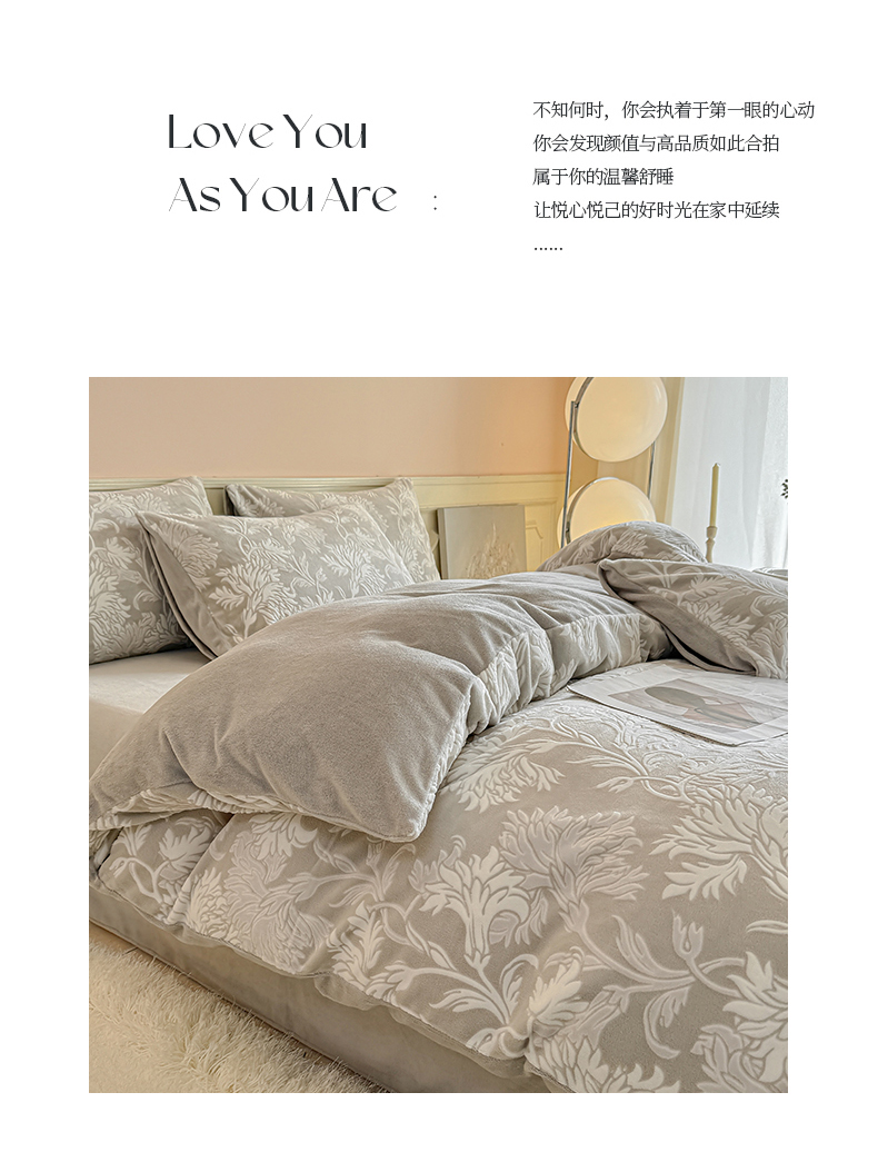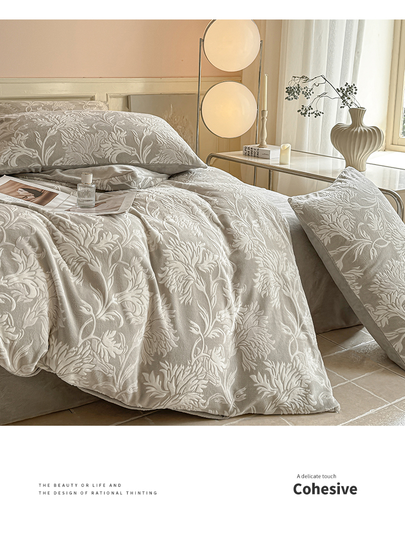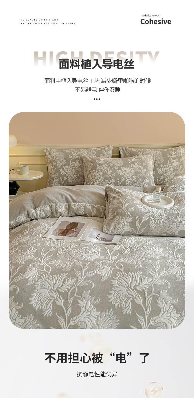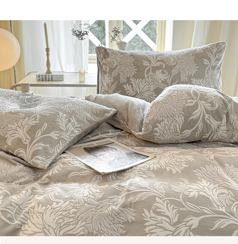 (总)其奥家纺 2025新款8斤A类230克牛奶绒雕花绒宝宝绒四件套床笠款床单款,曼朵-暖灰,曼朵-蔷薇粉,曼朵-云水蓝