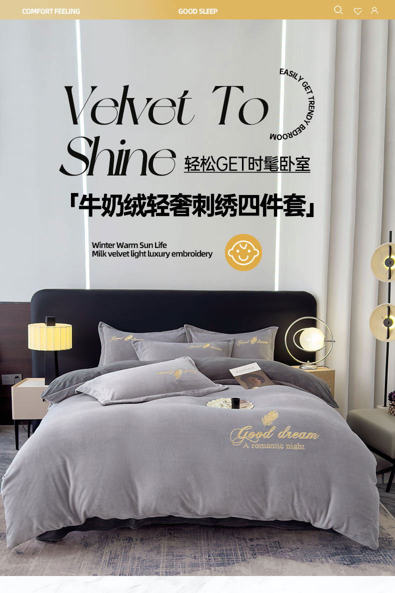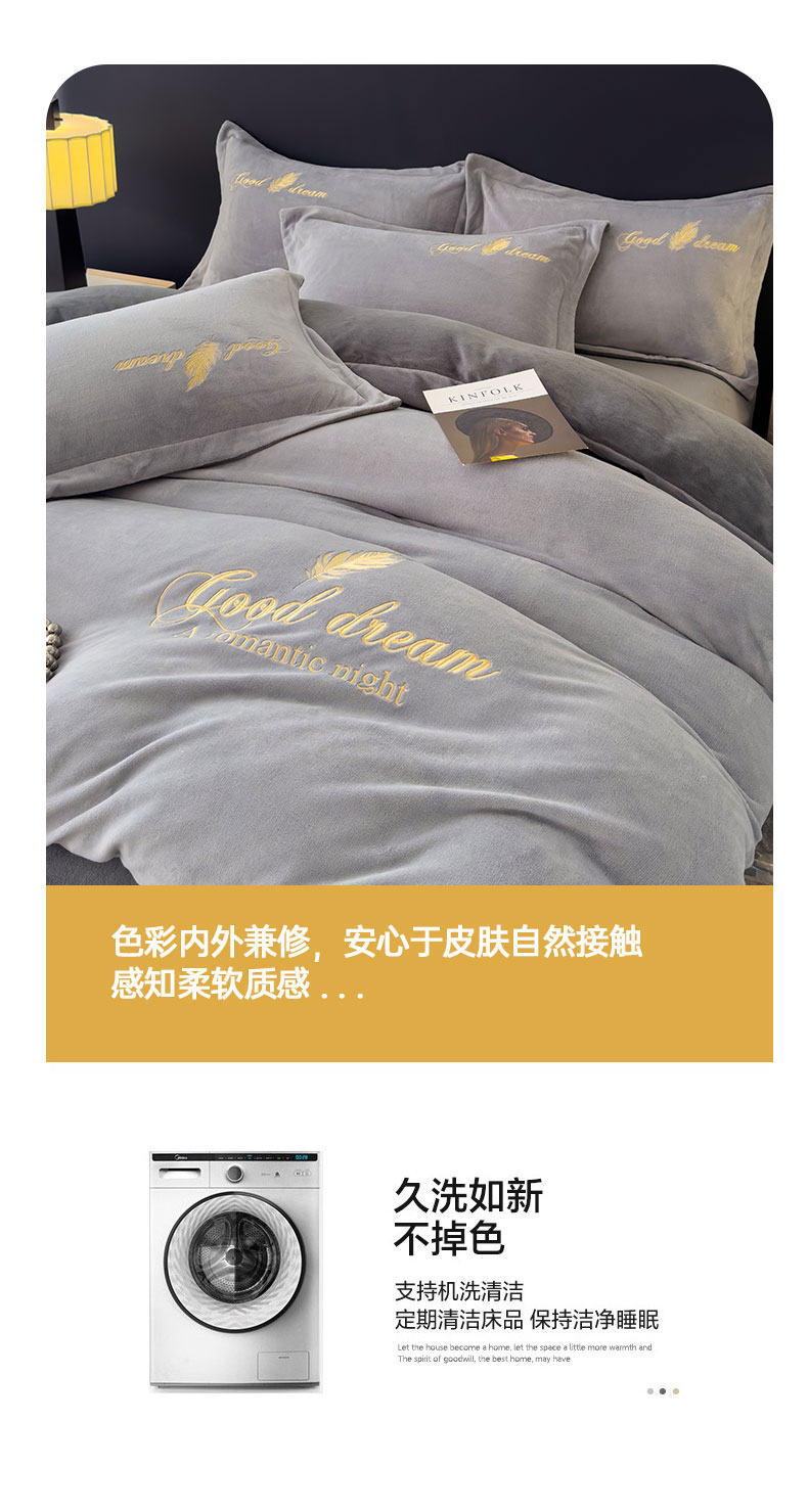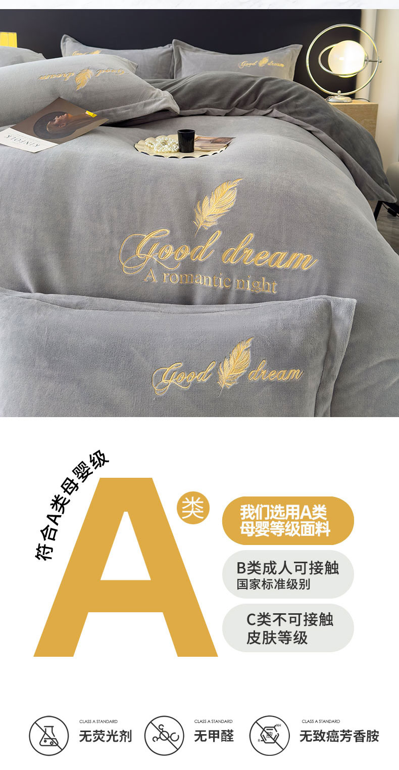 当前位置: 91家纺网 > 商品网购 > 床品套件 > 四件套 > 牛奶绒四件套 > 灰鲸 2025新款A类牛奶绒轻奢刺绣四件套 轻羽-纳多灰+山灰
