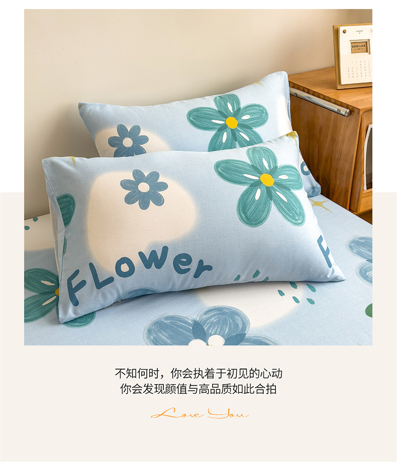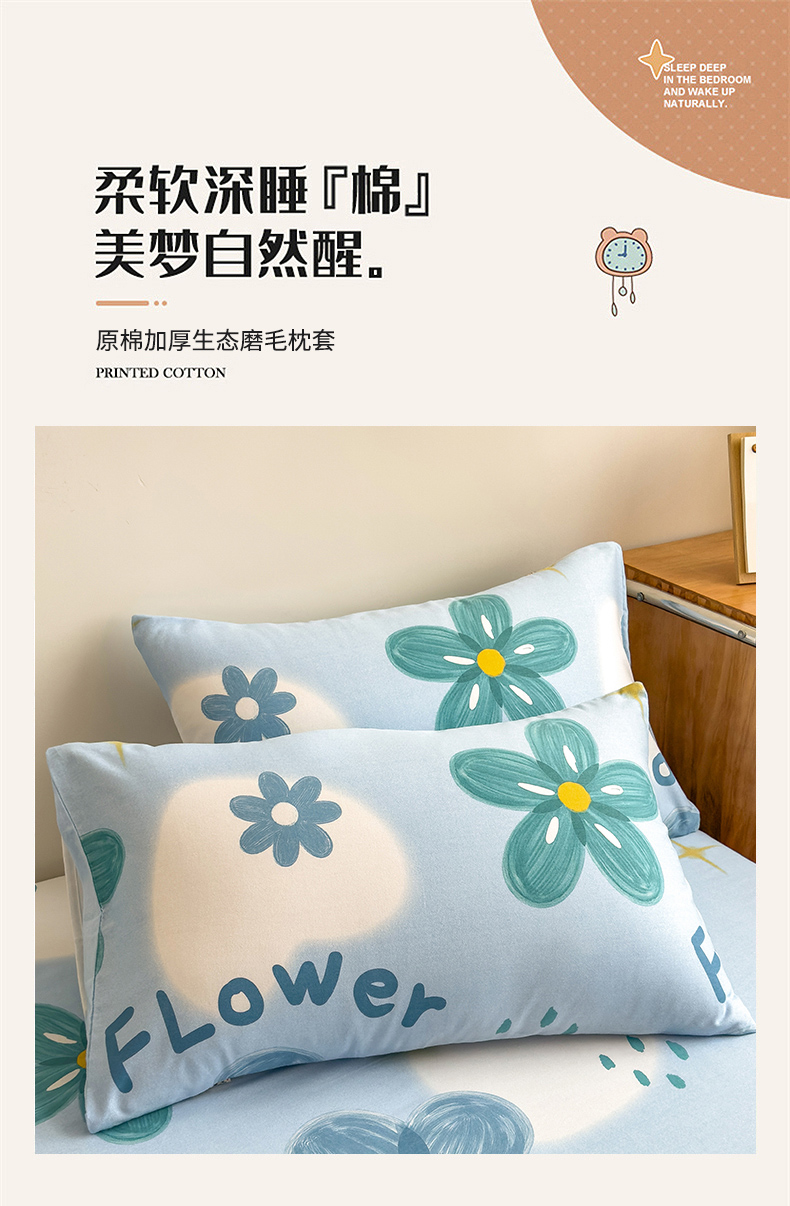 芃成家纺 2024新款原棉加厚生态磨毛单枕套 秘密花园-蓝