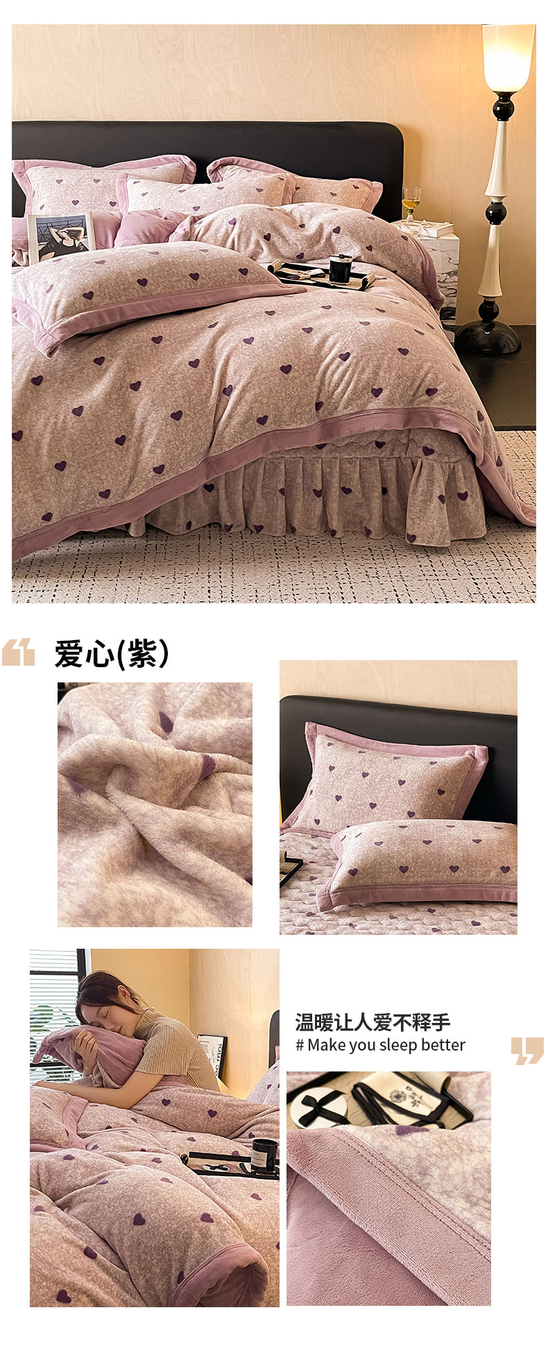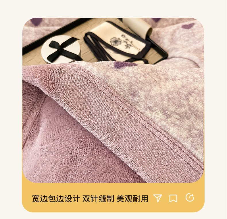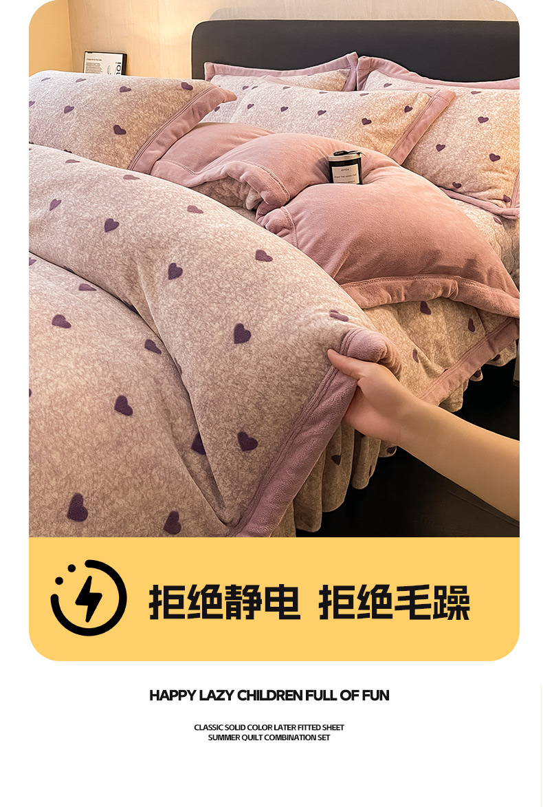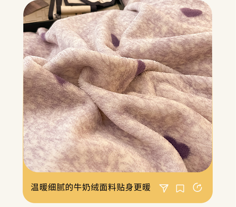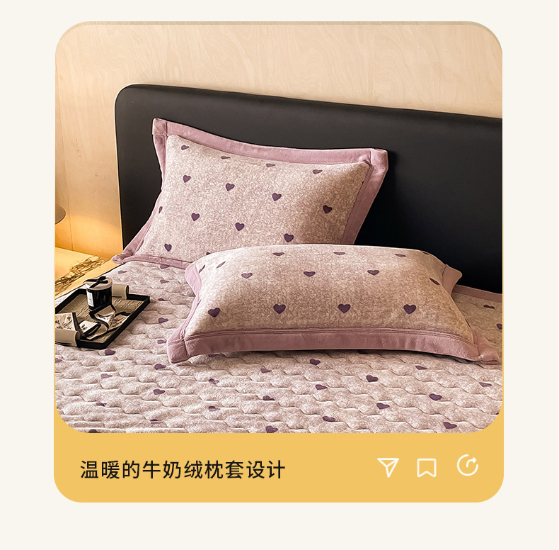 商品名称:茉保家纺 2024新款包边款印花牛奶绒床盖四件套 爱心(紫)