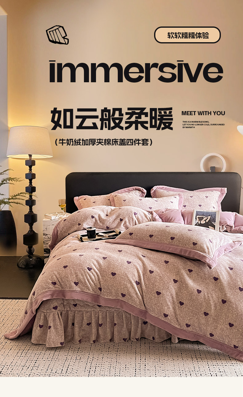 (总)茉保家纺 2025新款包边款印花牛奶绒床盖四件套,爱心(紫),爱心满满,含苞待放,花恋 粉,花恋 绿,米兰-橘,时尚波点(黑),时尚波点(红),时尚波点(咖),香氛玫瑰,写意芬芳,郁金香-粉,郁金香-浅紫,爱心(咖),米兰 -灰白,北欧花季-灰,北欧花季-绿,北欧花季 -红