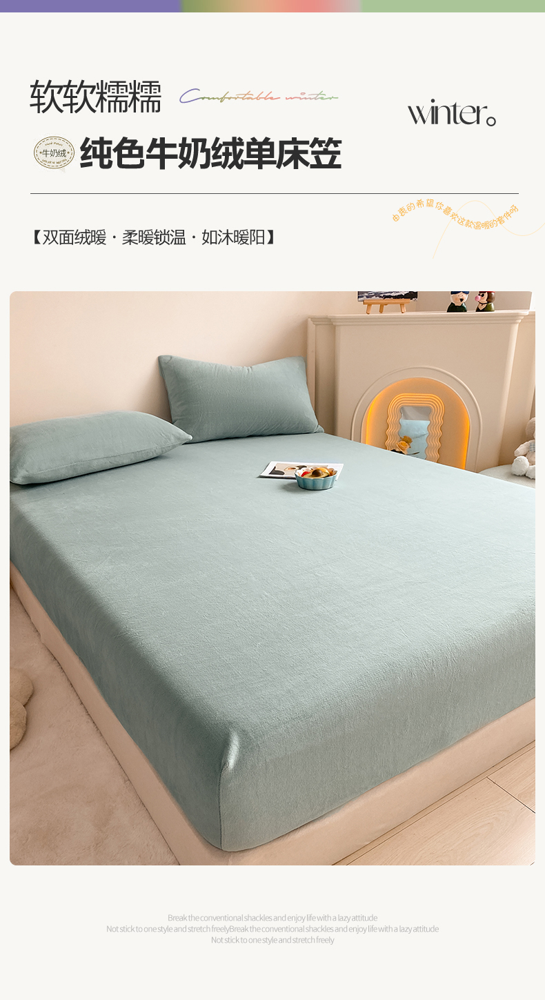 商品名称:眠帛家居 2024新款纯色高克重牛奶绒单床笠 繁星蓝