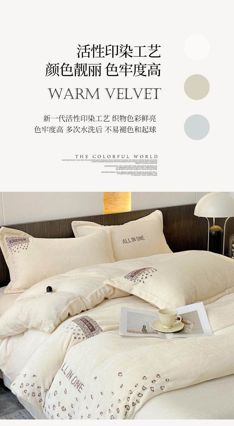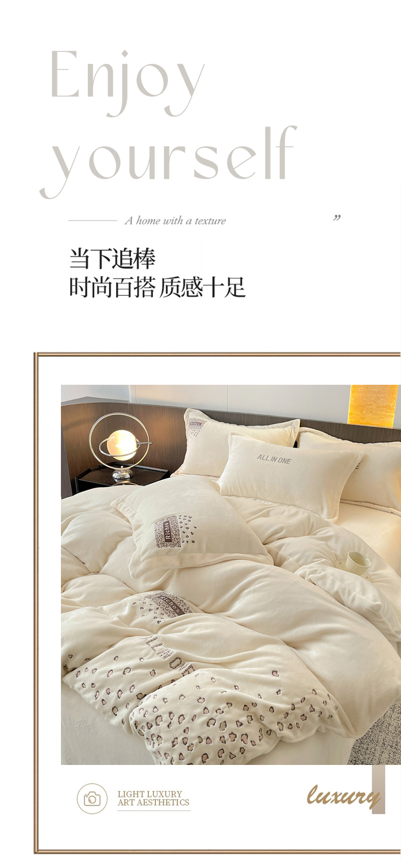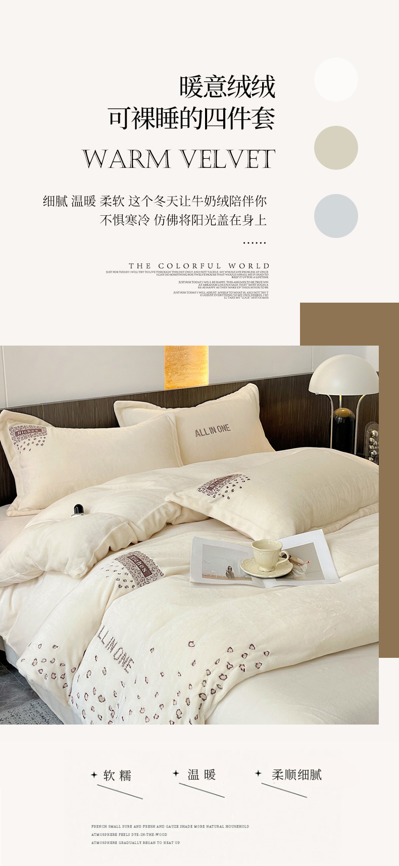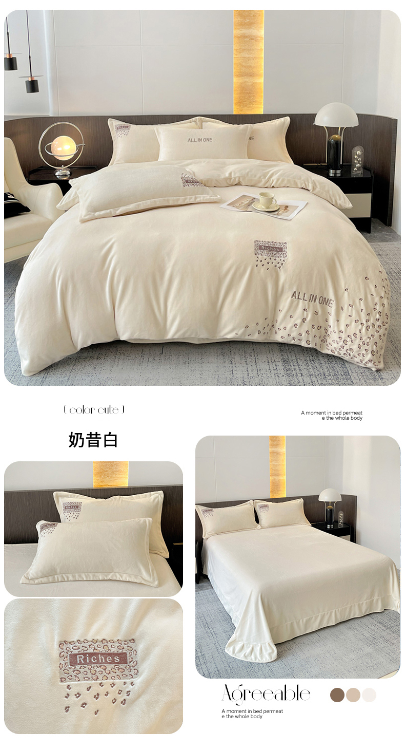 (总)星尚家纺 2024全消光A类230g牛奶绒绣花保暖绒四件套-豹纹,卡其色,奶昔白,时尚灰,芝芝粉